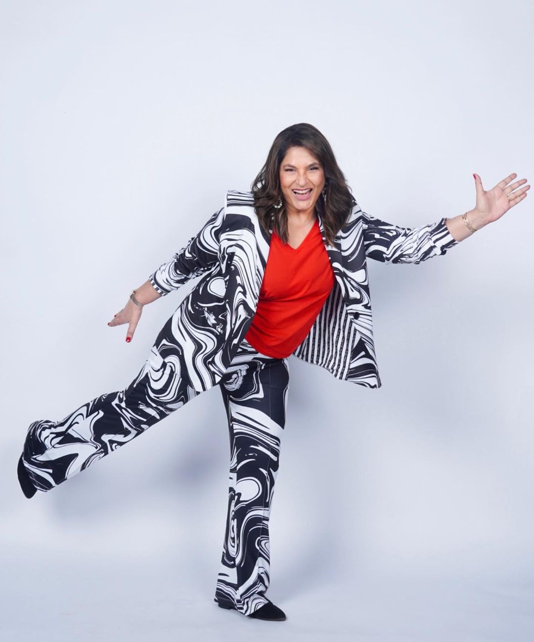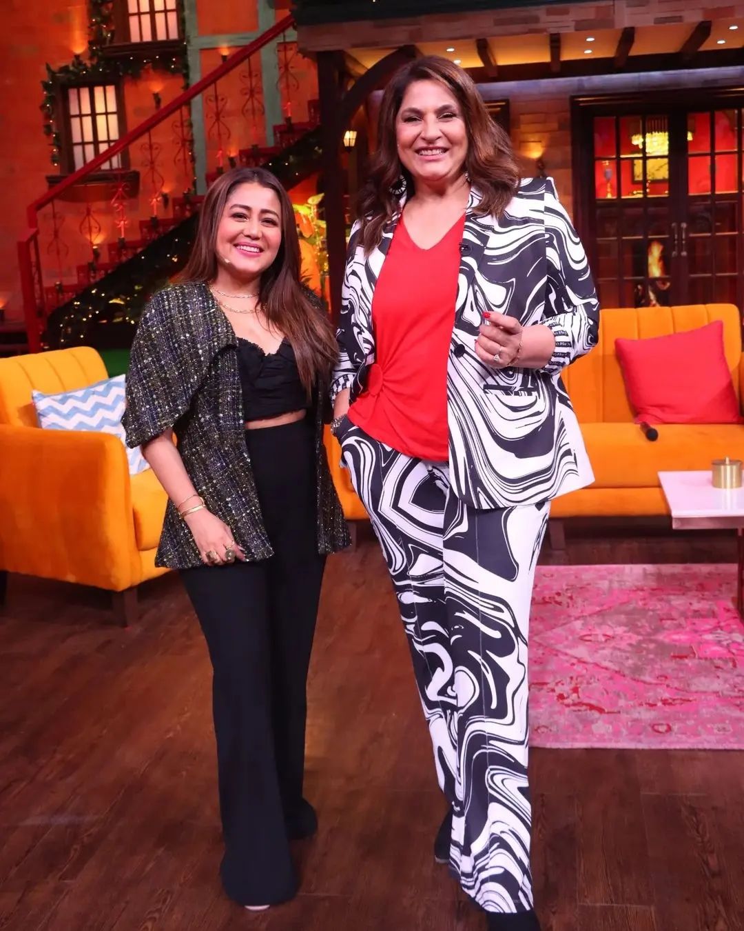 Archana Puran Singh & Anam Darbar wearing our black & white printed pant suit