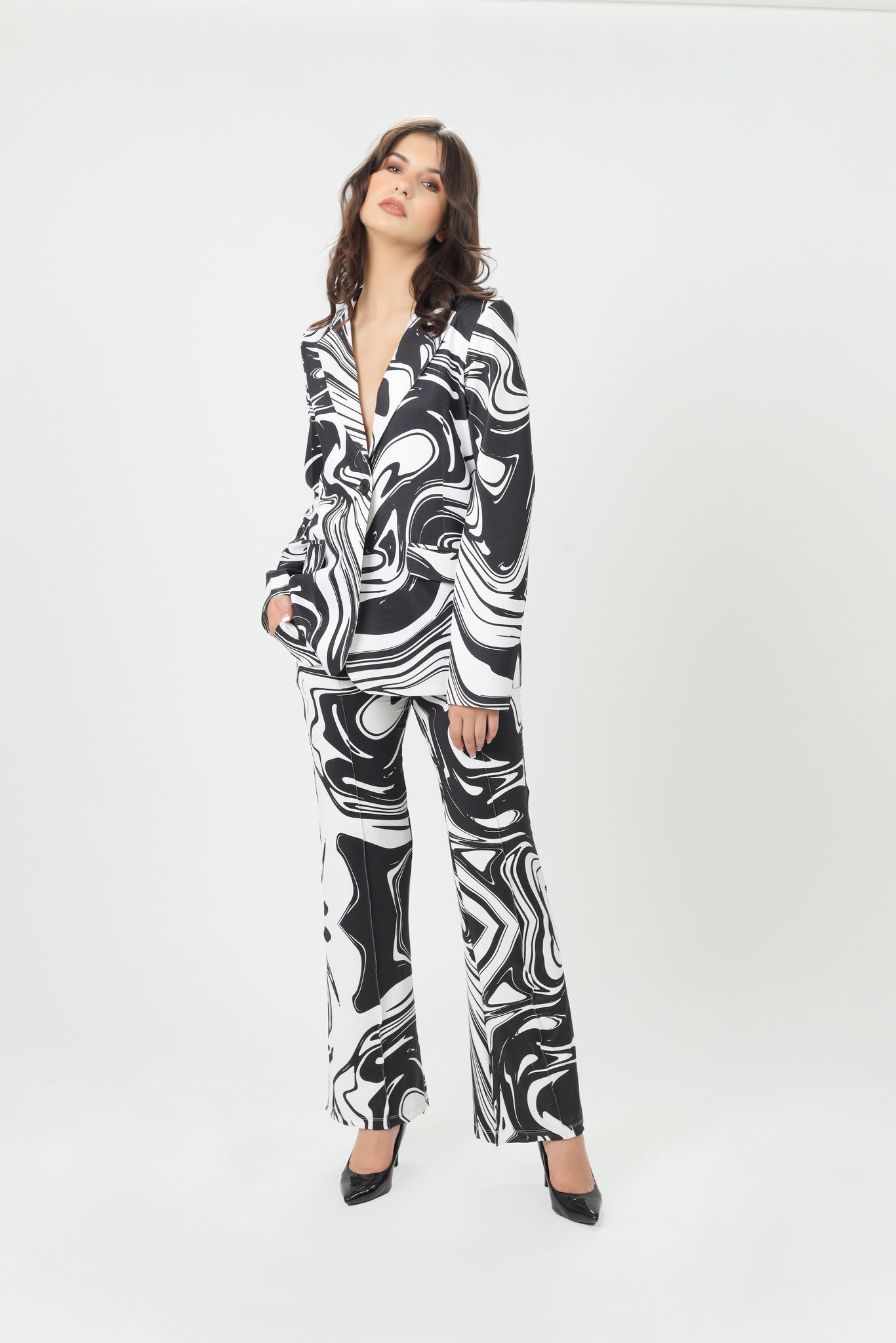 Create an absolute style with this Black and White printed PANT SUIT for a perfect quirky look. Can't take your eyes off? I KNOW RIGHT!