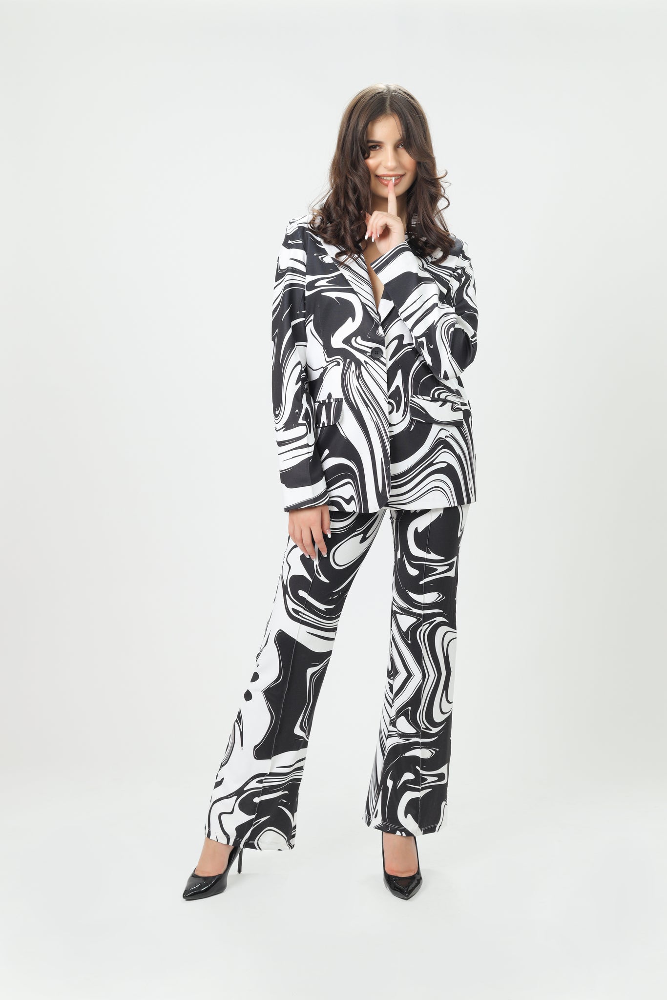 Create an absolute style with this Black and White printed PANT SUIT for a perfect quirky look. Can't take your eyes off? I KNOW RIGHT!