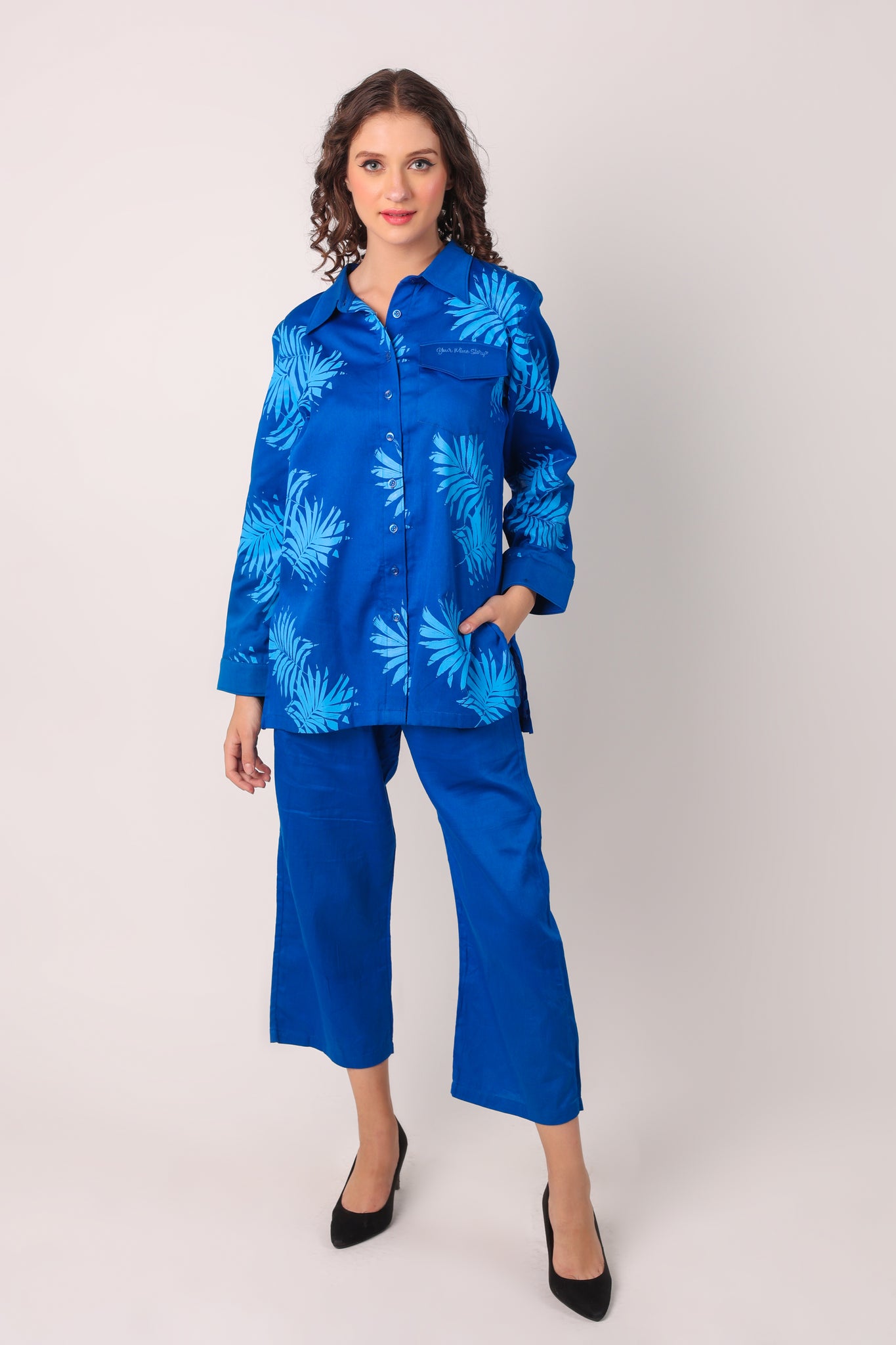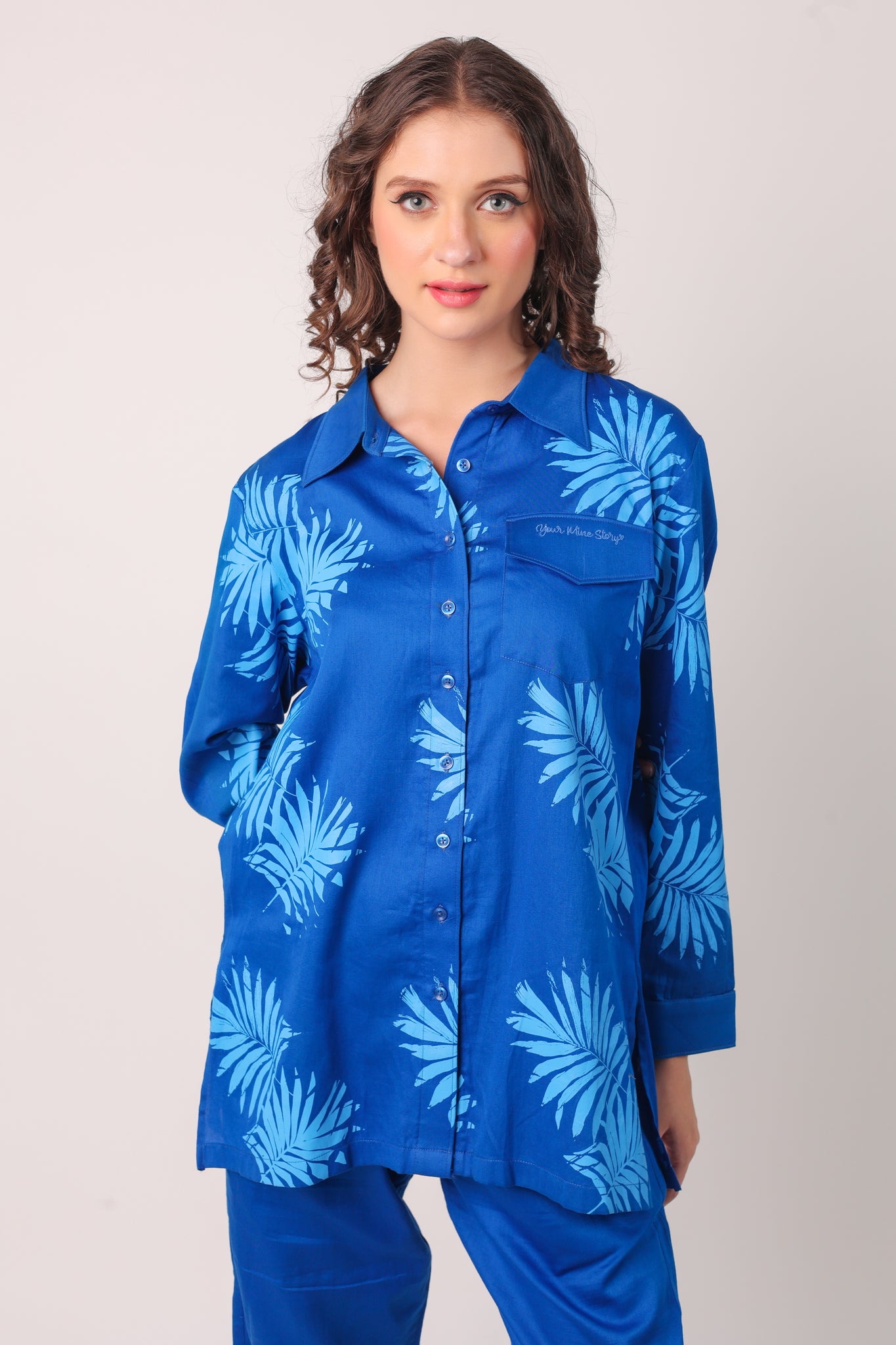 CALLING OUT FOR A RELAXED SUMMER IN BREATHY FABRICS, THIS PURE COTTON SHIRT OFFERS A QUICK FIX FOR THE NEED FOR A BREATHABLE, ALL-DAY COMFORT-DRIVEN OUTFIT FEATURING SUPER SOFT FABRIC WITH LEAF PRINT DETAILING. THIS BREEZY SHIRT IS A MUST HAVE IN YOUR SUMMER WARDROBE.