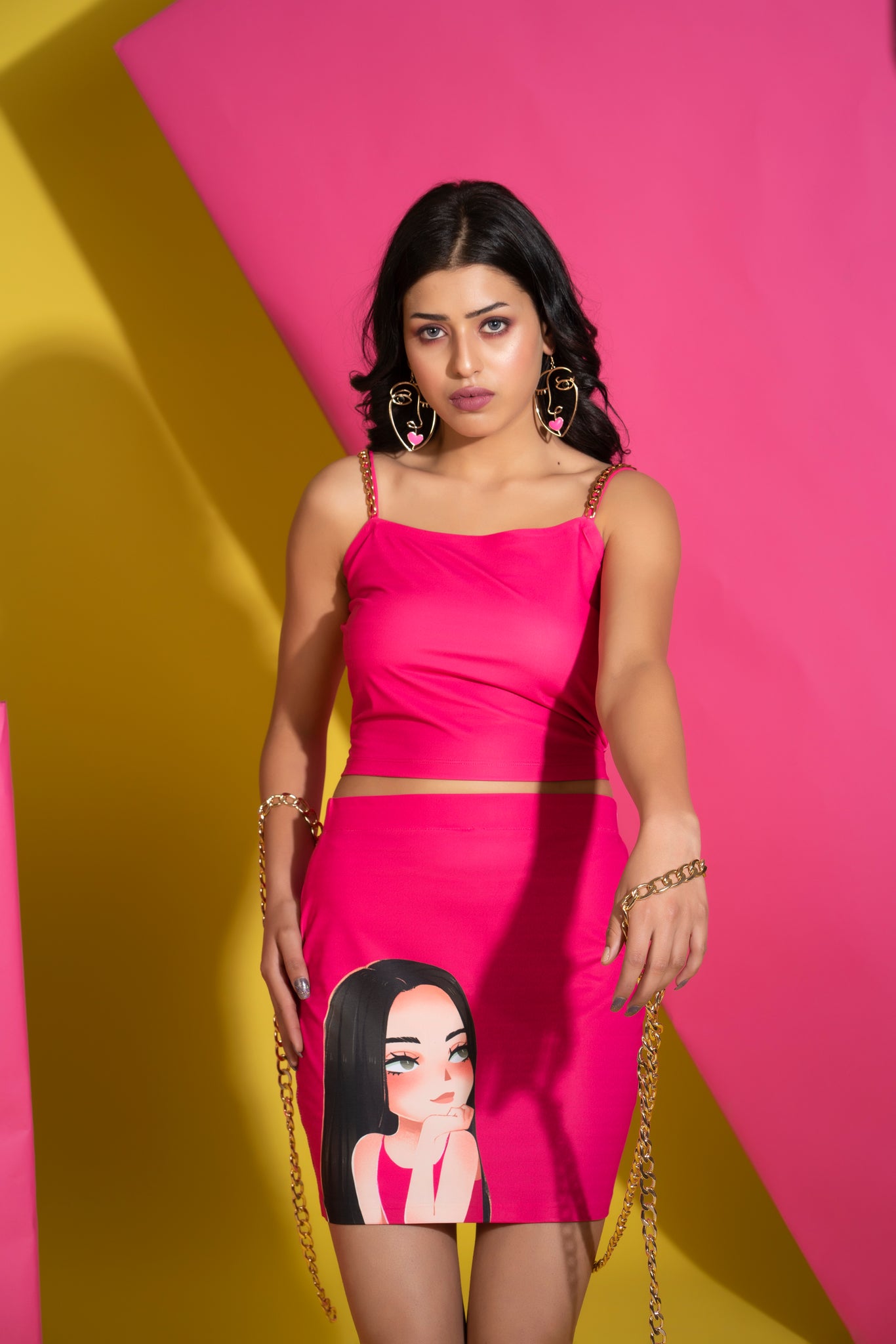 Life is too short to wear boring clothes , Bring some spark with this magenta girl print skirt featuring elastic band on waist.