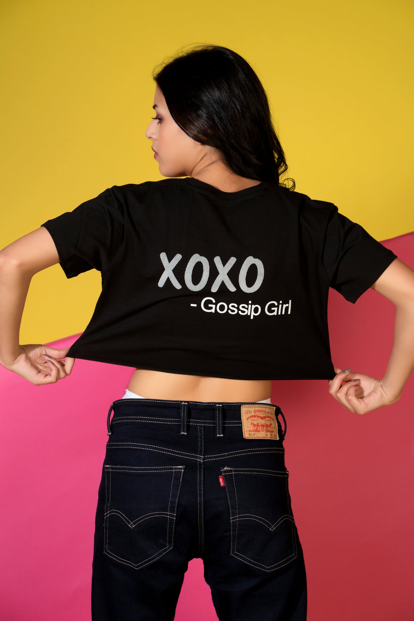 Make head turns with this super comfortable XOXO black coloured crop tee. Crafted with front zip, its just perfect for a casual outing.