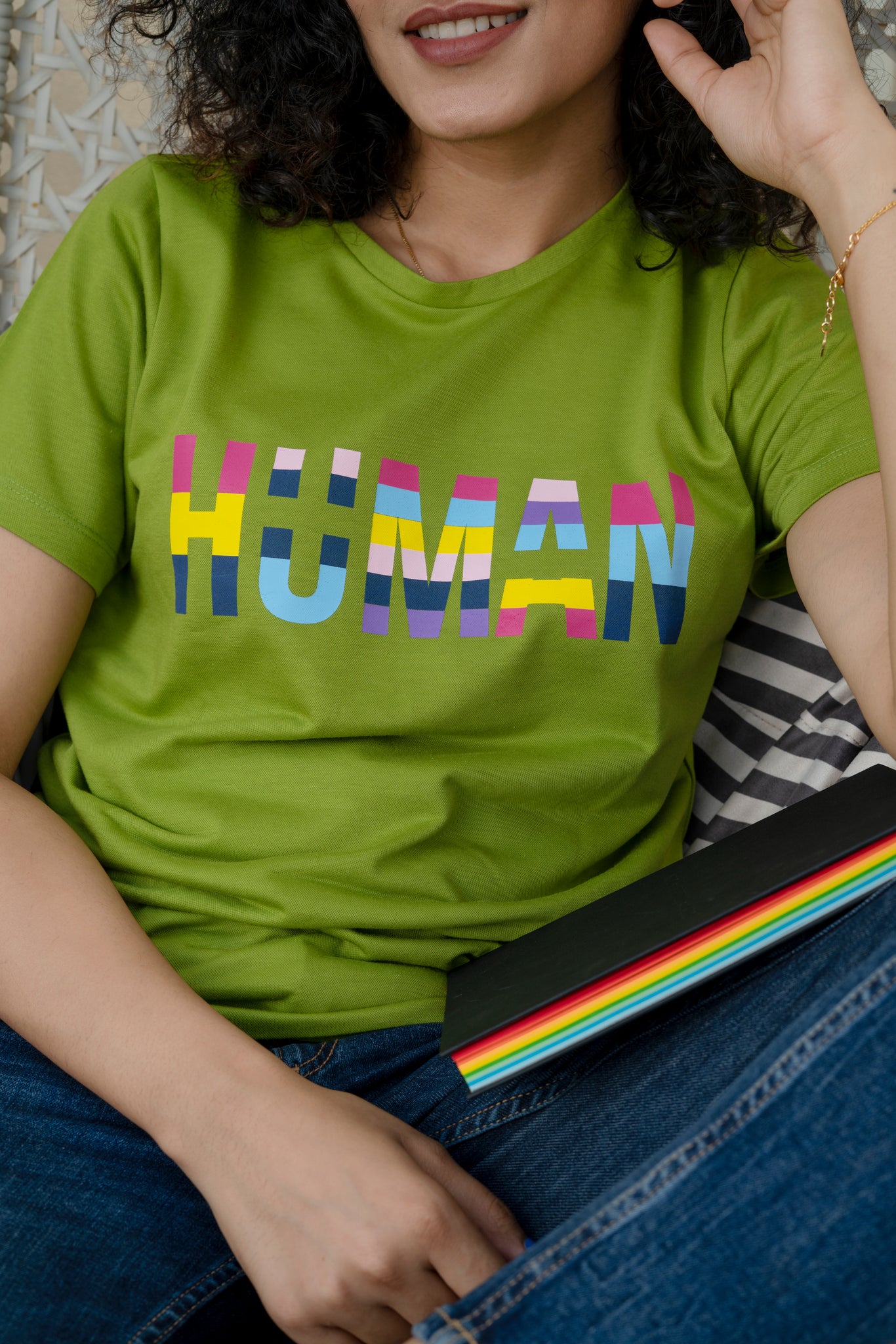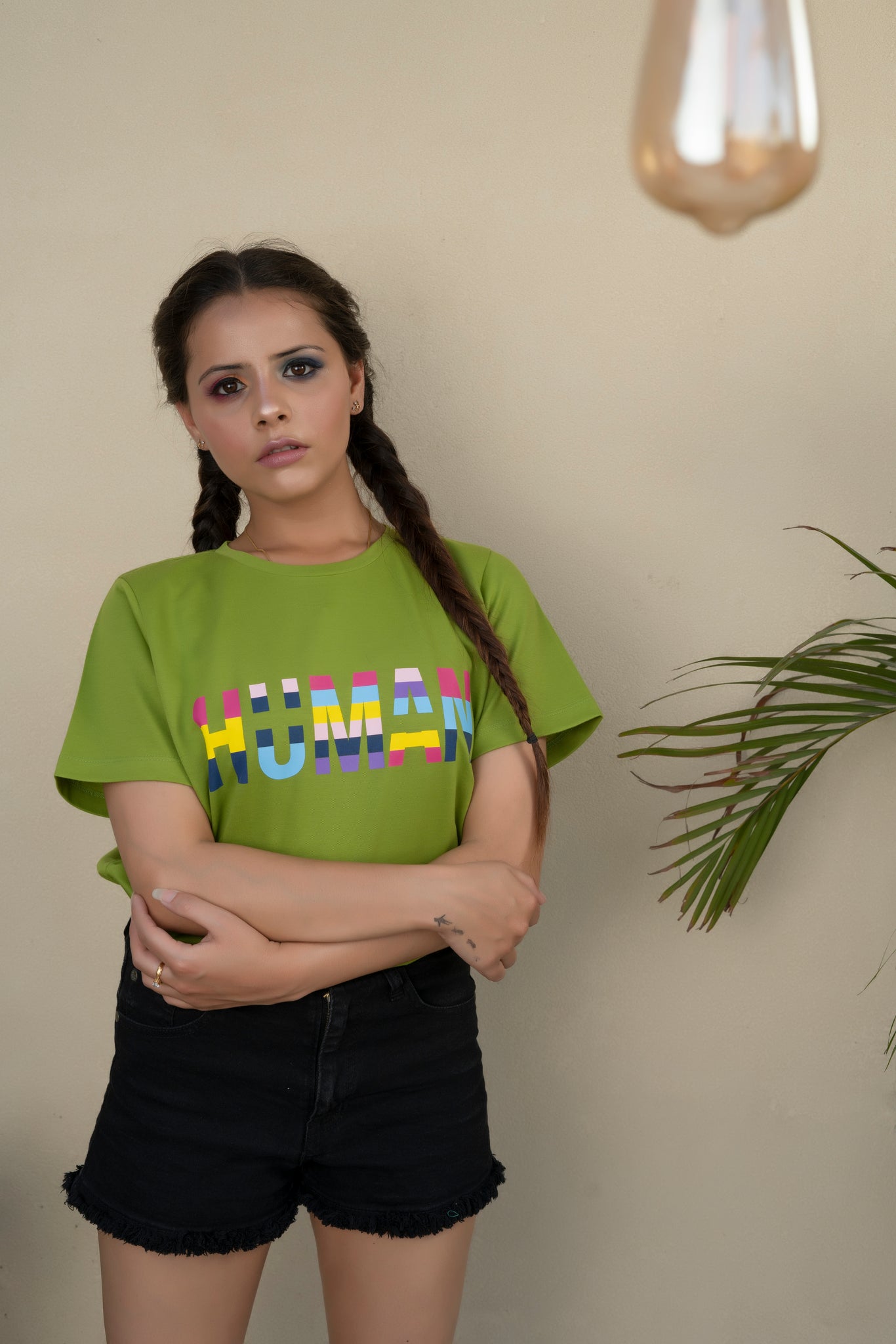 Show off your Quirky self with this HUMAN printed Green Tshirt featuring a round neck and comfortable fit.
