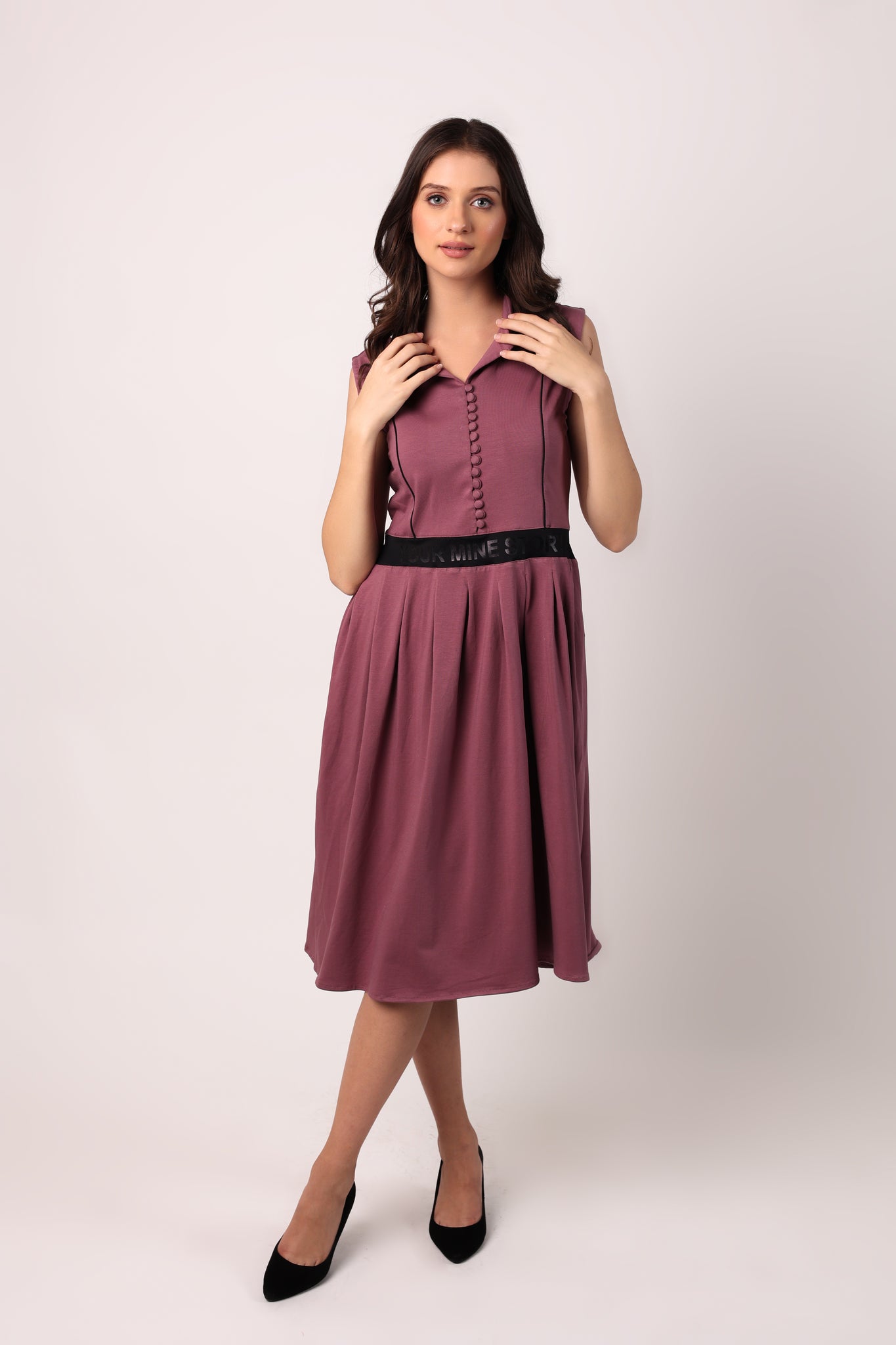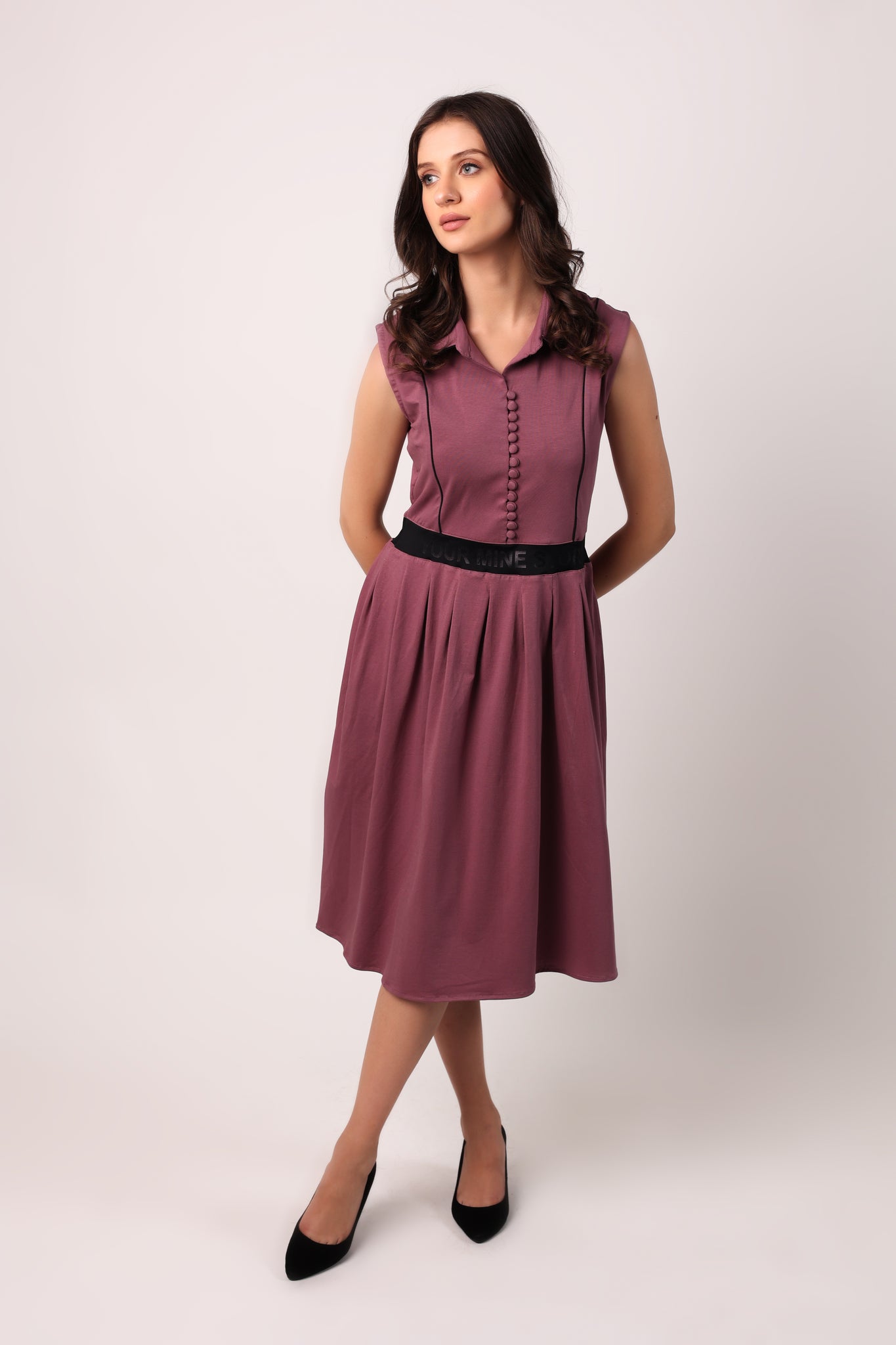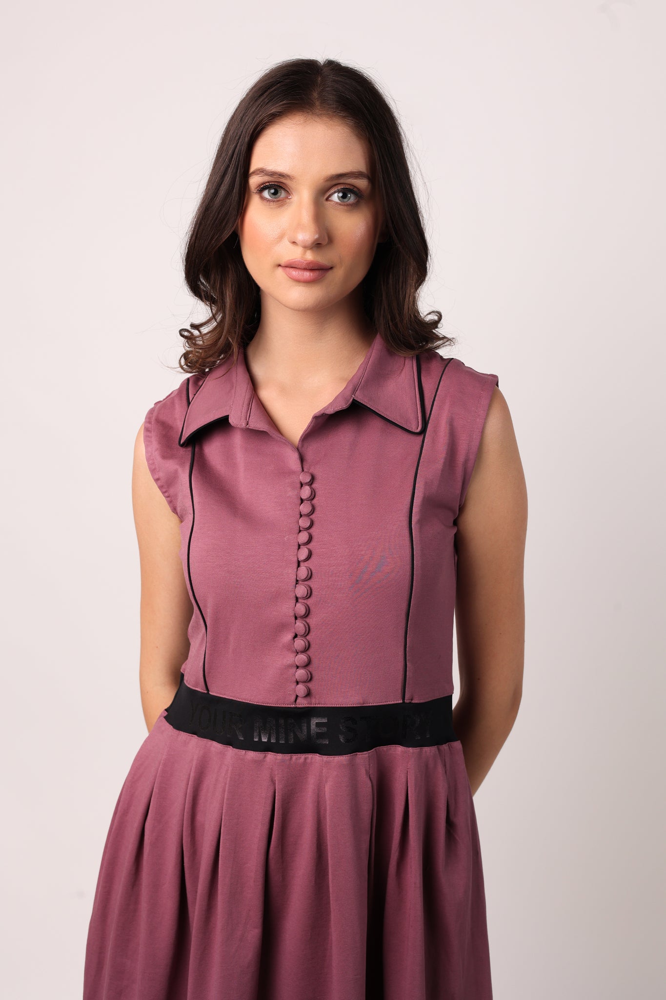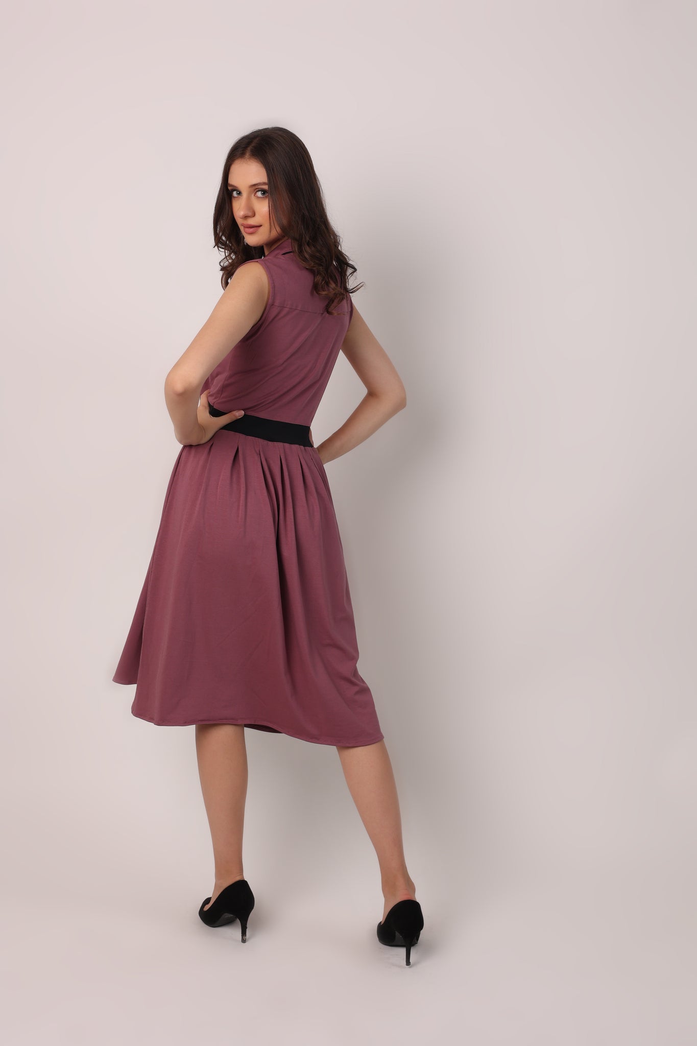 FEEL THE COMFORT OF SLEEVELESS COTTON DRESS FEATURING FRONT BUTTON DETAILING AND BELT DETAILING. SLIP INTO SOPHISTICATION WITH THIS COTTON PLEATED DRESS.