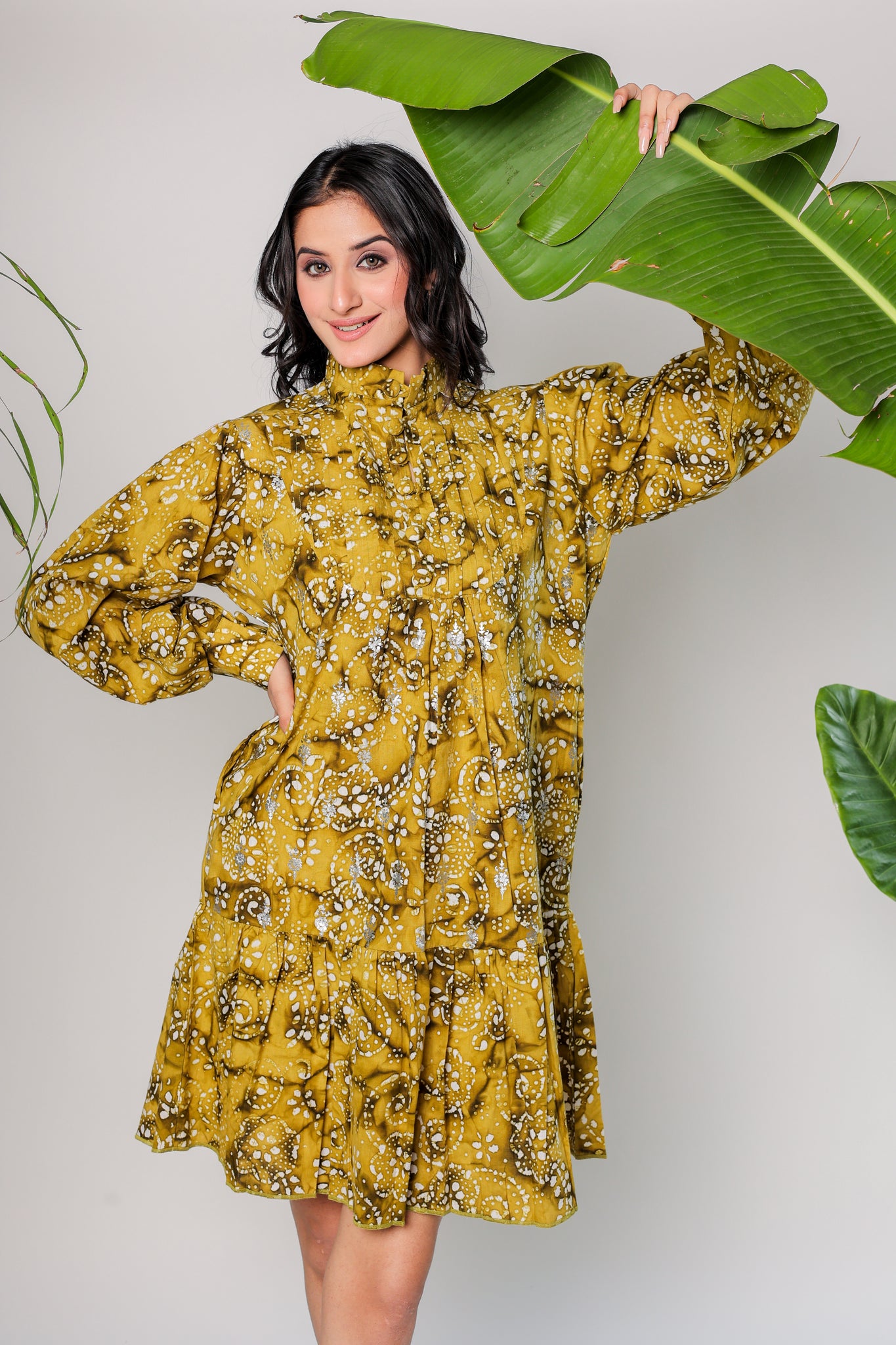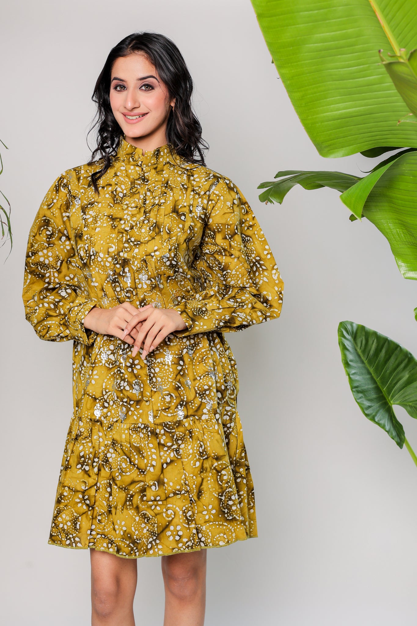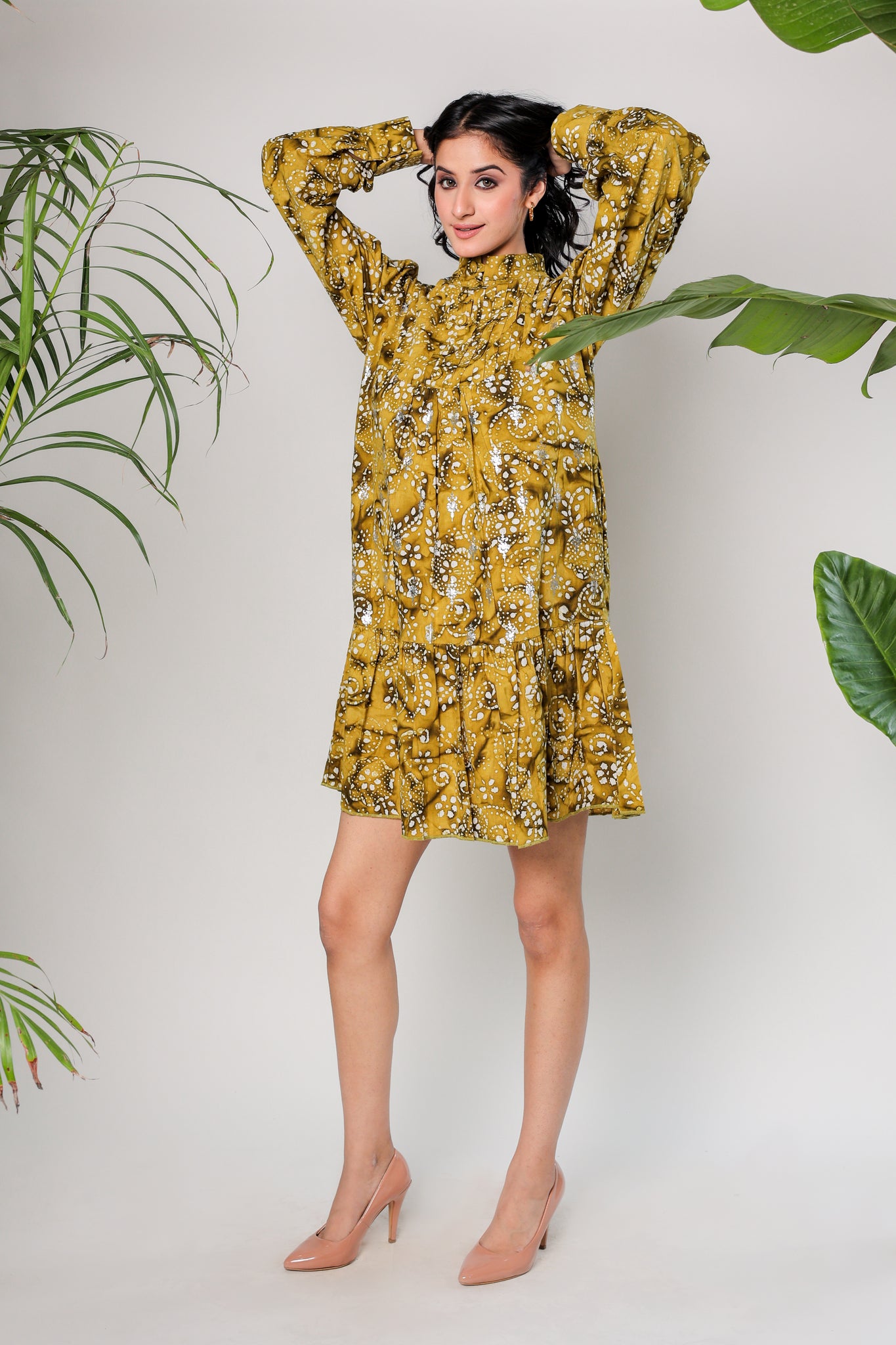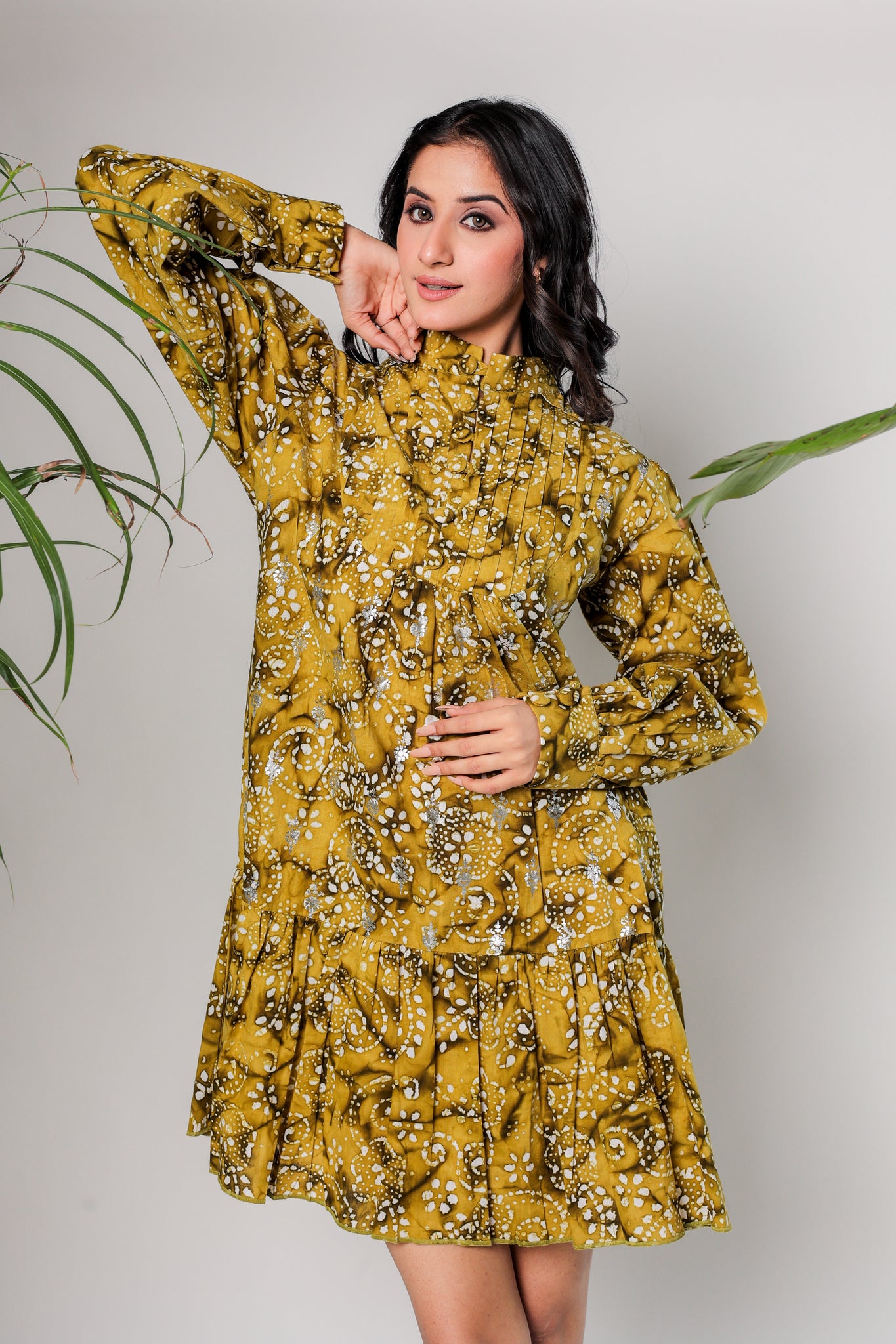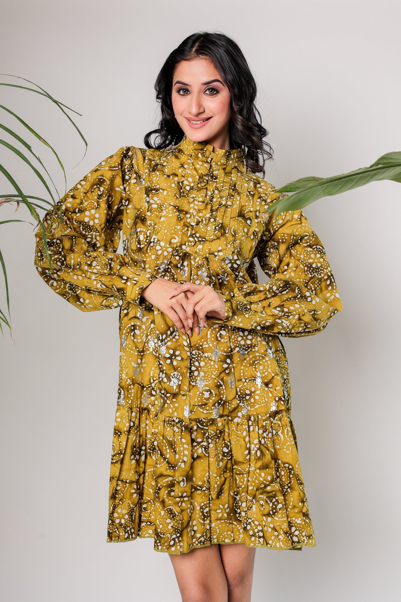 Wear this stylish summer dress from Your Mine Story to celebrate the spirit of the season.This versatile dress with front pleats and foil pattern accents is ideal for your summer outing. Wear this dress on your next Girls outing !