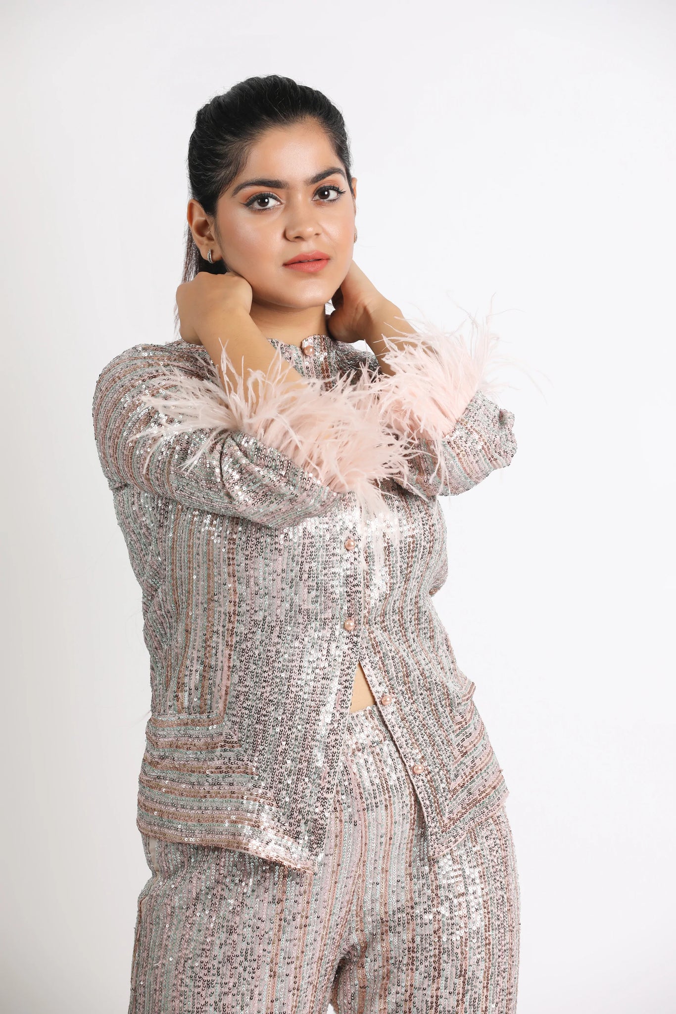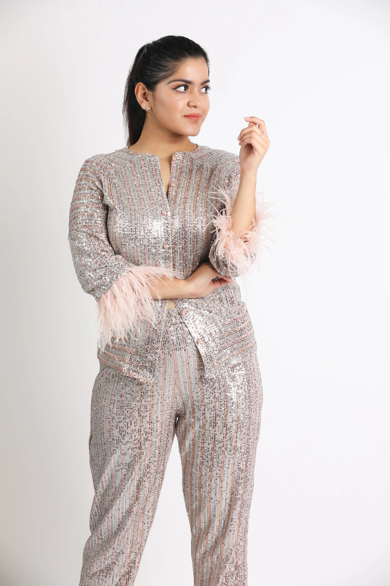 CHANGE THE FASHION GAME WITH THIS CHAMPION PINK PANT SUIT THIS Winters. it's time to ditch you Boring clothes. Fabric: SEQUIN NET LYCRA CELEBRITY RAJVEE GANDHI SLAYING IN OUR SEQUIN BLAZER. DISCLAIMER : There might be a slight variation...Read more