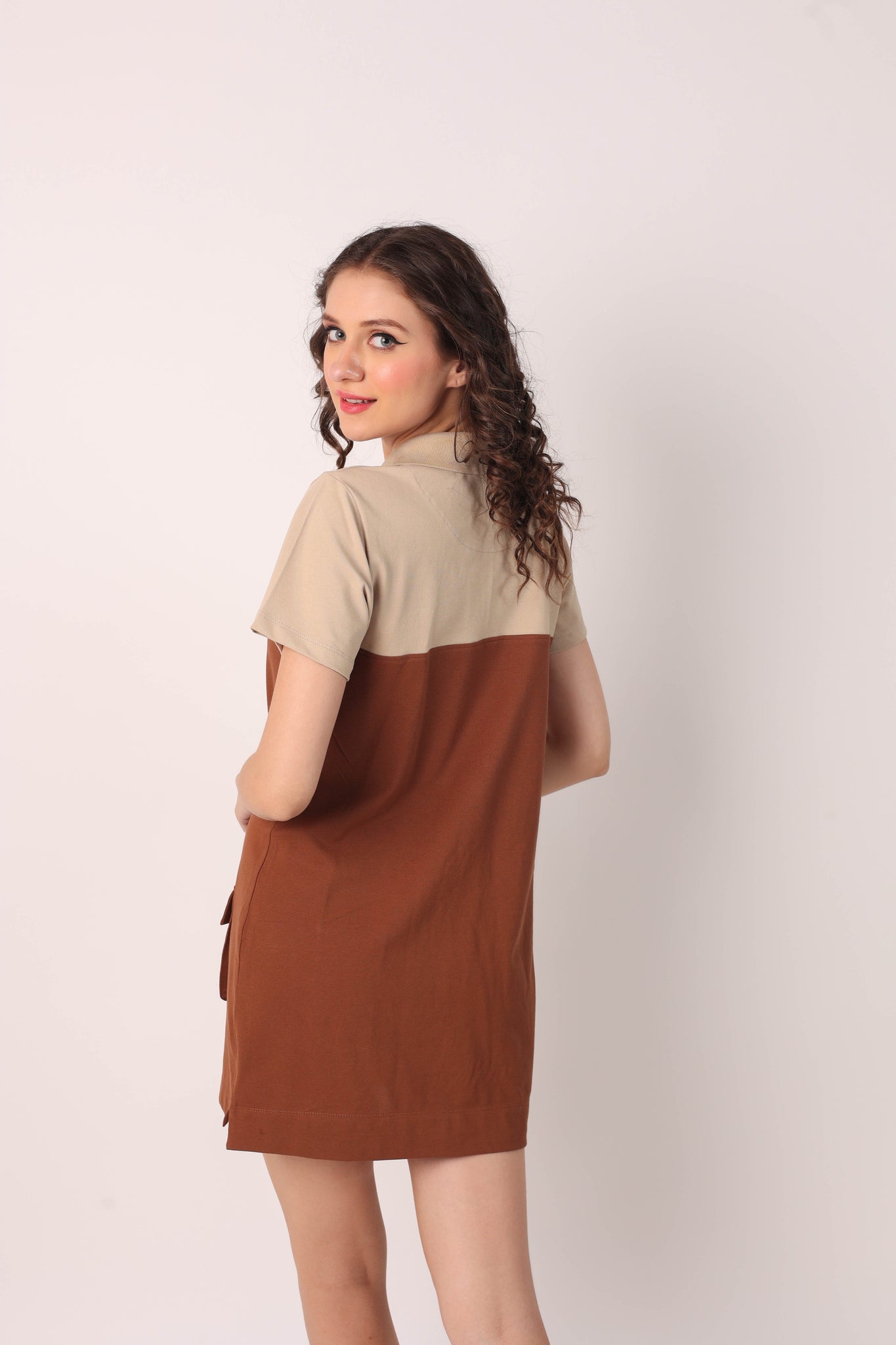 WITH THIS DUAL-TONE DRESS WITH POCKET DETAILS, BOOST YOUR STYLE GAME. IF YOU NEED ANY CUSTOMIZATION WITH REGARD TO INCREASING DRESS LENGTH, YOU CAN LET US KNOW IN THE NOTES SECTION AT CHECKOUT.