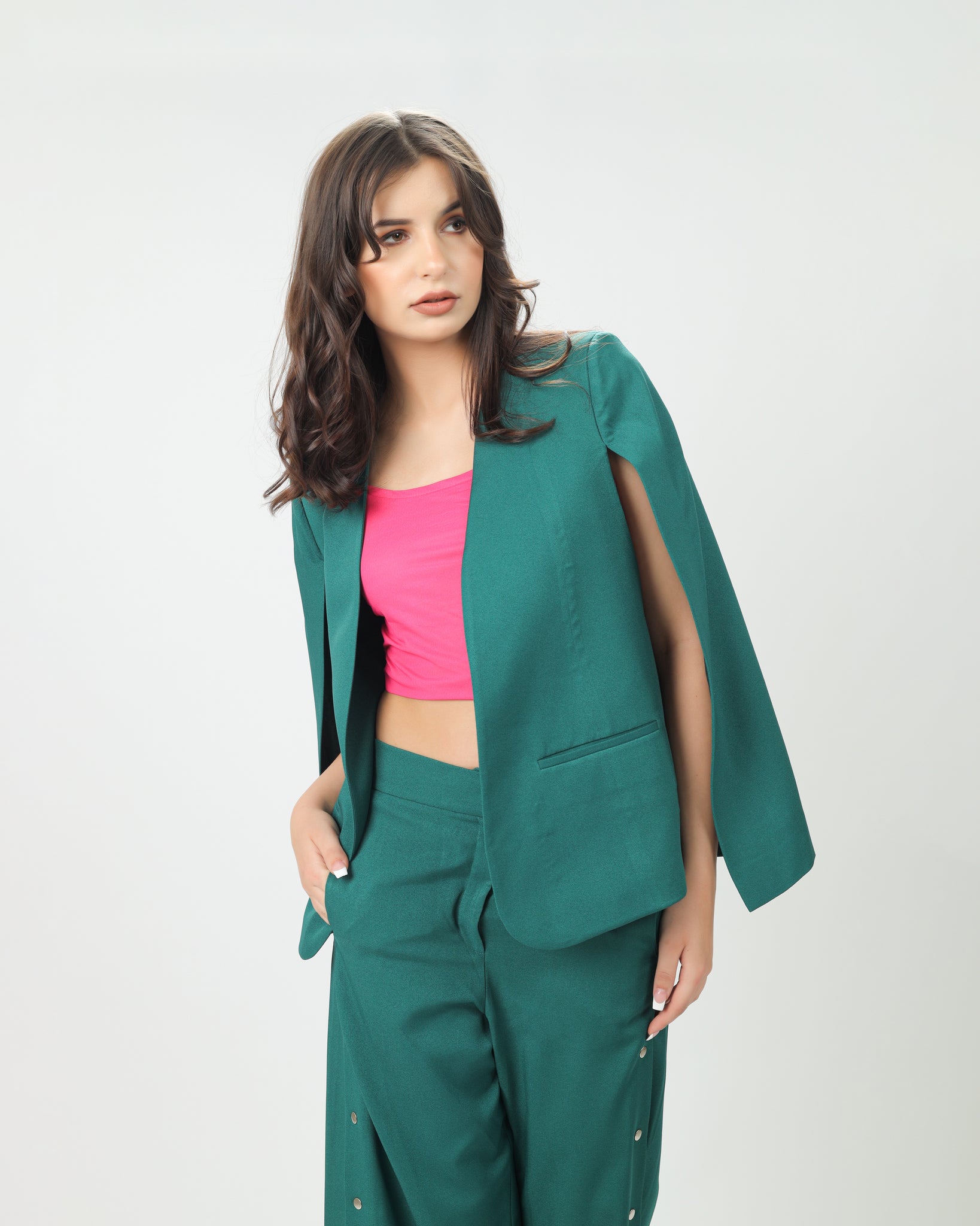 Hit the next Formal Eve in style by rocking this ultra-chic PANT SUIT. Metal button detailed trousers lend you an updated look.