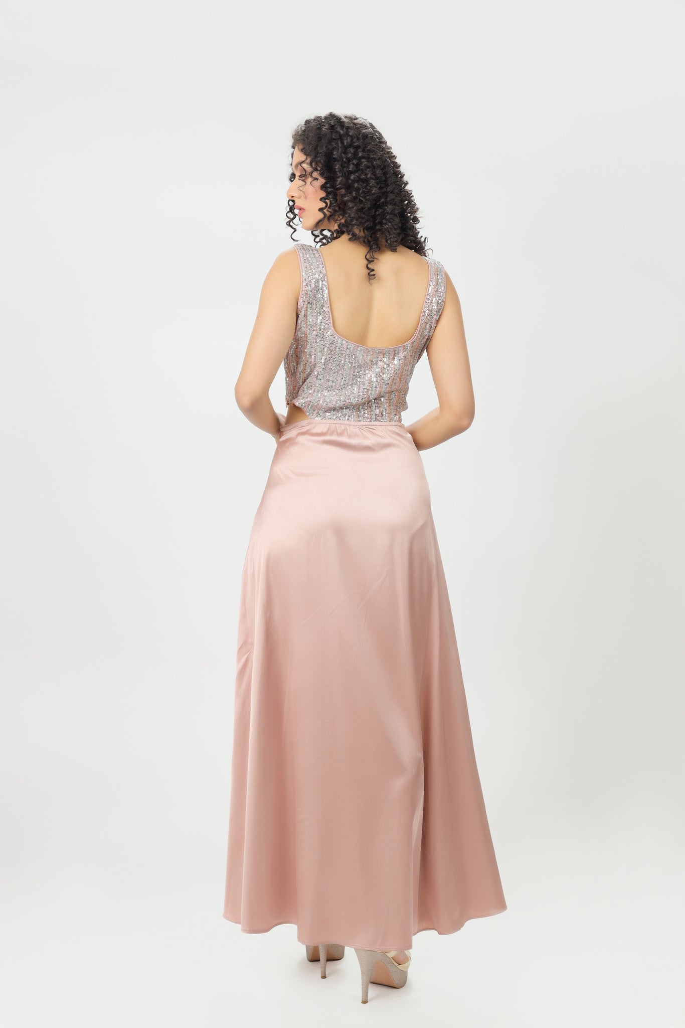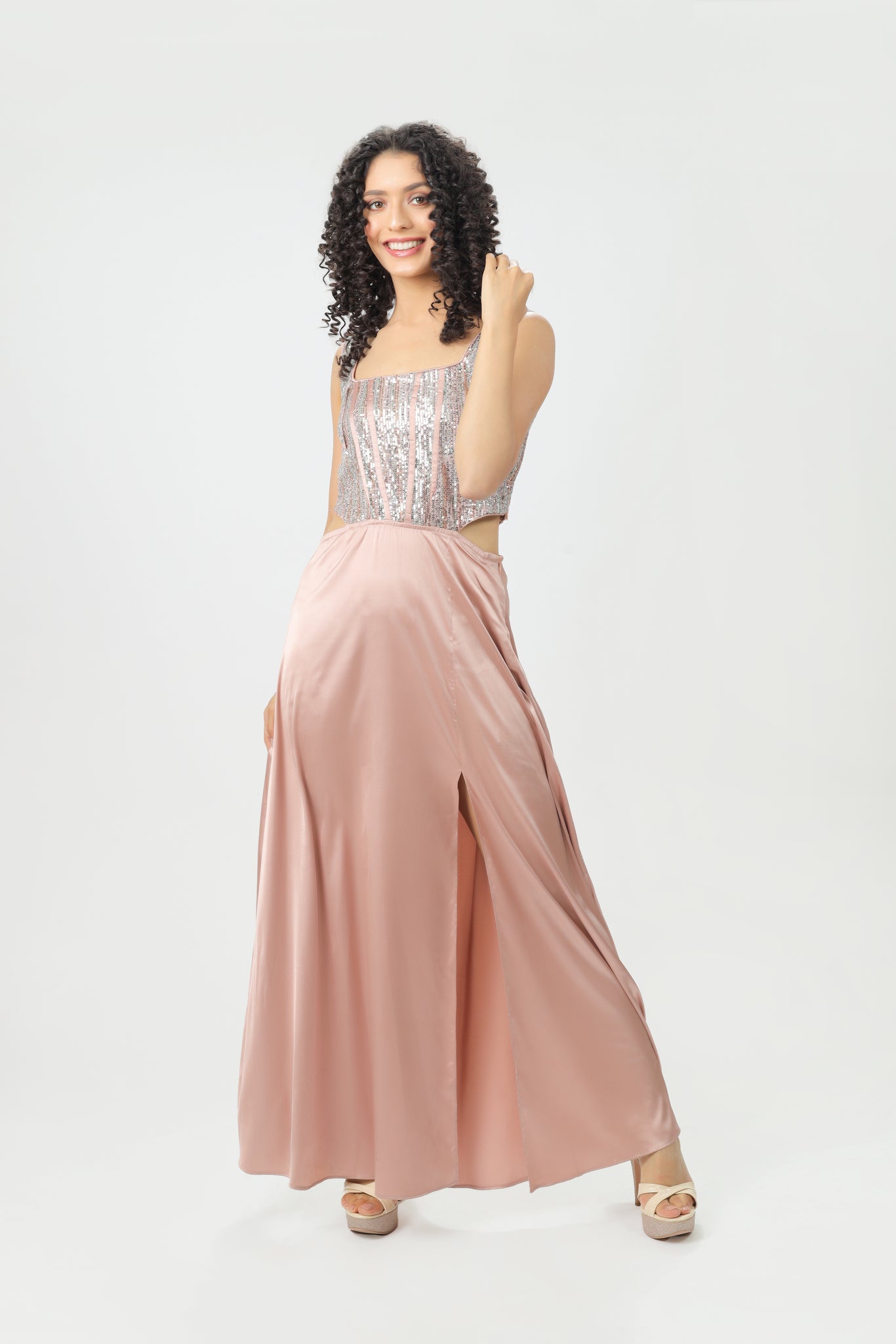 Ready to wear party dress with sequin and cut out detailing at the waist is the perfect Bridesmaid Outfit !