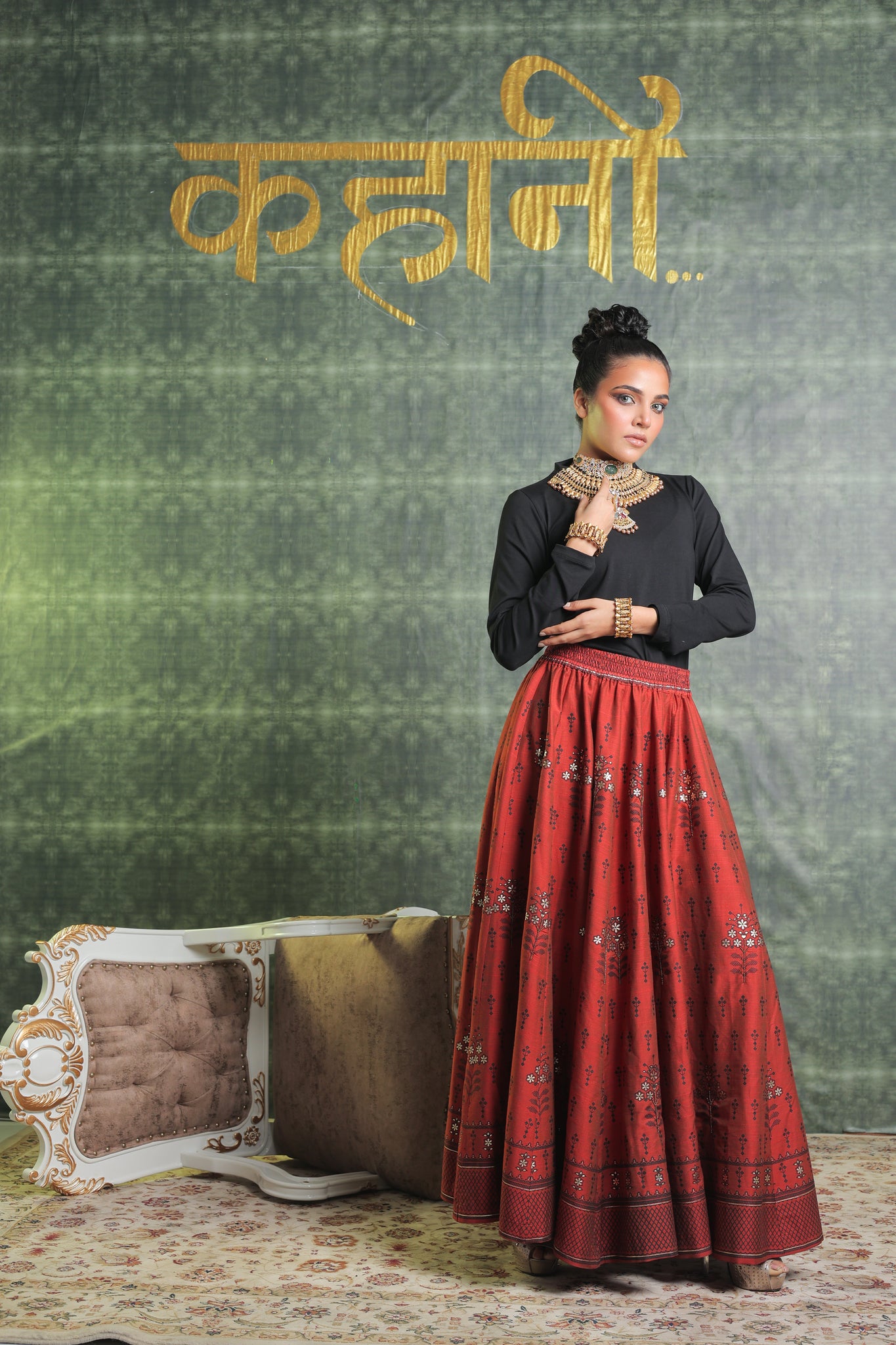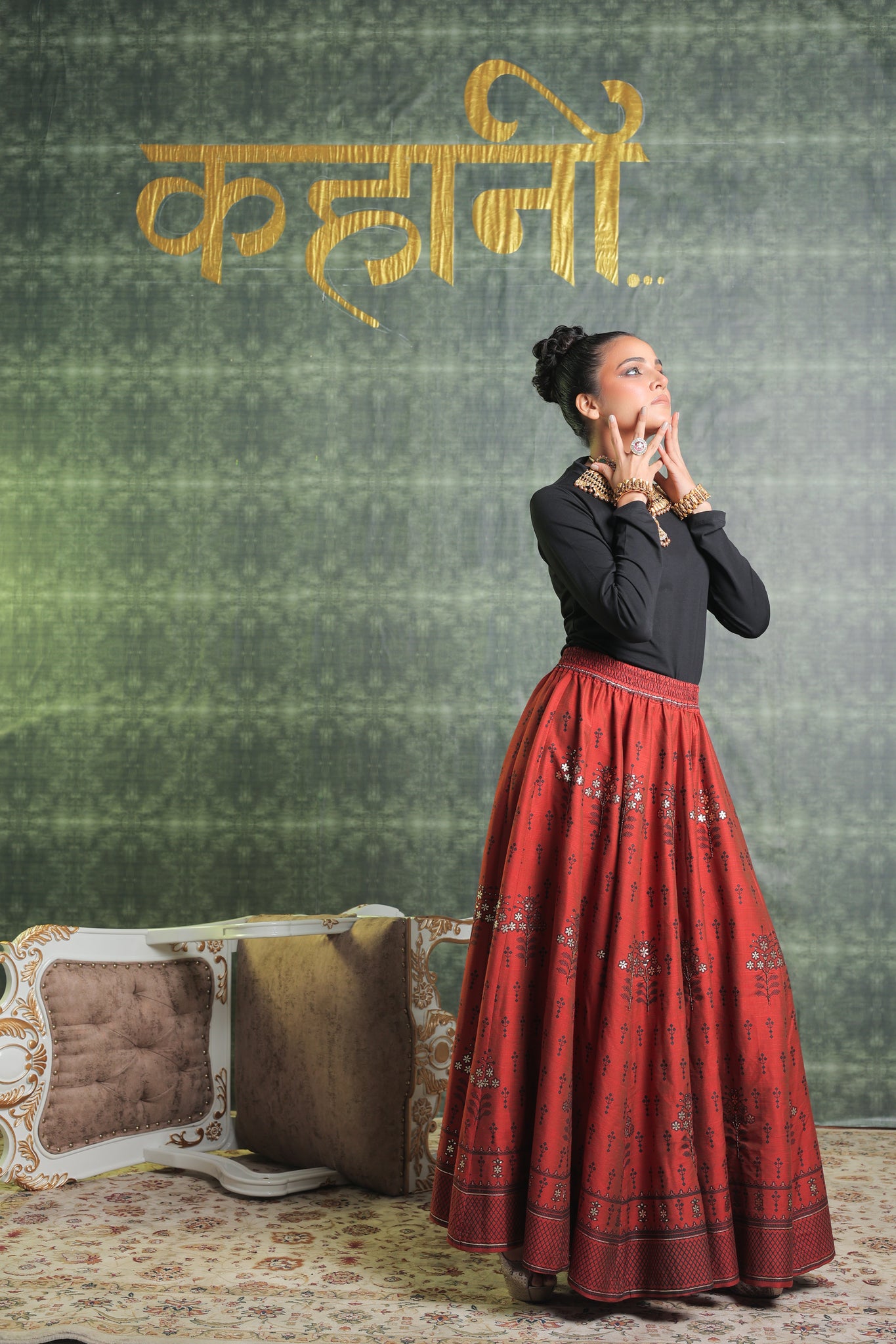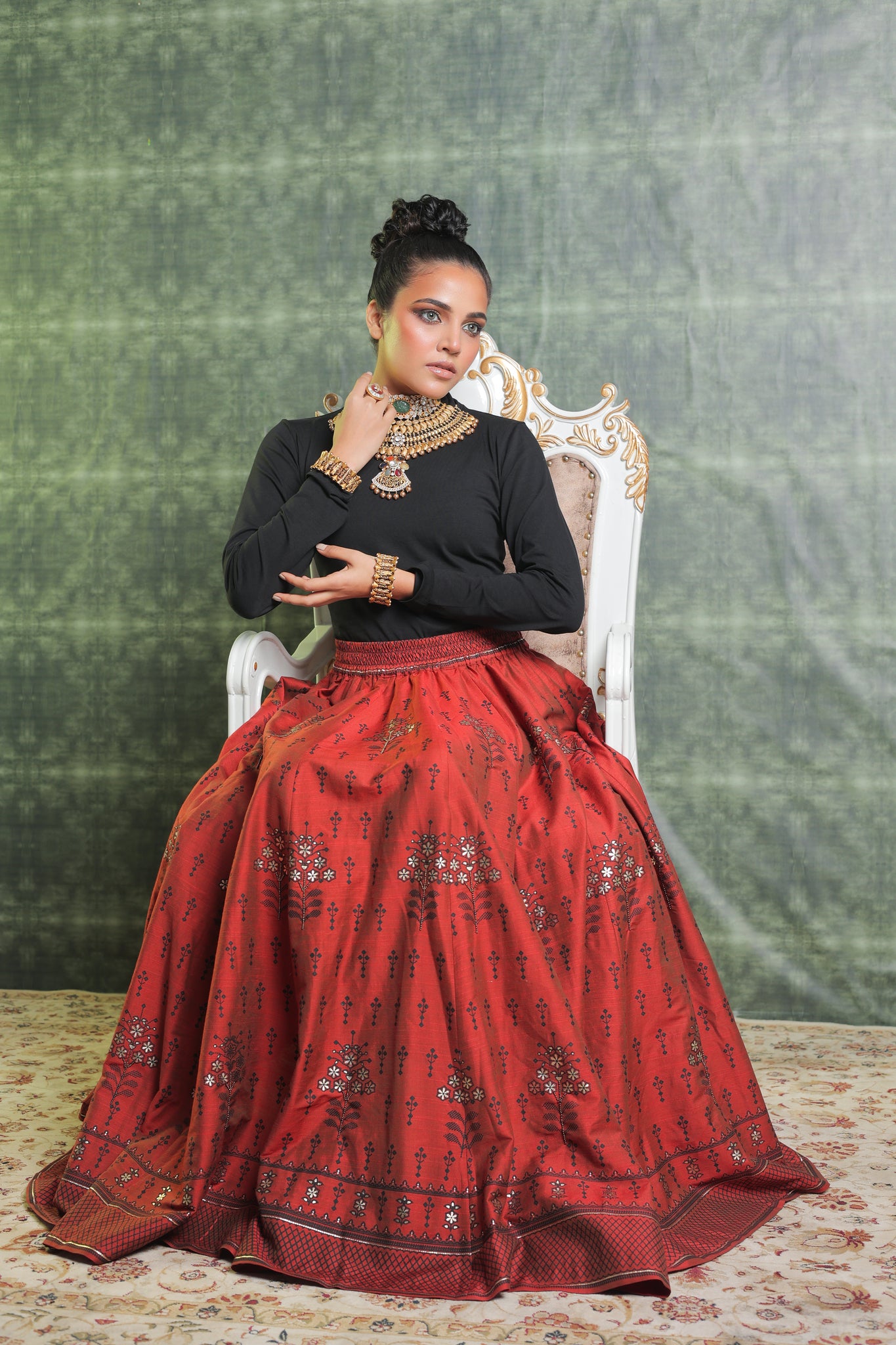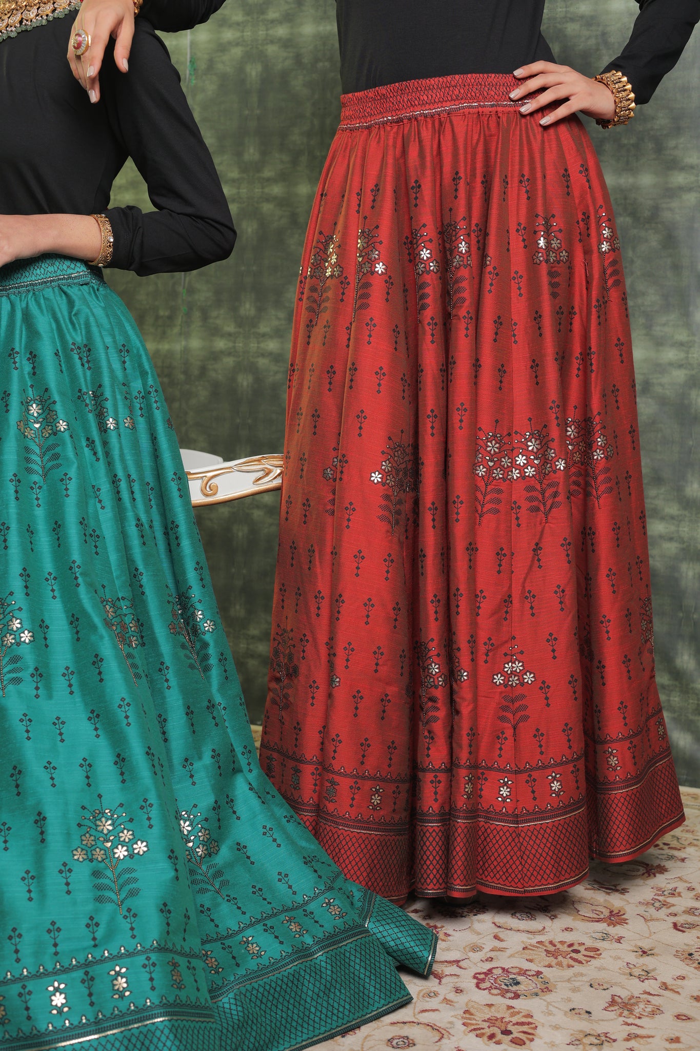 This exquisitely designed ethnic long skirt with pockets and an elastic waist belt exudes a festive feeling. Wear it with traditional jewellery to achieve an Indo-Western look. In terms of fashion, traditional long skirts are making its comeback! We can even Customise the Skirt length for you .