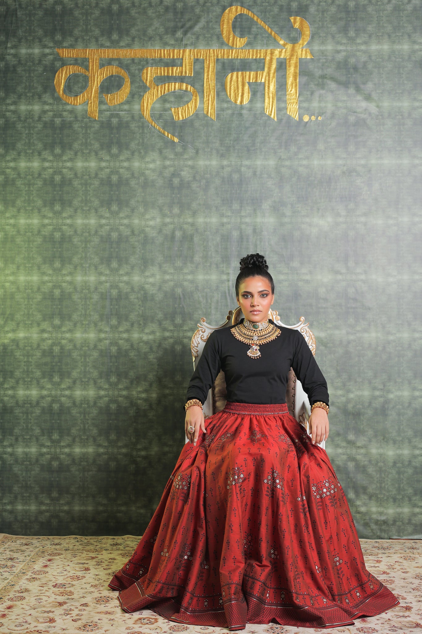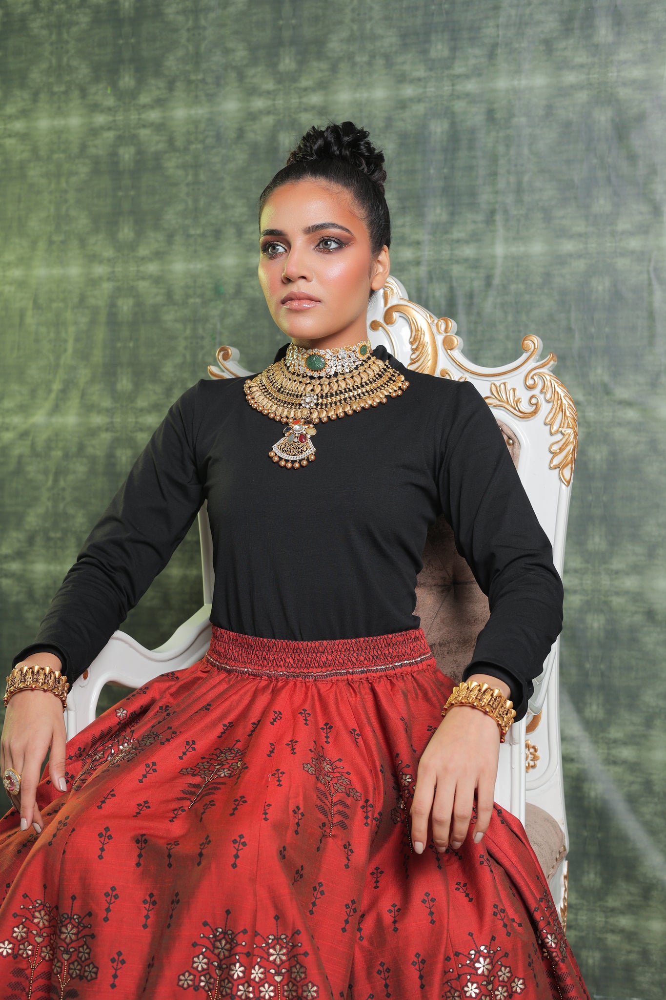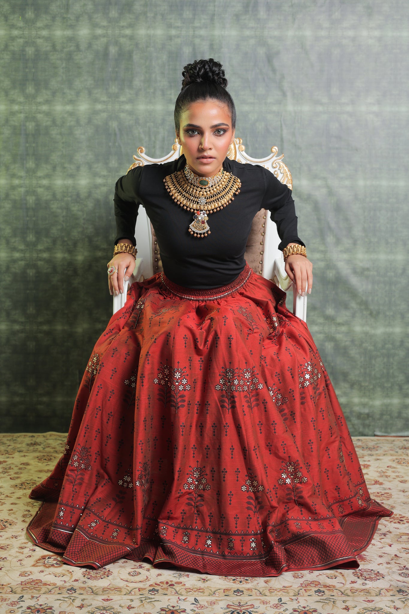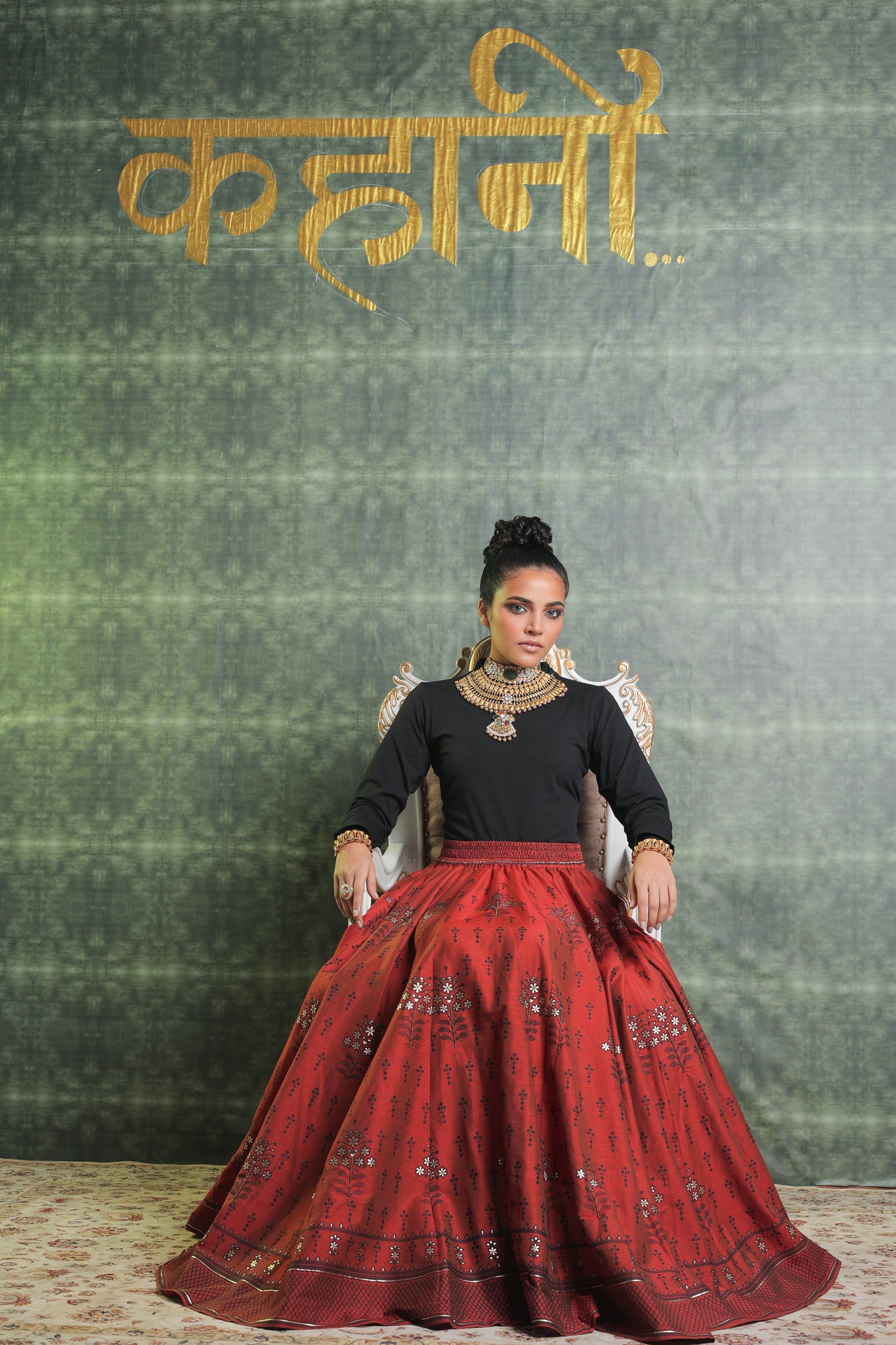 This exquisitely designed ethnic long skirt with pockets and an elastic waist belt exudes a festive feeling. Wear it with traditional jewellery to achieve an Indo-Western look. In terms of fashion, traditional long skirts are making its comeback! We can even Customise the Skirt length for you .