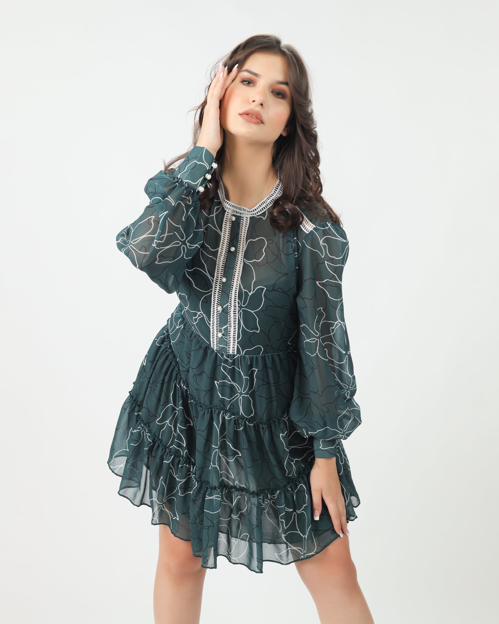 Look and feel your absolute best in this brilliant floral dress featuring cut-out details at side waist with lace detailing, can be paired with solid heels to wow your date. Fabric: GEORGETTE MODEL SIZE & FITThe model (height...Read more
