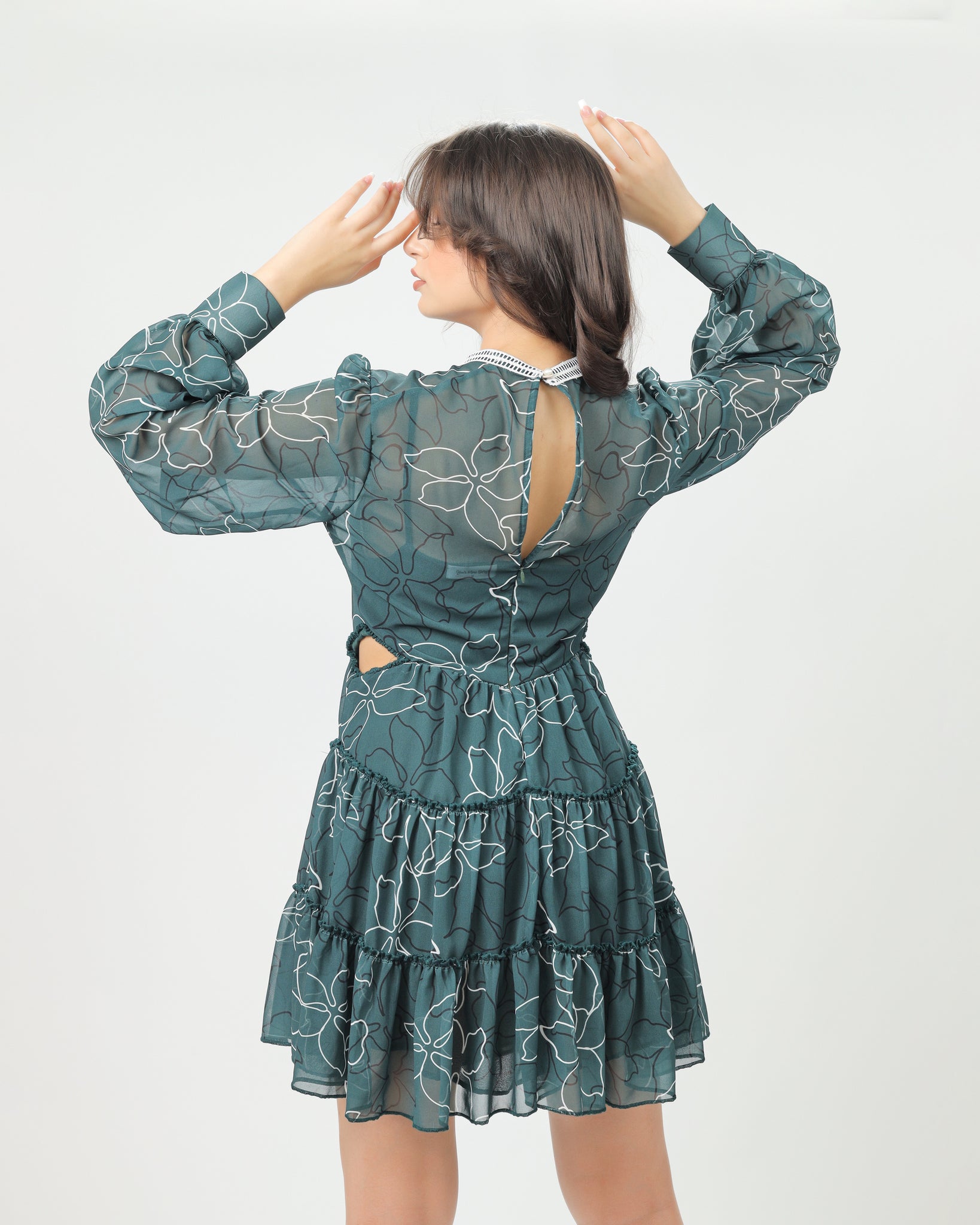 Look and feel your absolute best in this brilliant floral dress featuring cut-out details at side waist with lace detailing, can be paired with solid heels to wow your date.