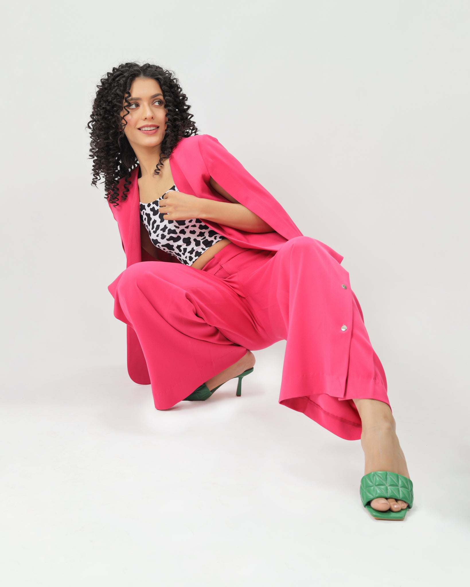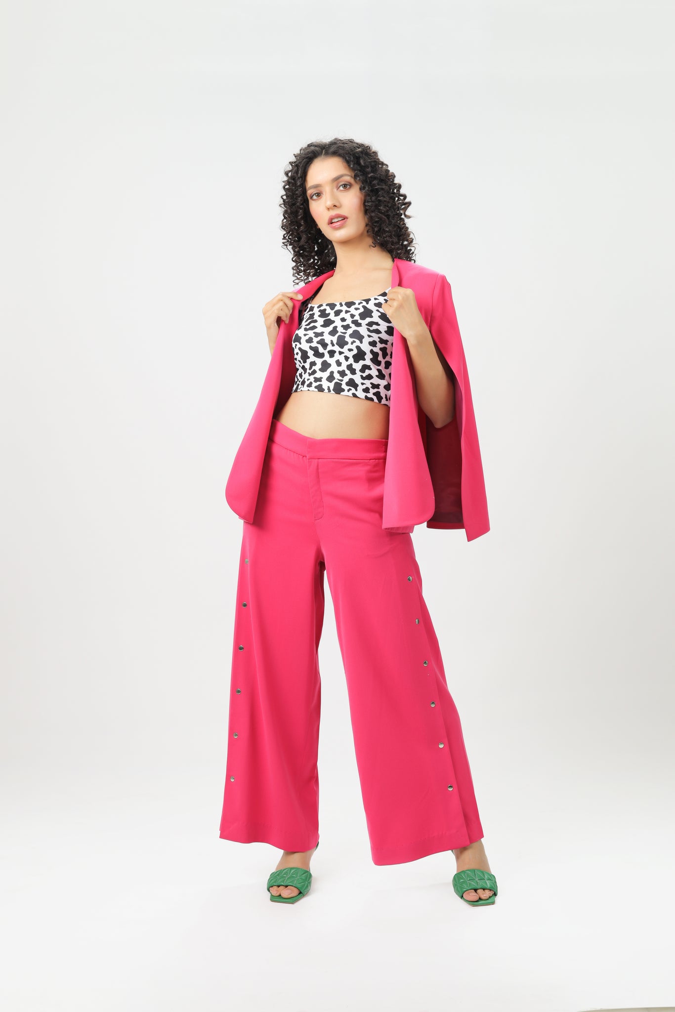 Hit the next Formal Eve in style by rocking this ultra-chic PANT SUIT. Metal button detailed trousers lend you an updated look