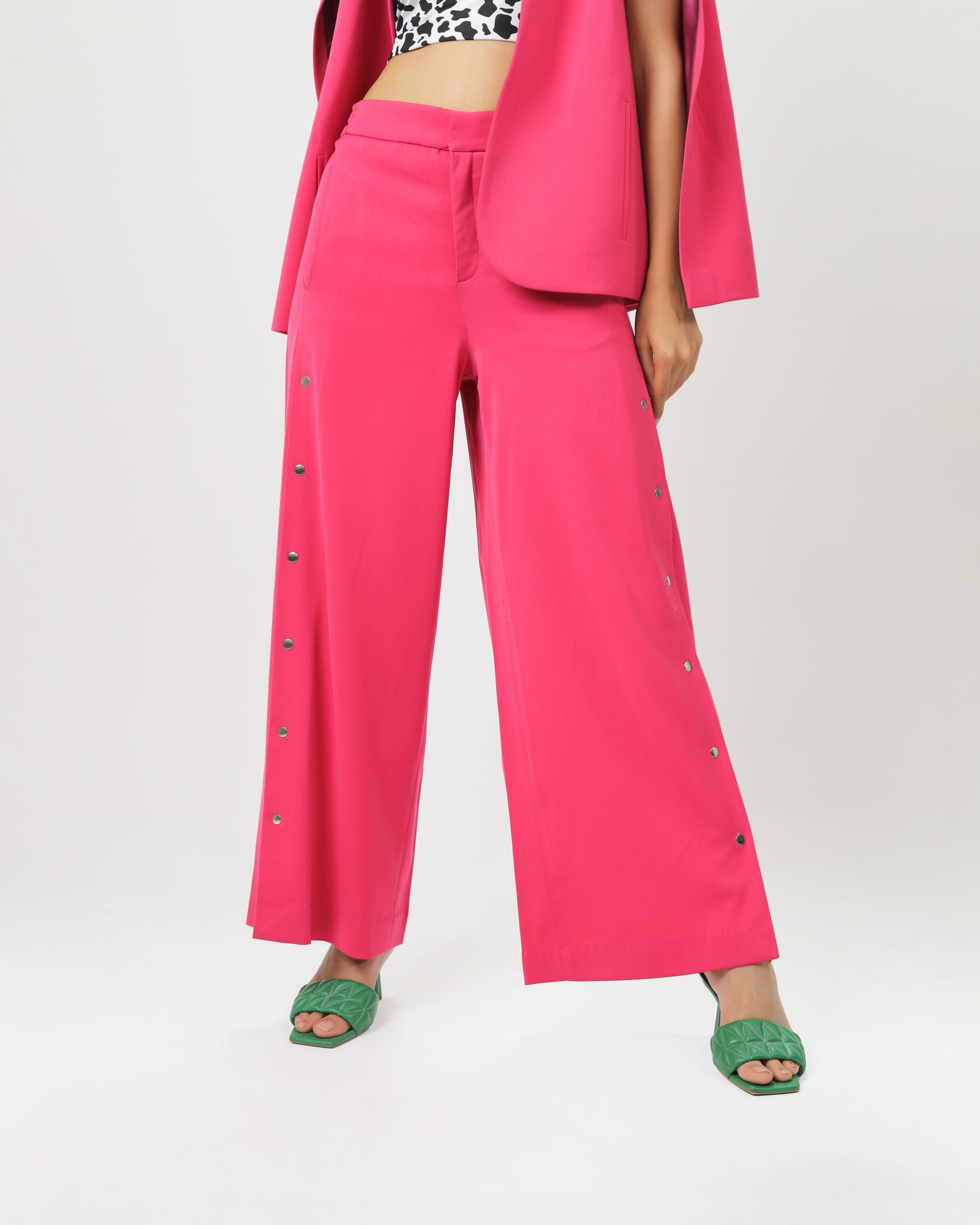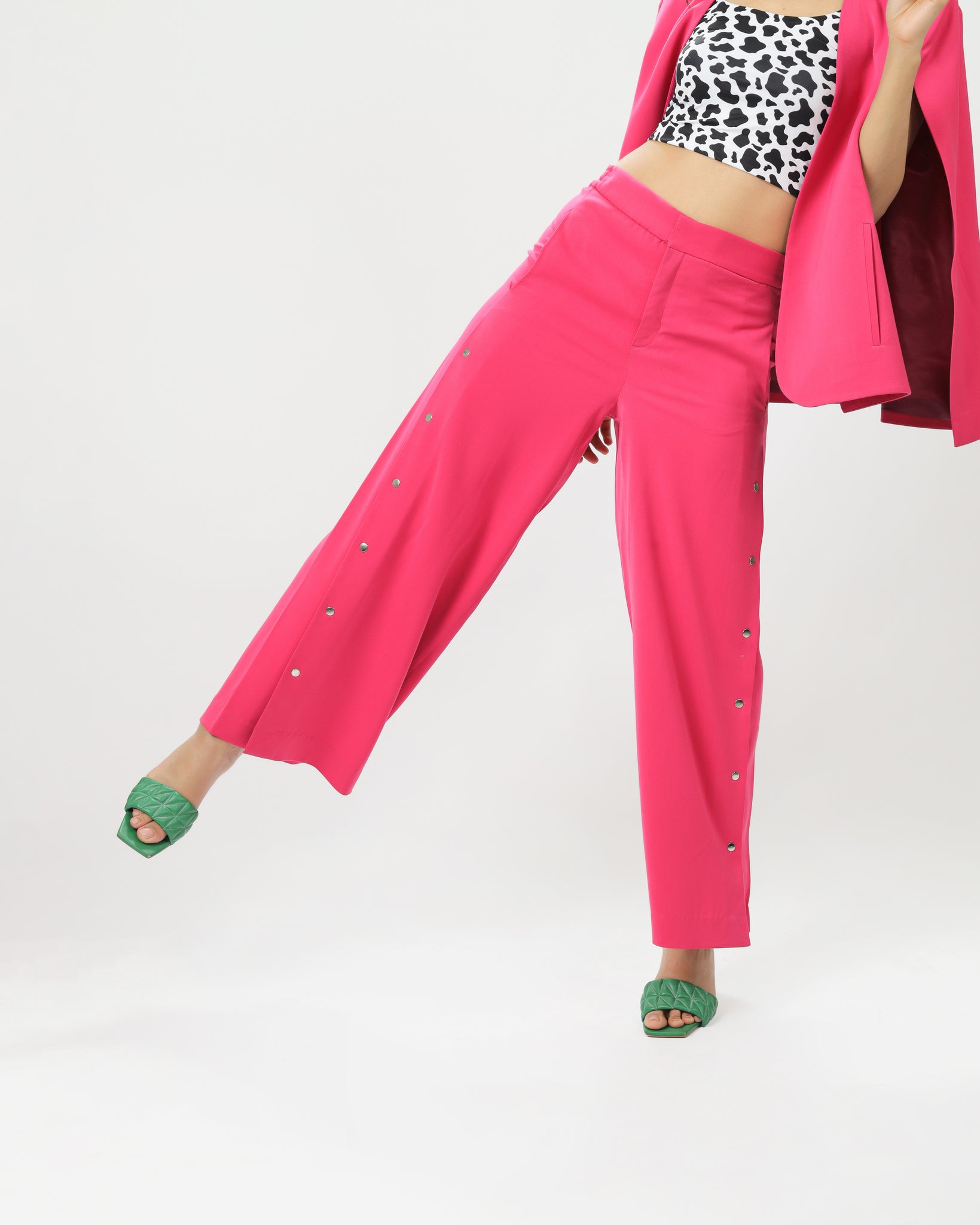 Hit the next Formal Eve in style by rocking this ultra-chic PANT SUIT. Metal button detailed trousers lend you an updated look
