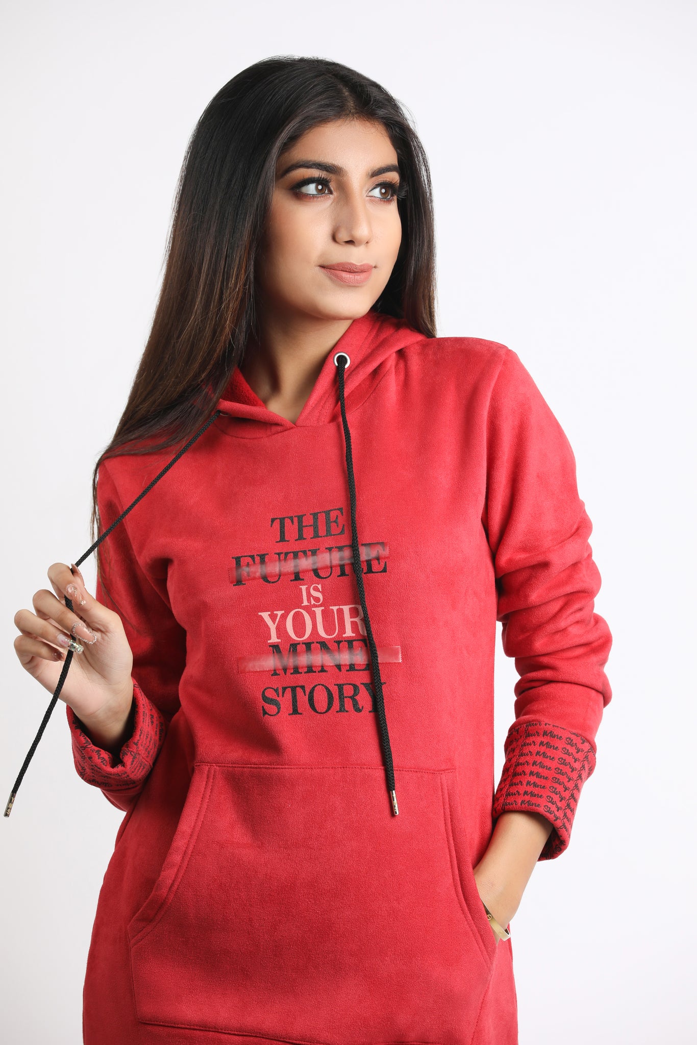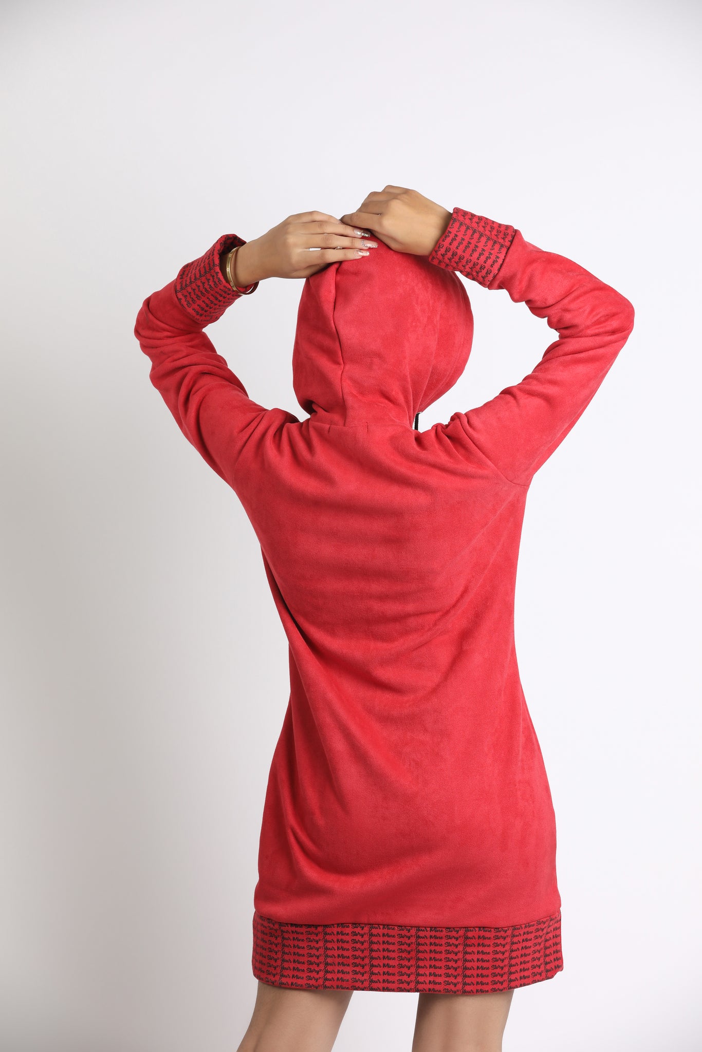 This Red Hoodie Dress is all we need this Winter Featuring kangaroo pocket in the front.