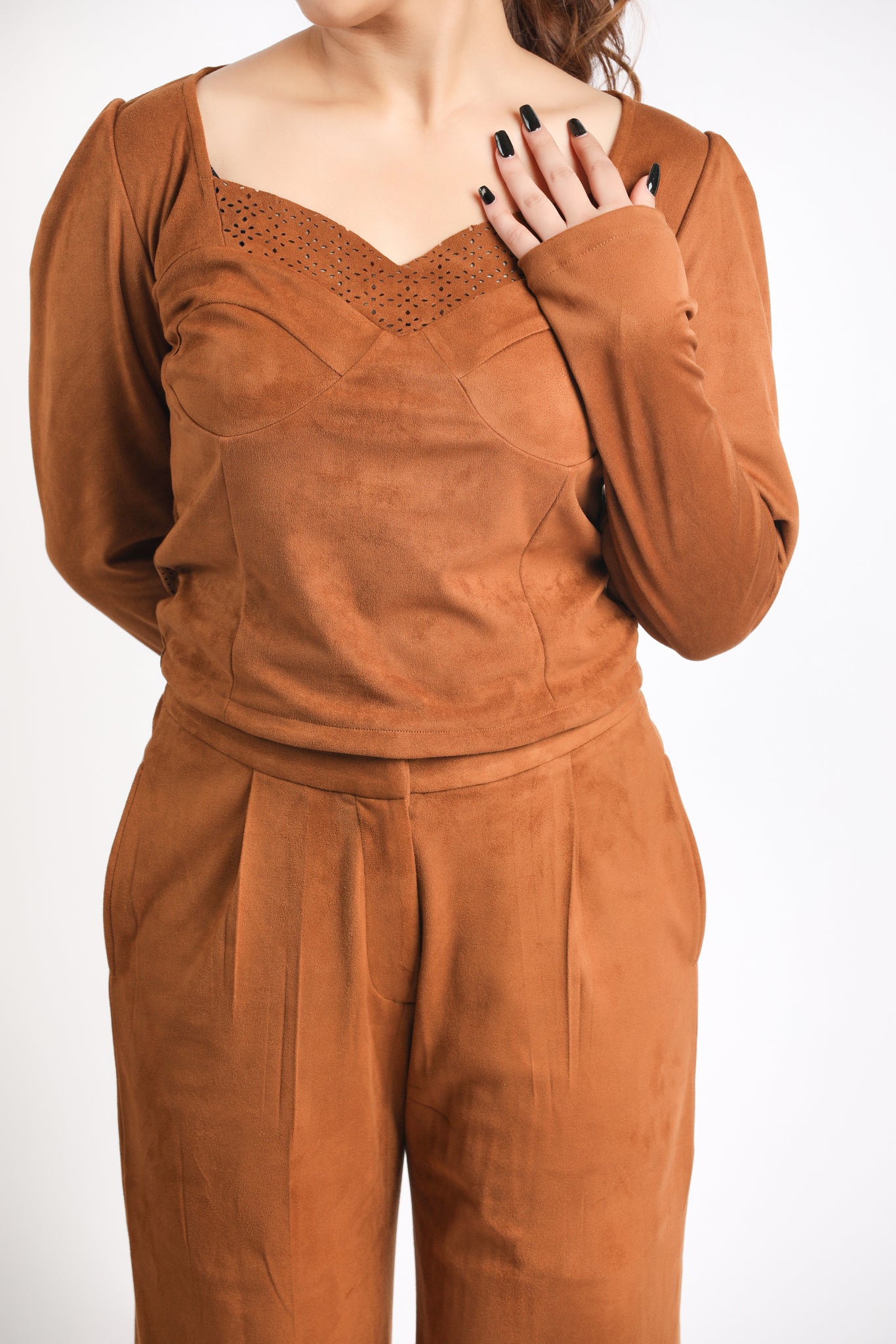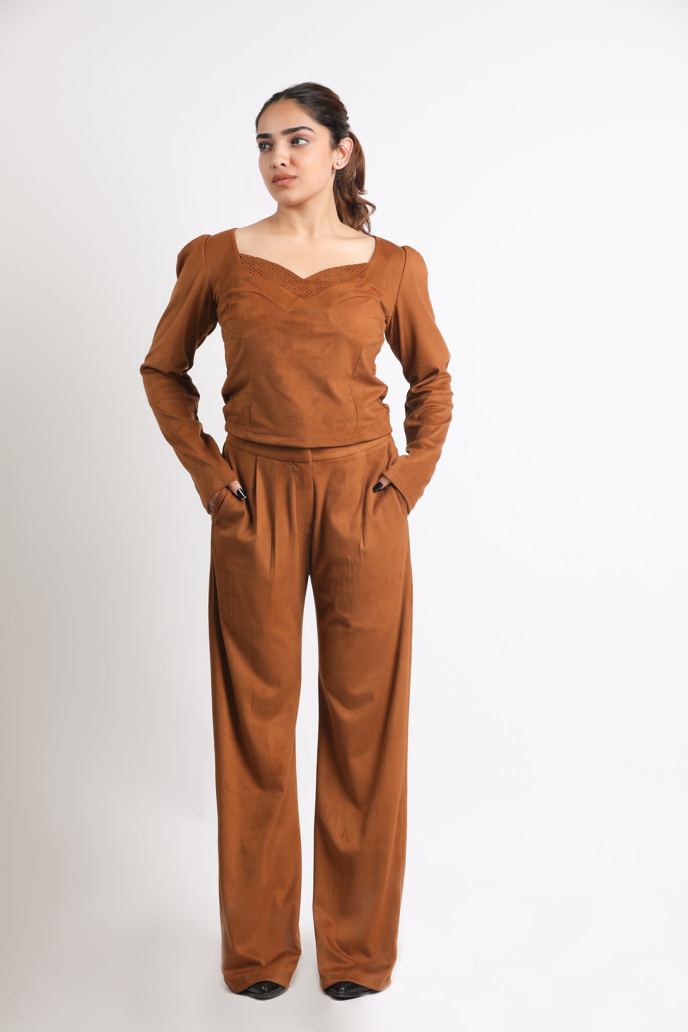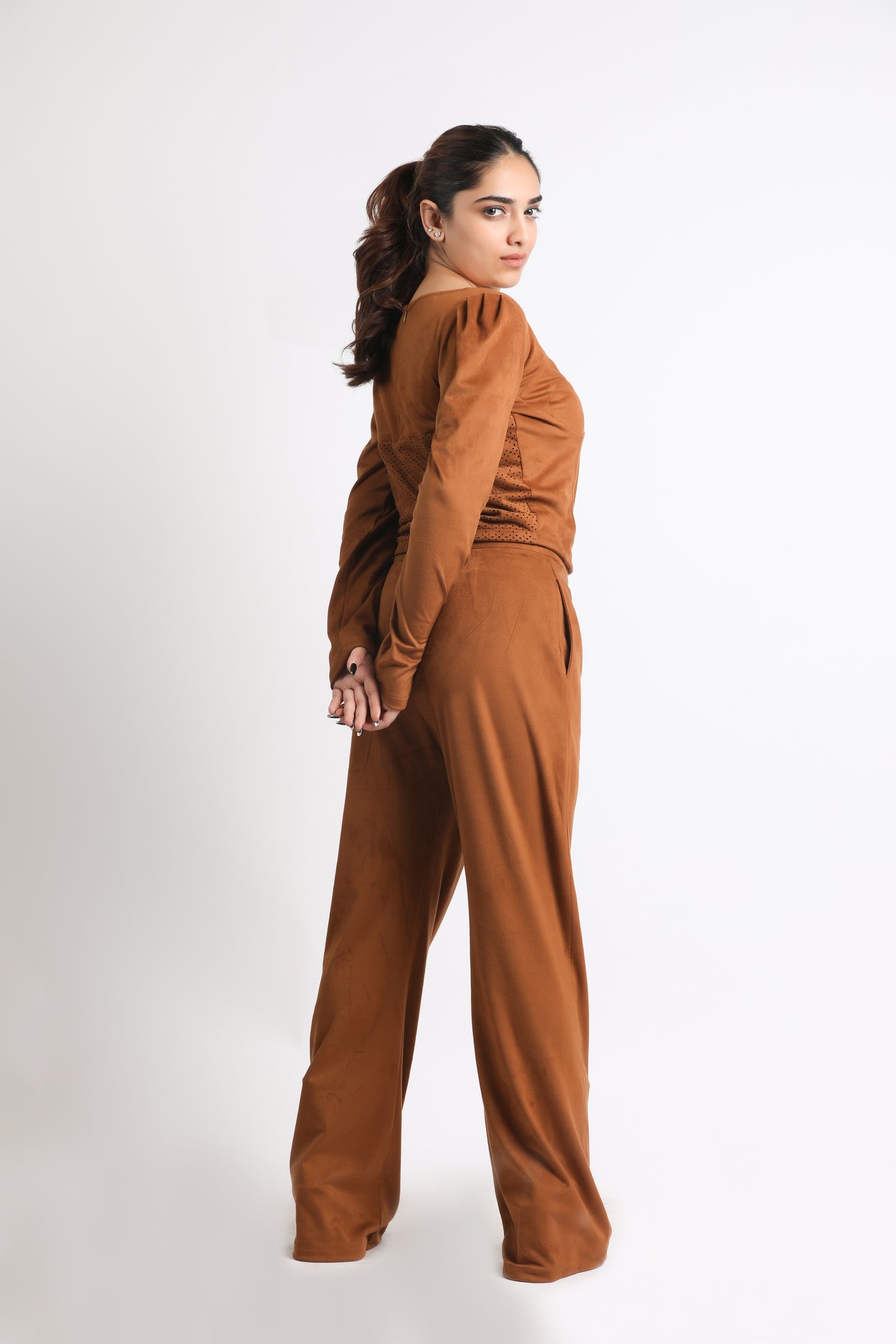 This formal PANT SUIT is beautifully crafted with tone on tone fine suede fabric. Rock this outfit at formal evenings.