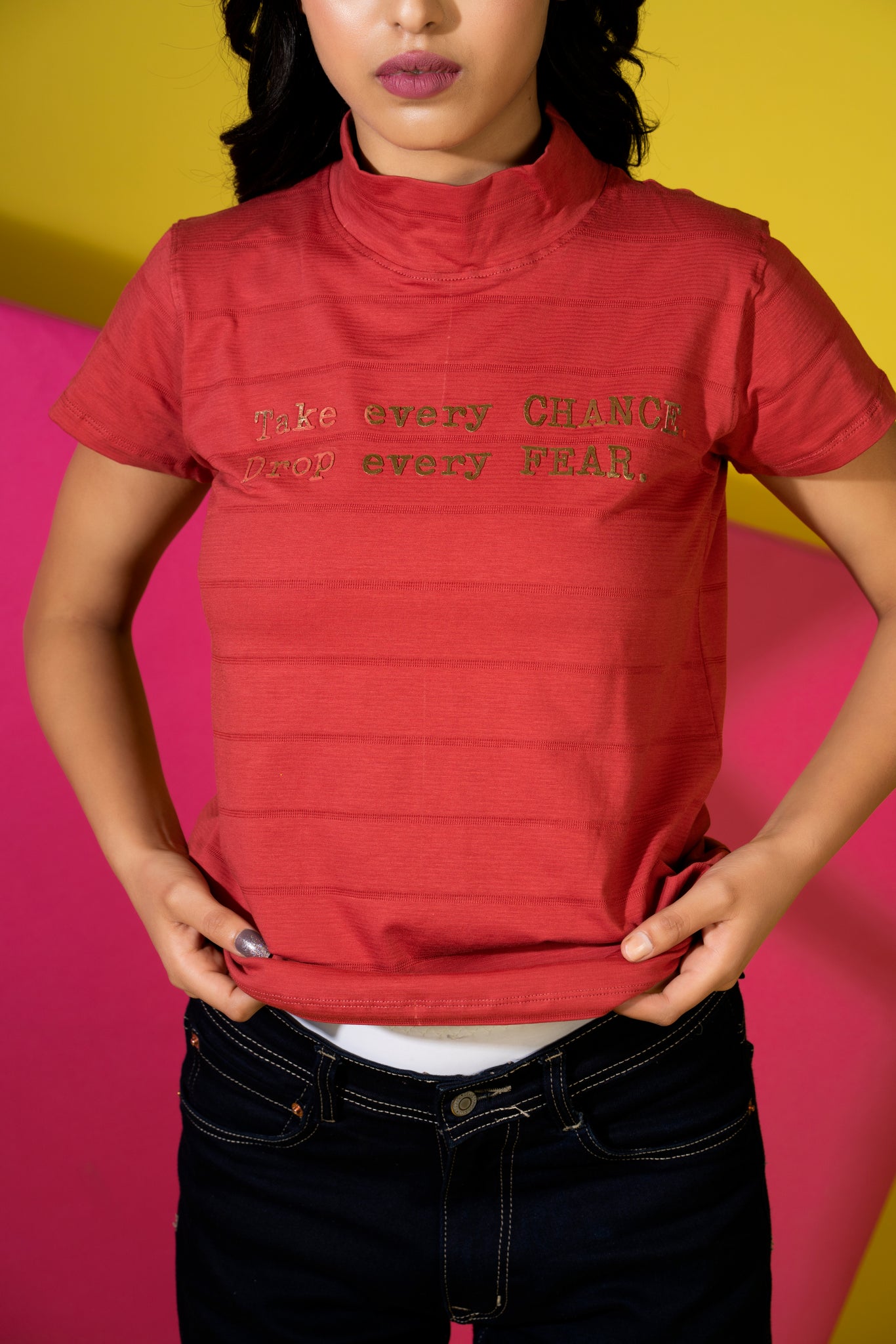 This high neck short sleeved t - shirt with statement print us all you need this summer.