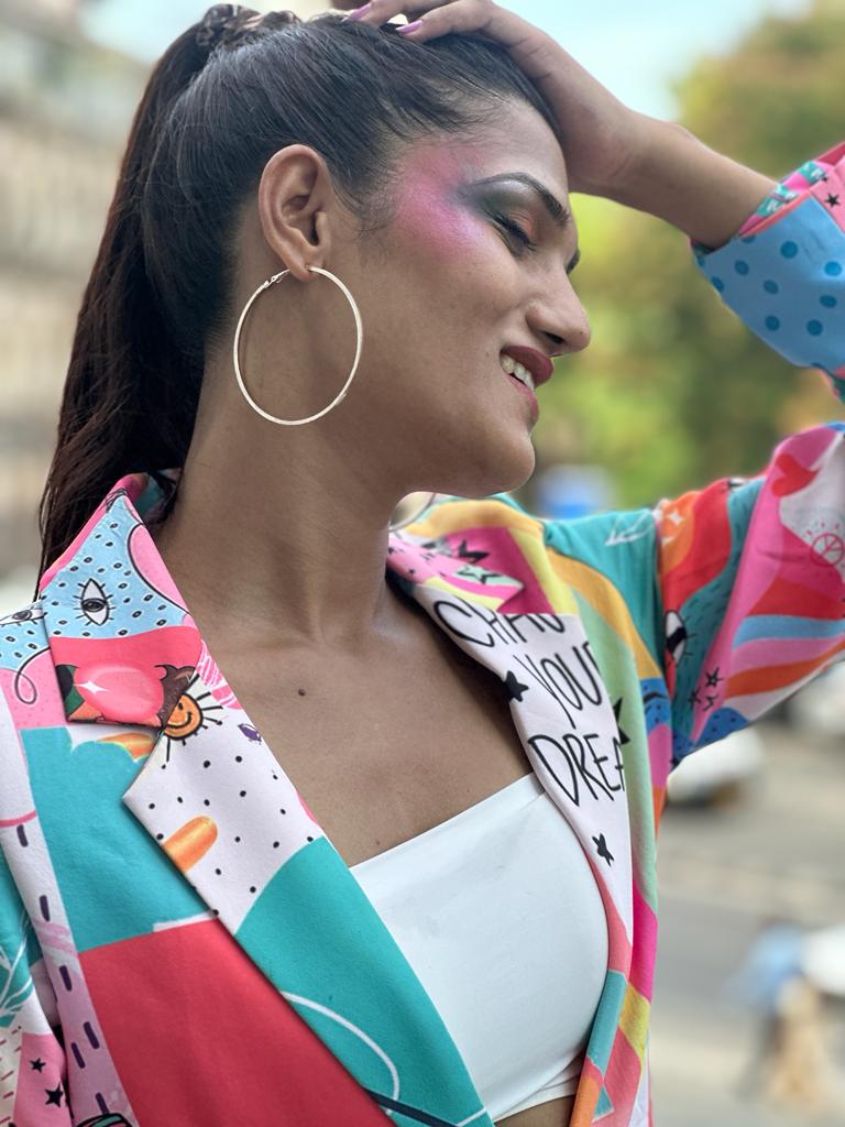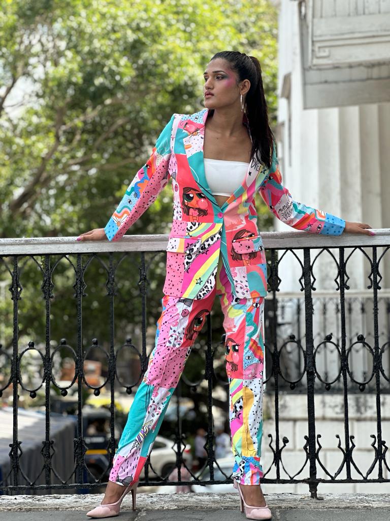 Oh so trendy! This pant suit is sure to set your fashion quotient high and make you the talk of the town.it's time to add some quirk to your Boring wardrobe ! Fabric: LYCRA KNITTED CLOTH MODEL SIZE...Read more