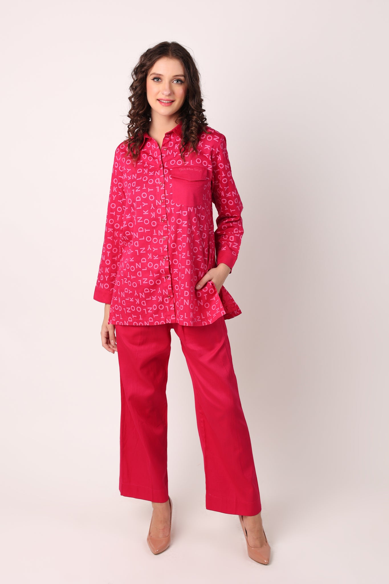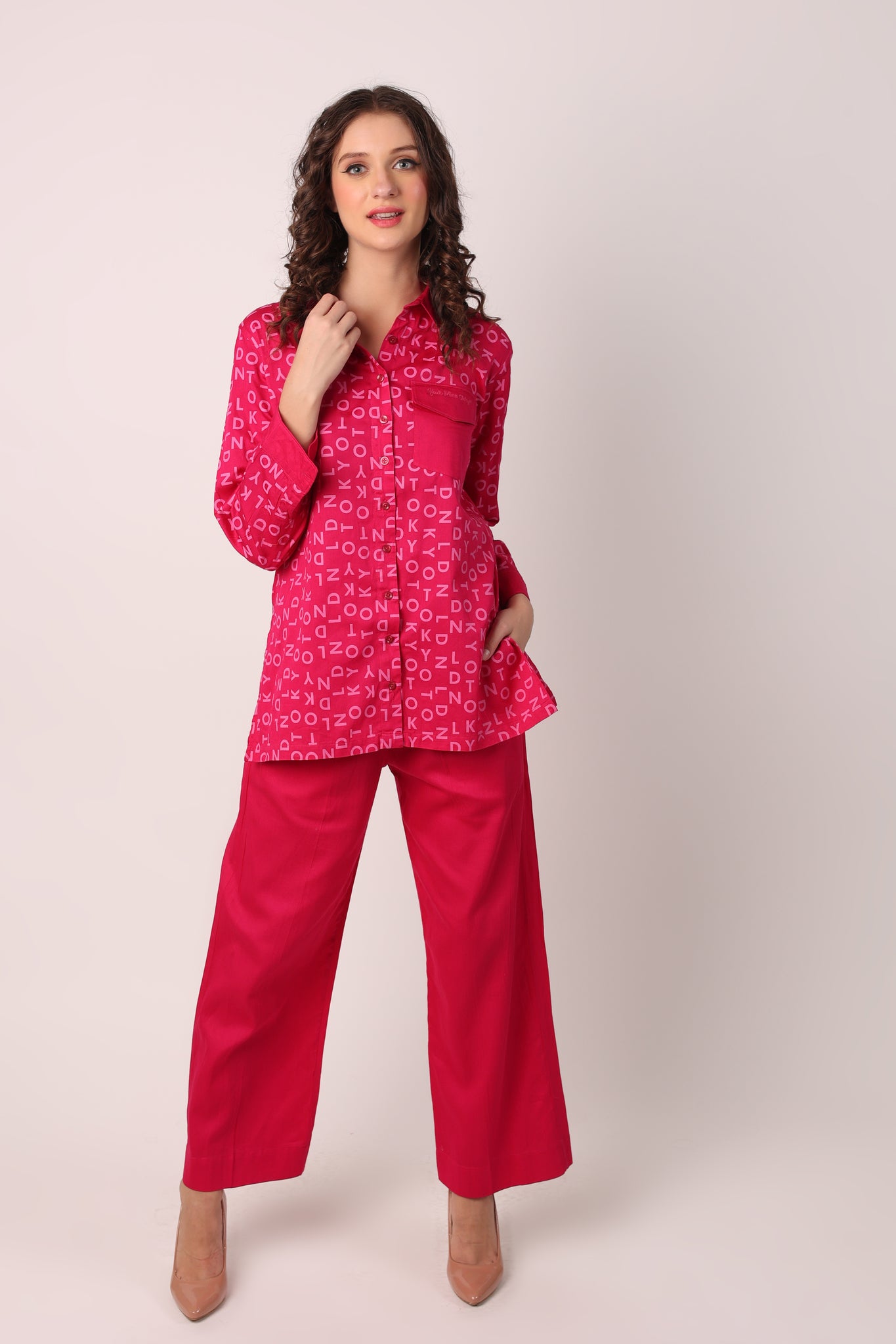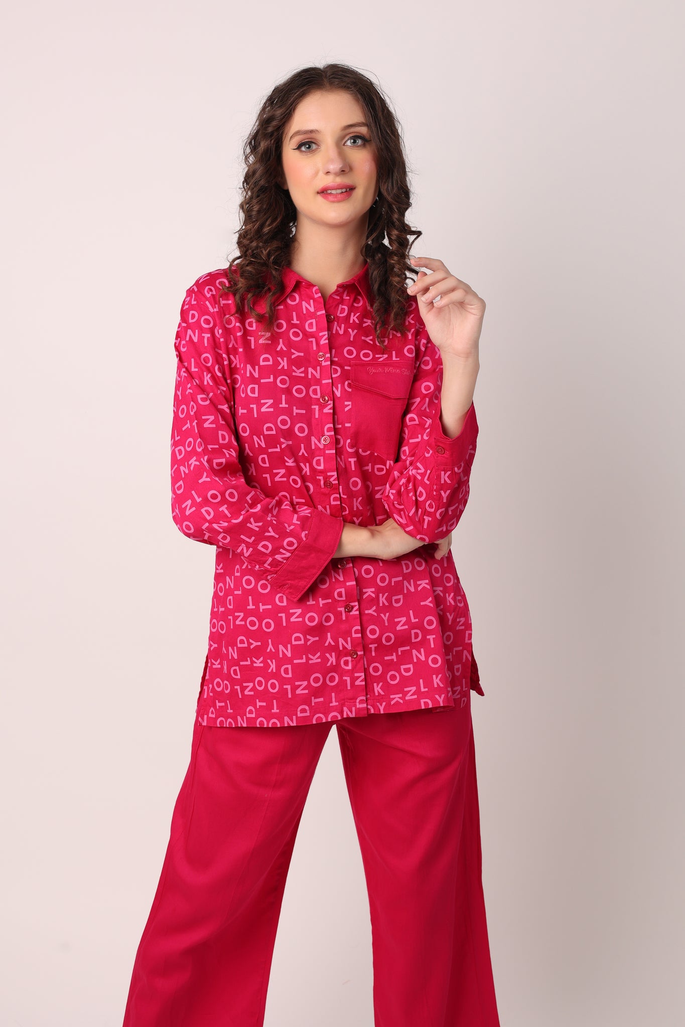 A TRUE COMFORT FIT, THIS PURE COTTON COORD SET IS BOTH BREATHABLE AND CHIC! FEATURING OLD SCHOOL PRINT PATTERN MAKES IT LOOK EVEN MORE DISTINCTIVE! THIS COLOUR IS SURELY FLATTERING TO ALL SKIN TONES.