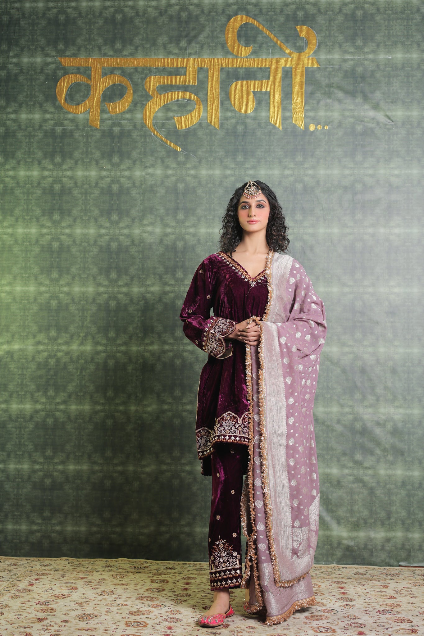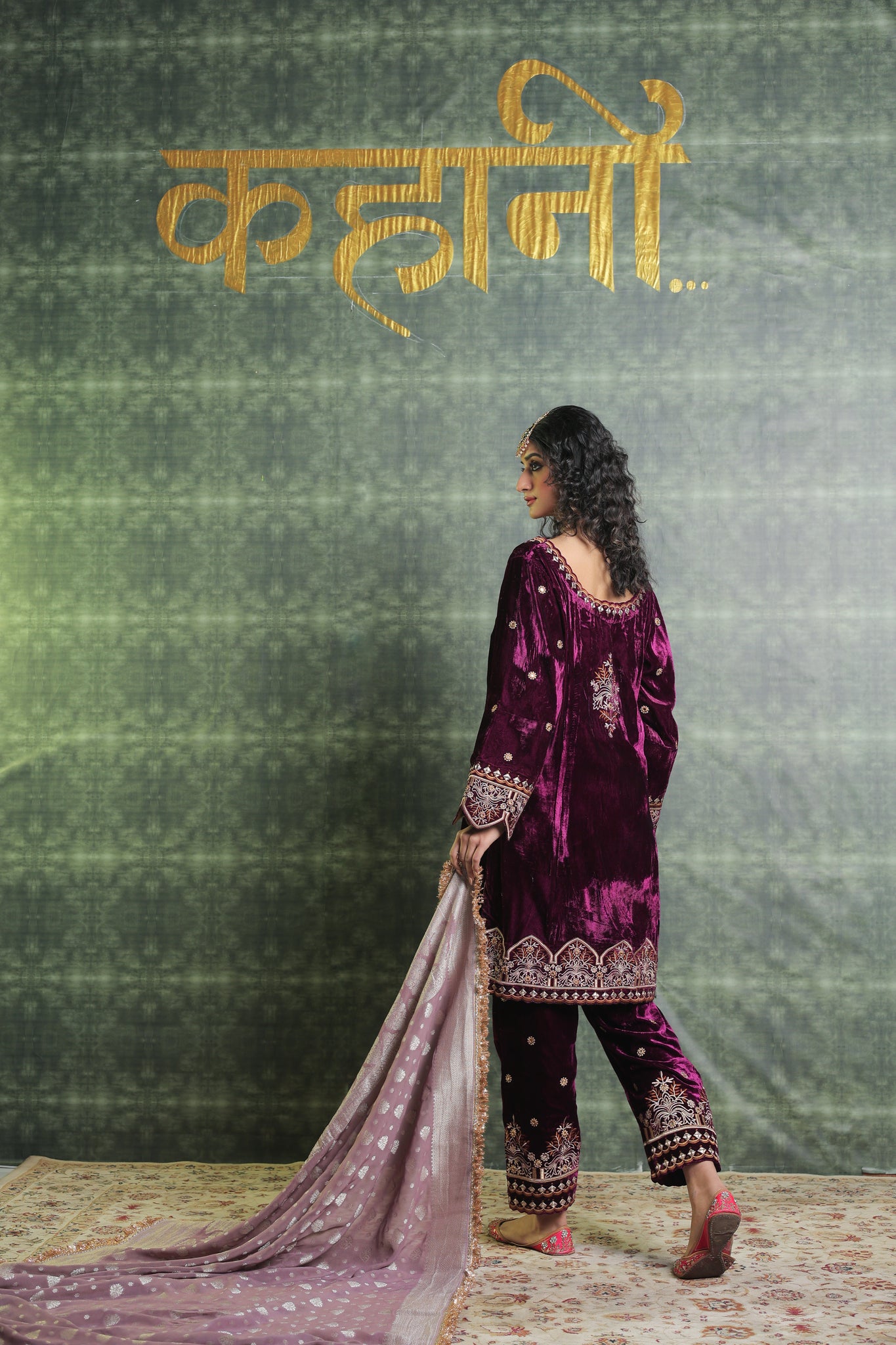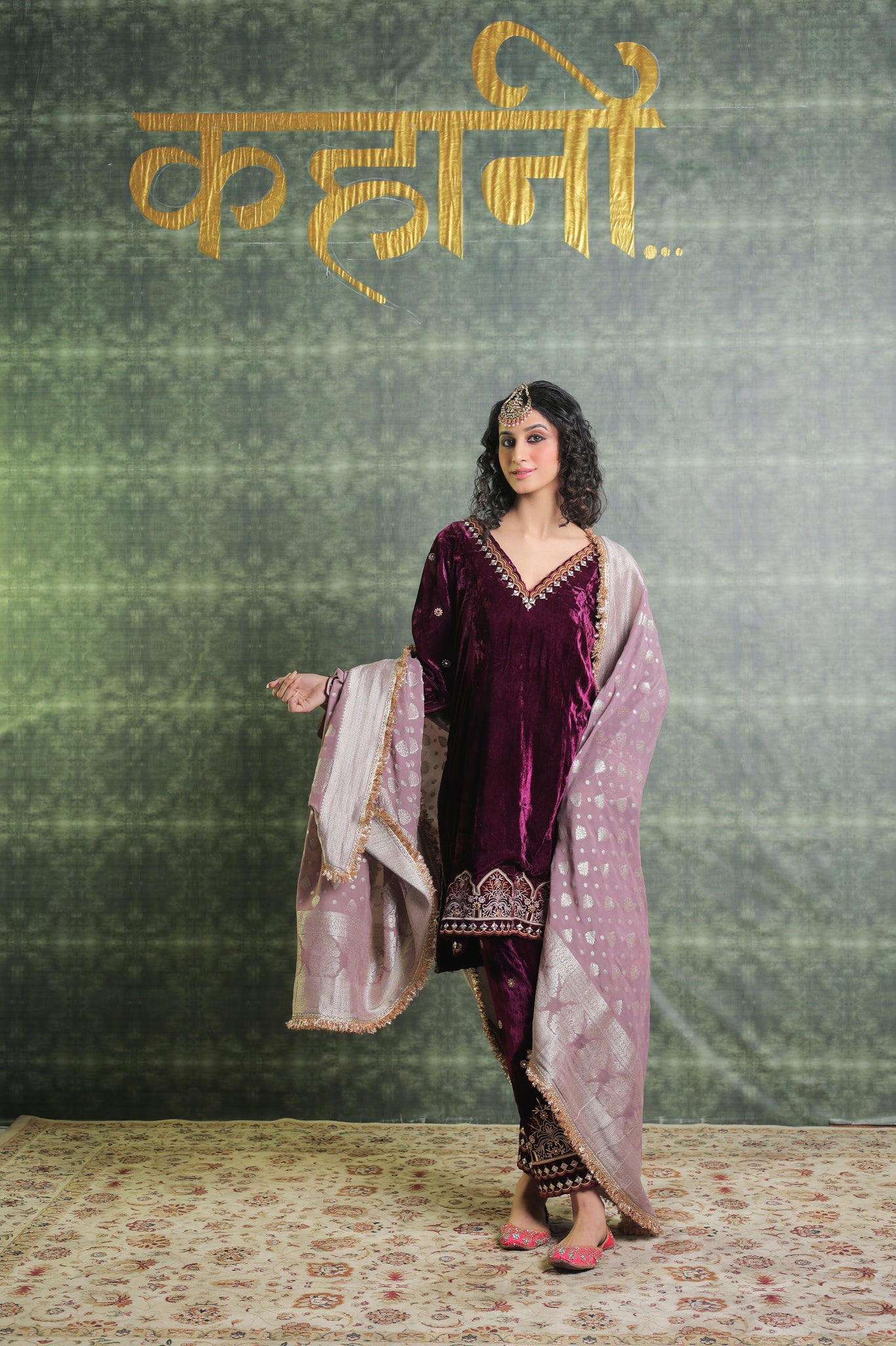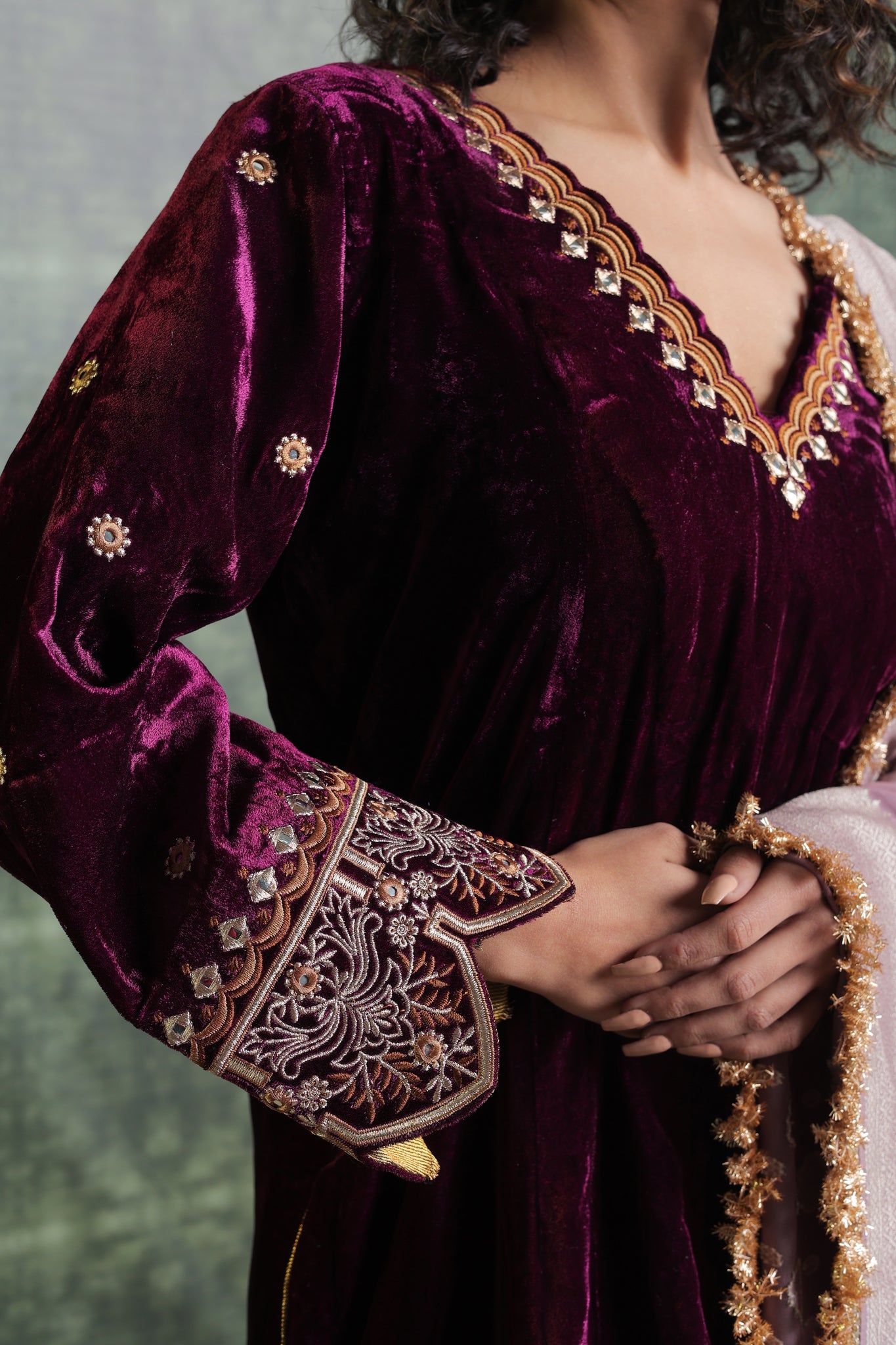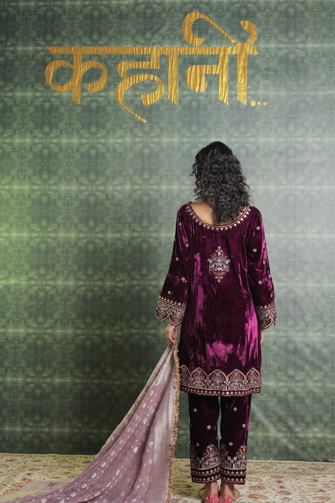 Exquisitely festive, this pure velvet suit includes a Kurta with a gorgeously detailed V neck. Beautiful embroidery on the ankle-length salwar lends even more refinement to the overall ensemble. Gorgeous Lace detailing adorns the Dupatta. You can Customise the Kurta and Salwar Length. Our team will assist you for the same. Outfits have 2-3 inches of extra margin.