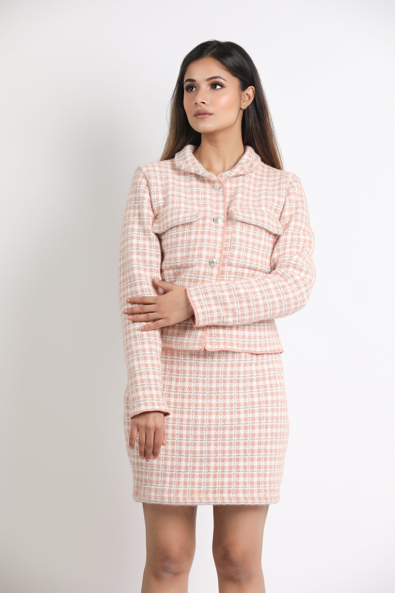This Checked pencil skirt when paired with a blazer looks super classy for formal evenings. Pair this blazer with white top, pencil heels. Fabric: WOOLLEN JAIKAT MODEL SIZE & FIT The model height 5.4 ft is wearing...Read more