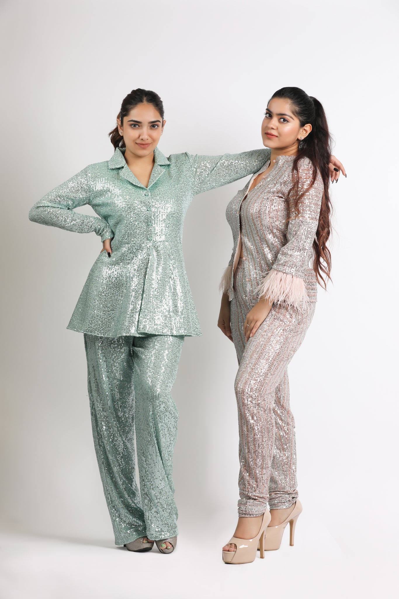 Change the fashion game with THIS mint sequin Pant suit this winter . it's time to ditch your boring clothes!