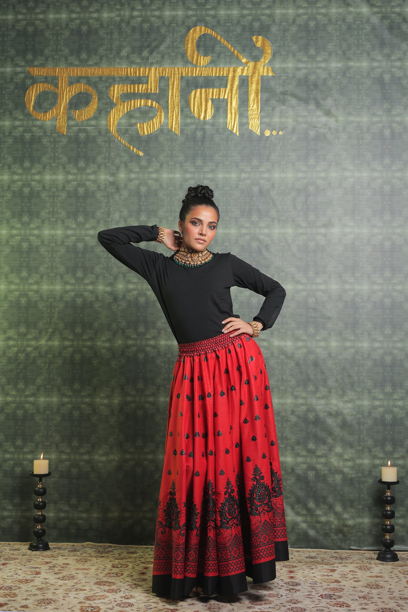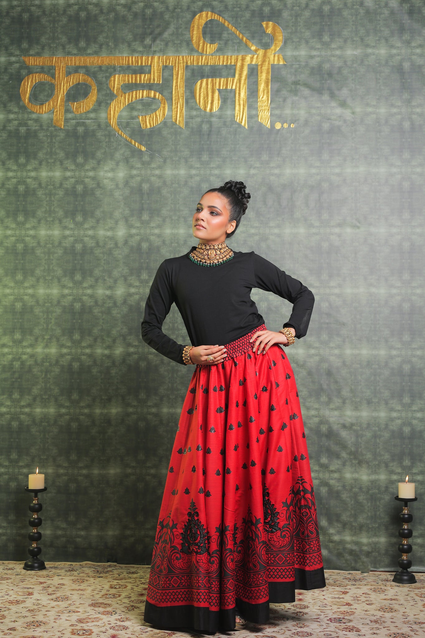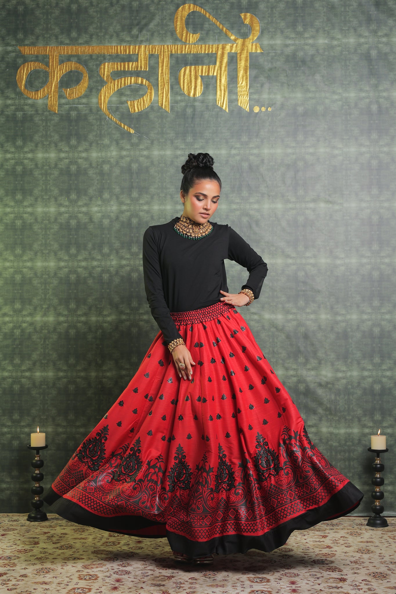 This exquisitely designed ethnic long skirt with pockets and an elastic waist belt exudes a festive feeling. Wear it with traditional jewellery to achieve an Indo-Western look. In terms of fashion, traditional long skirts are making its comeback! We can even Customise the Skirt length for you ..