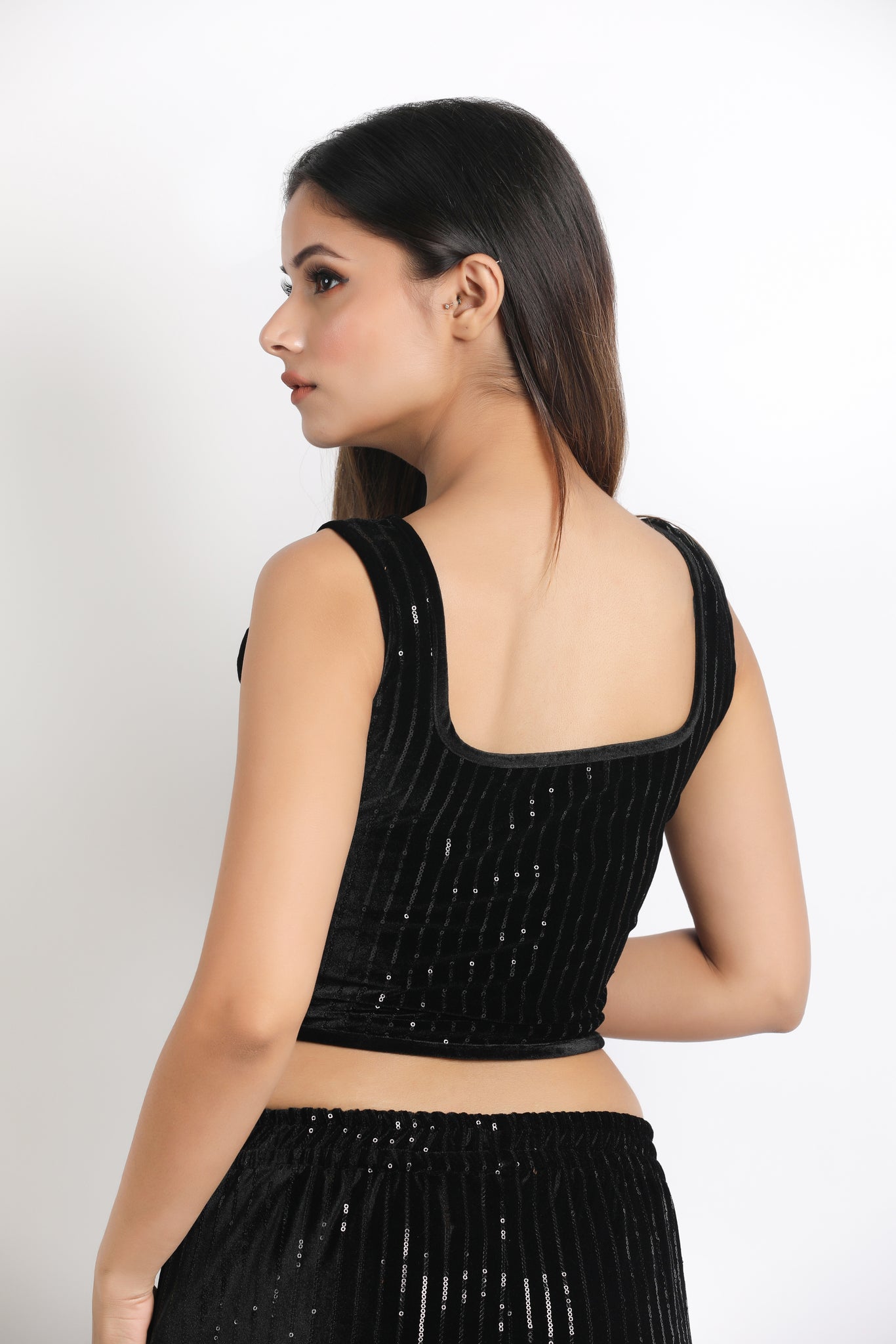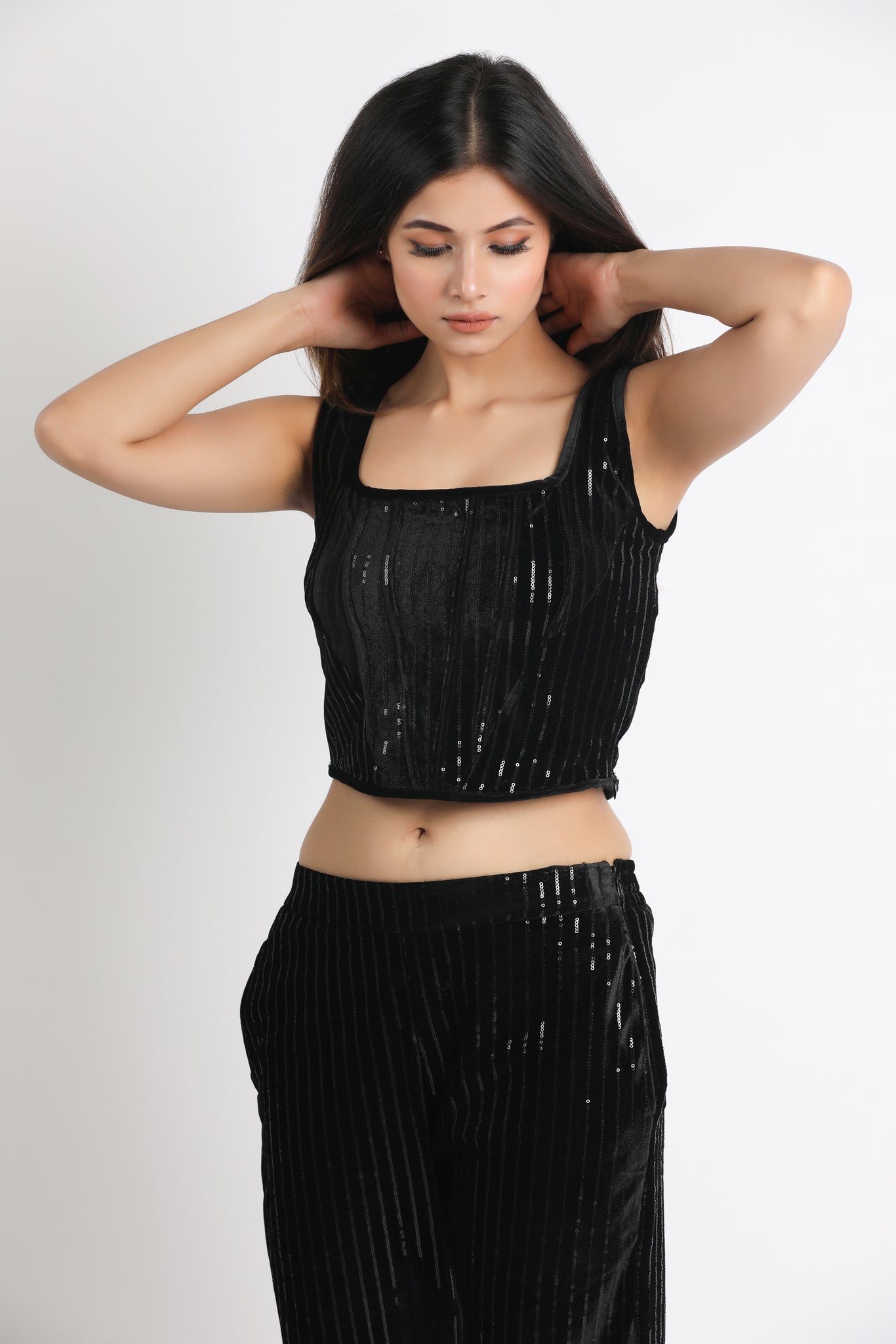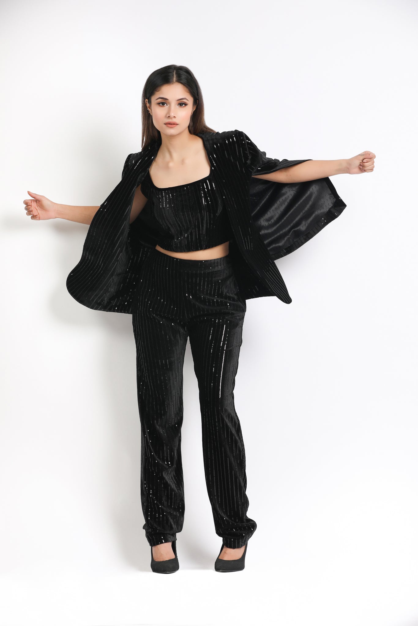 This sequin black Velvet Pant suit is beautifully tailored which is a perfect outfit for Parties, evenings and Dates. It's time to rock Sequin to any Damm party!