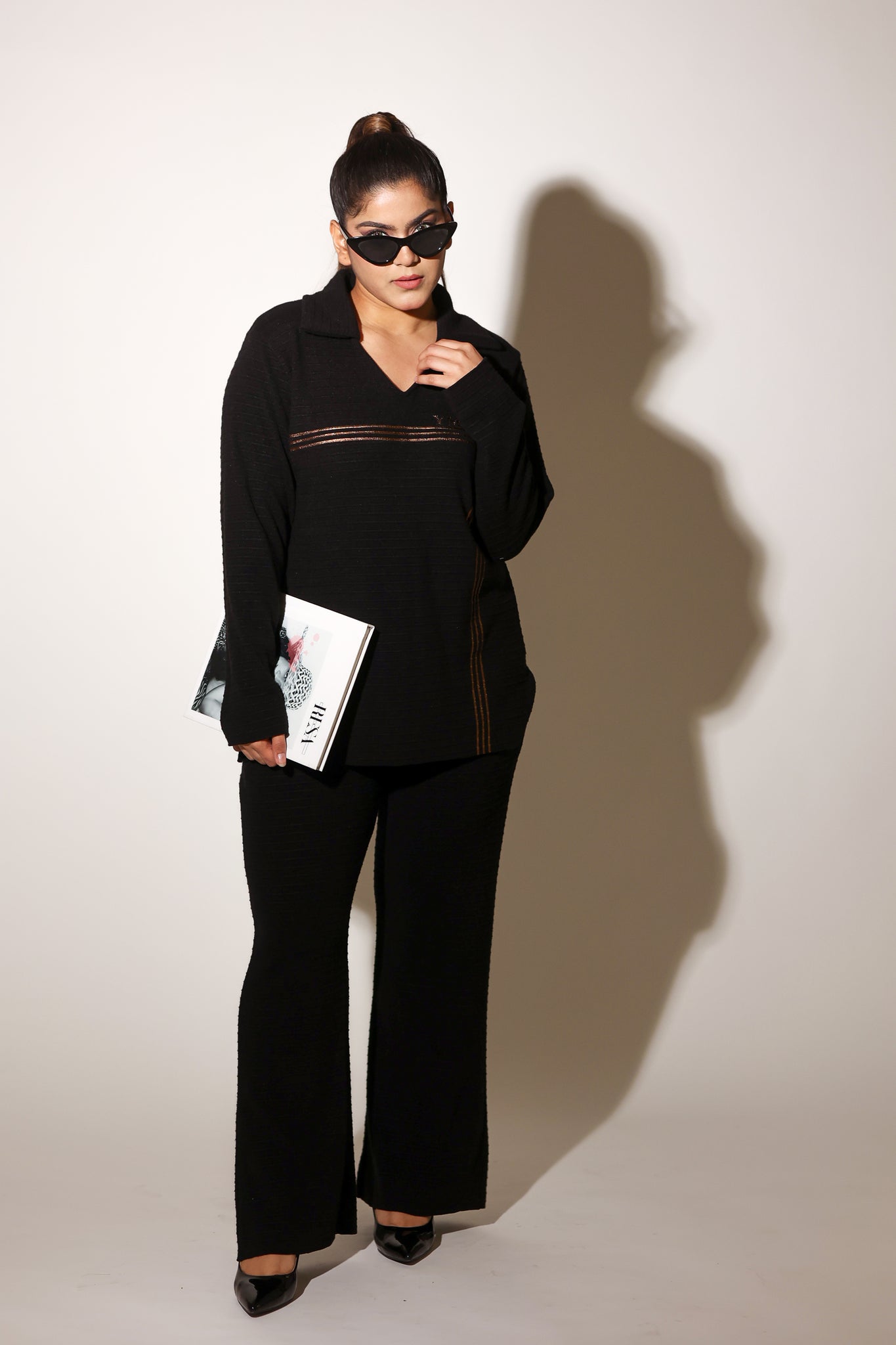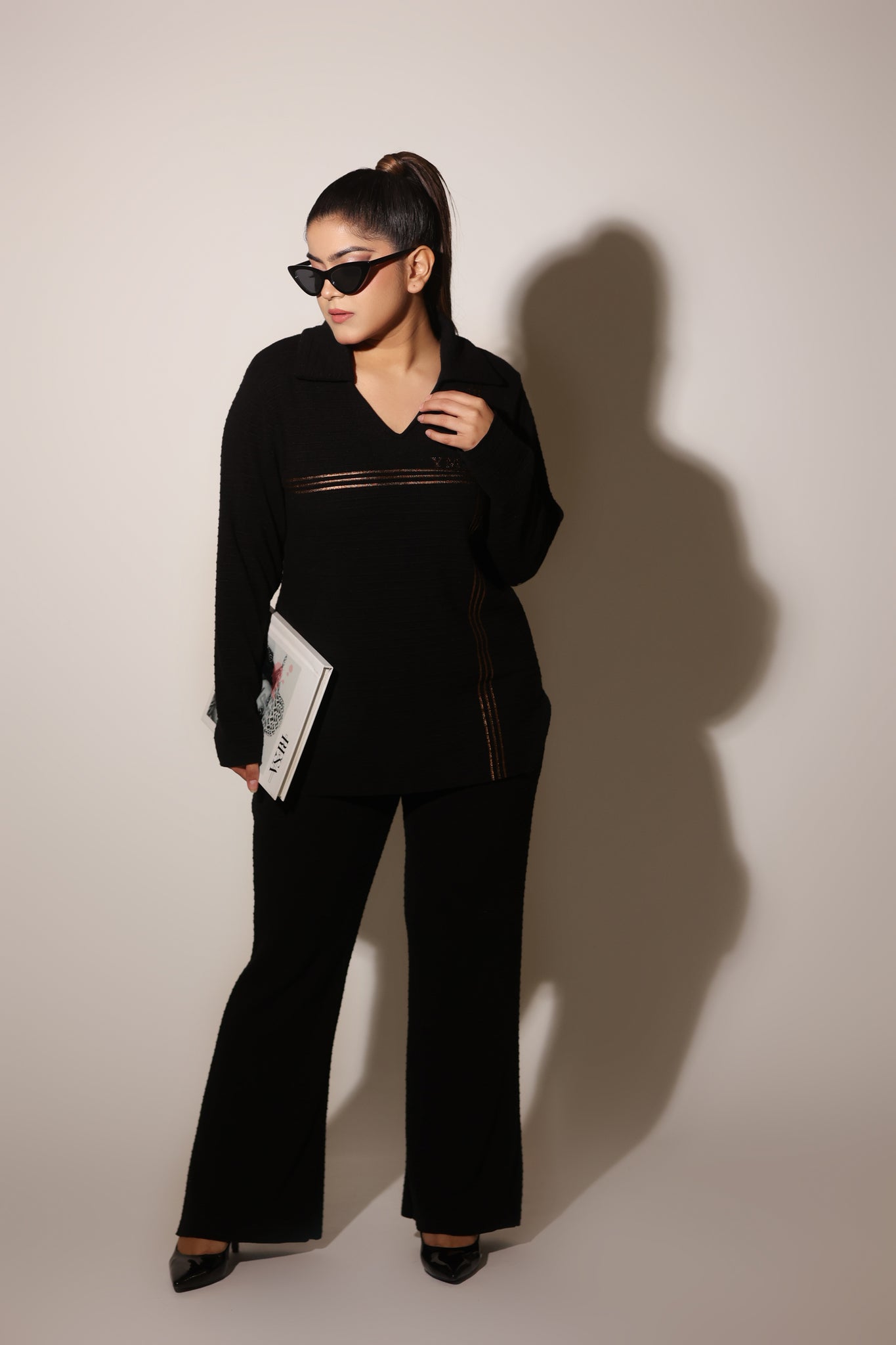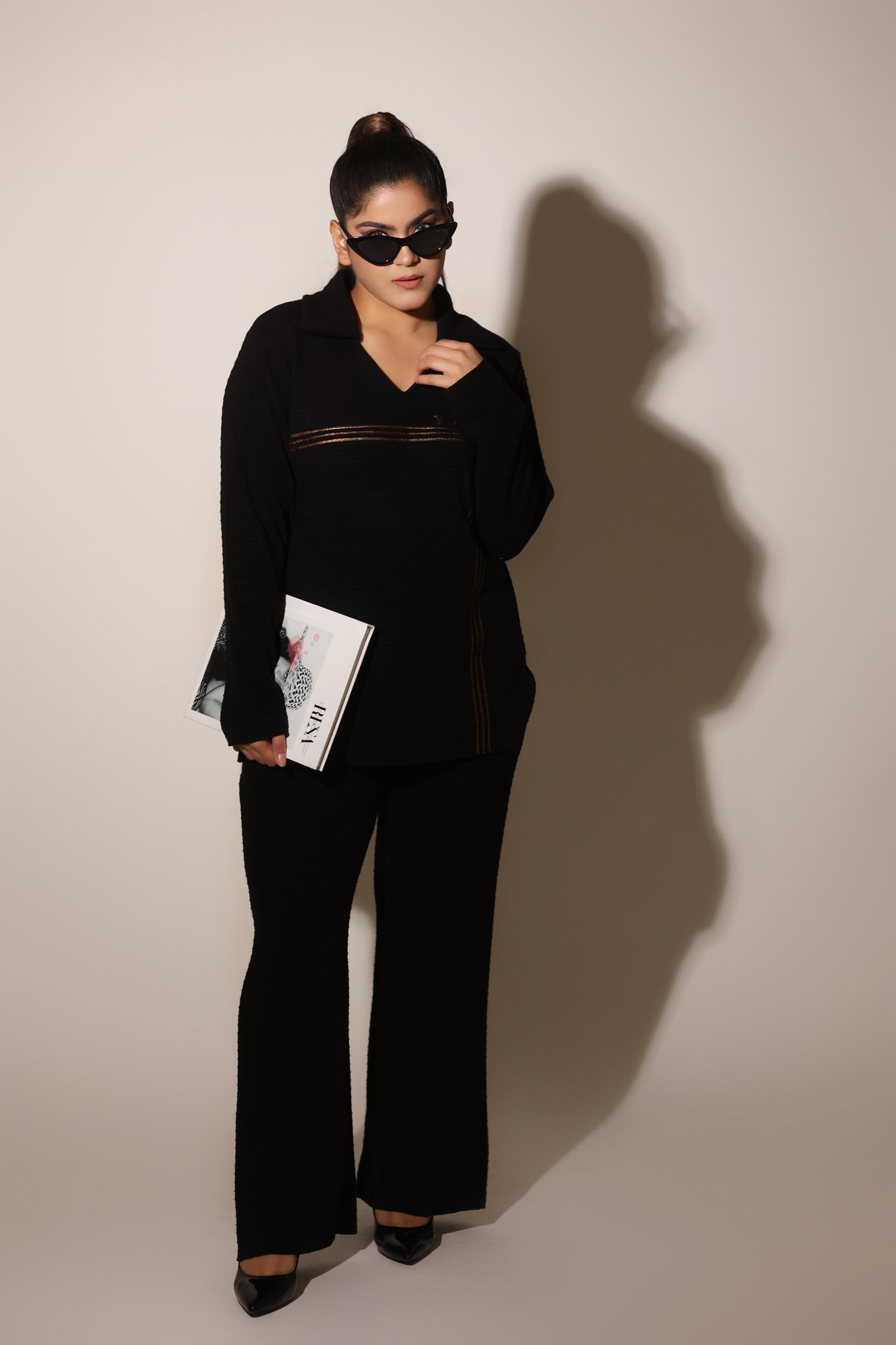 This Black Coord Set printed with YMS print detailing is a Versatile outfit to rock any Evening ! Super Comfortable Yet Elegant, There is no easier way to get dressed than coords this season.