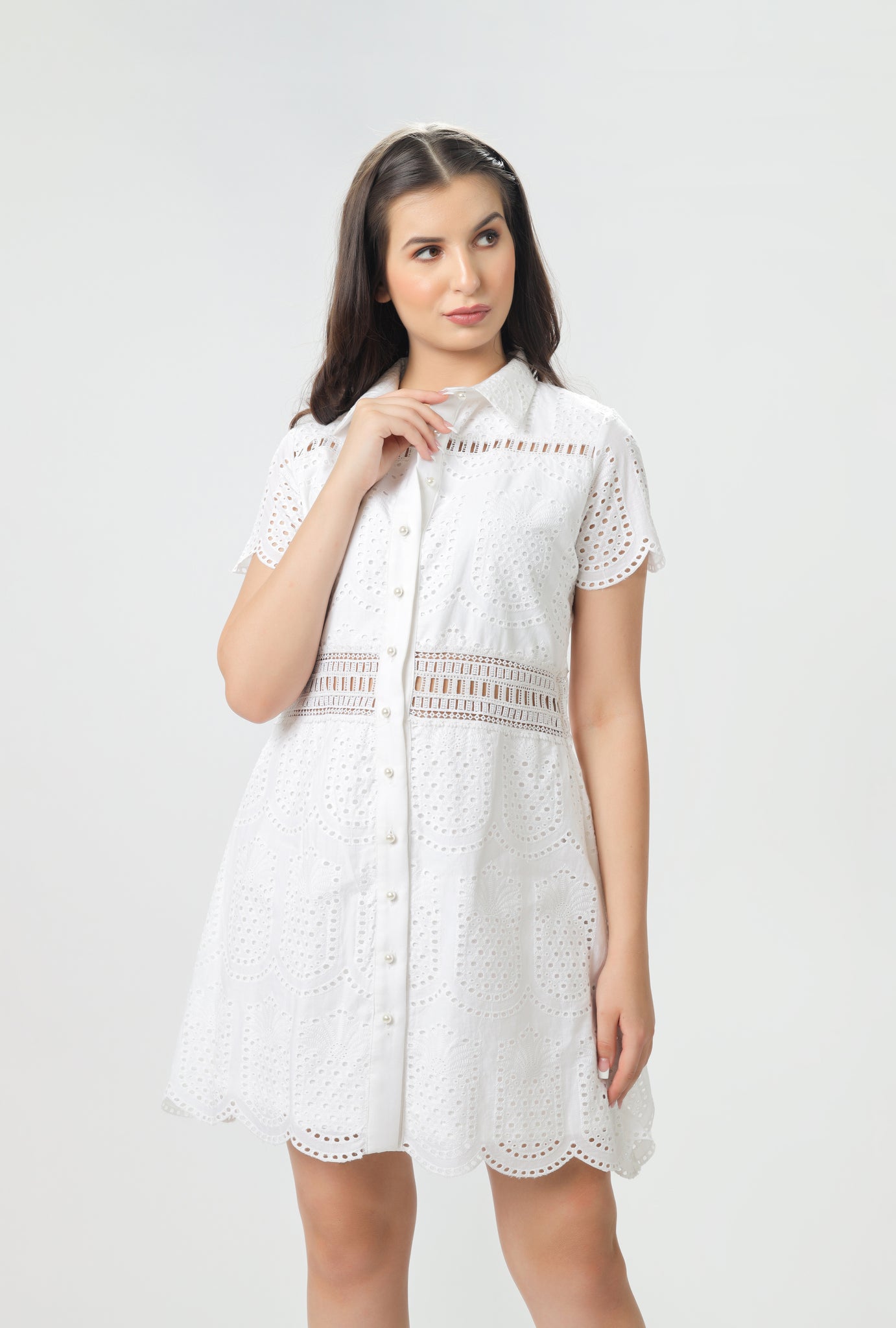 This cotton dress having regular sleeves and buttoned-down detailing looks totally Elegant.! The Lace detailing adds further grace to this outfit.