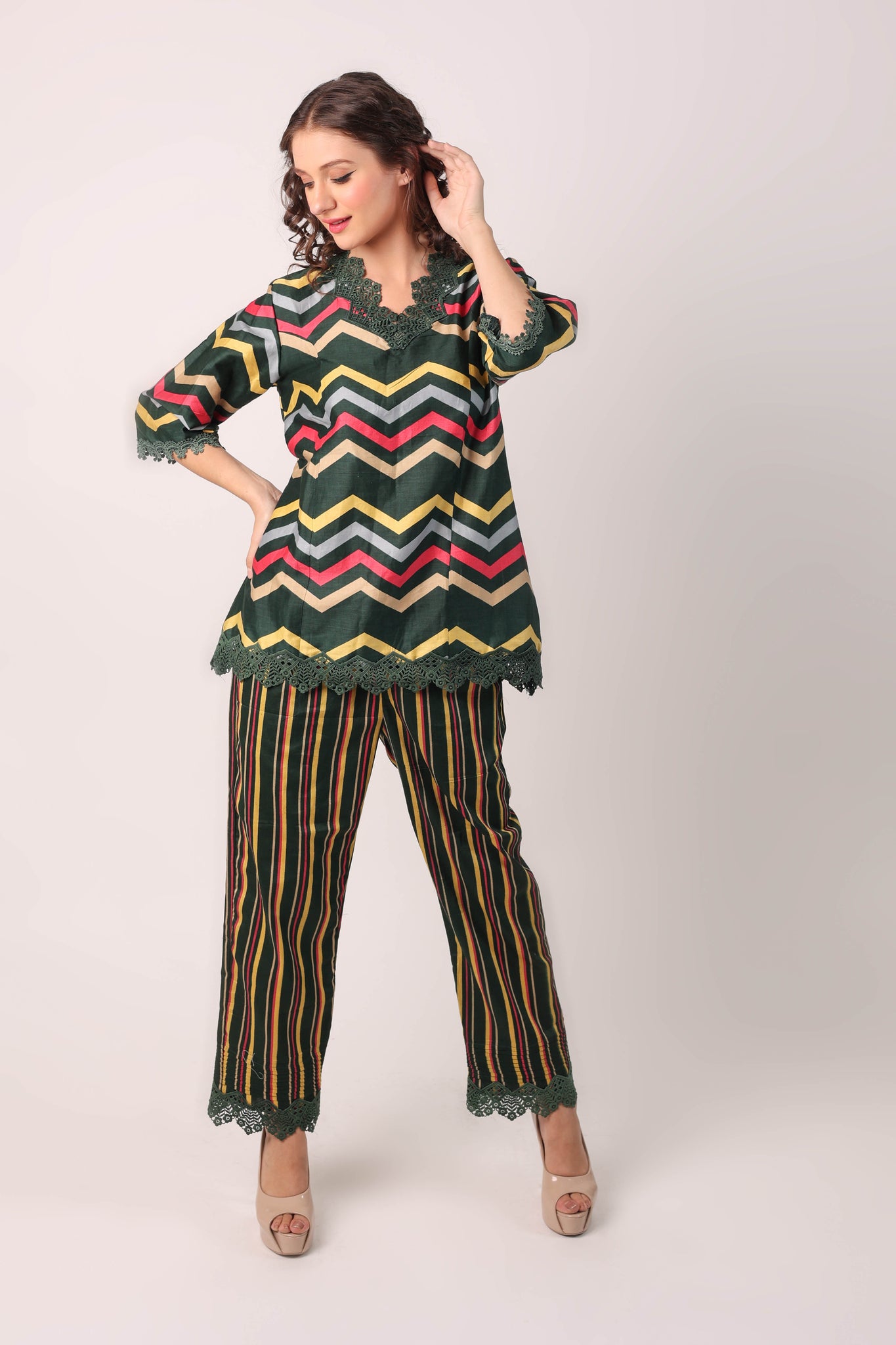 THIS COTTON COORD SET IS EXQUISITELY MADE AND DESIGNED WITH PRINT AND LACE ACCENTS. IT IS INCREDIBLY COMFY TO WEAR YOUR HOT SUMMER IN THE MOST FASHIONABLE WAY! Fabric: COTTON MODEL SIZE & FITThe model (height 5.9ft) is...Read more