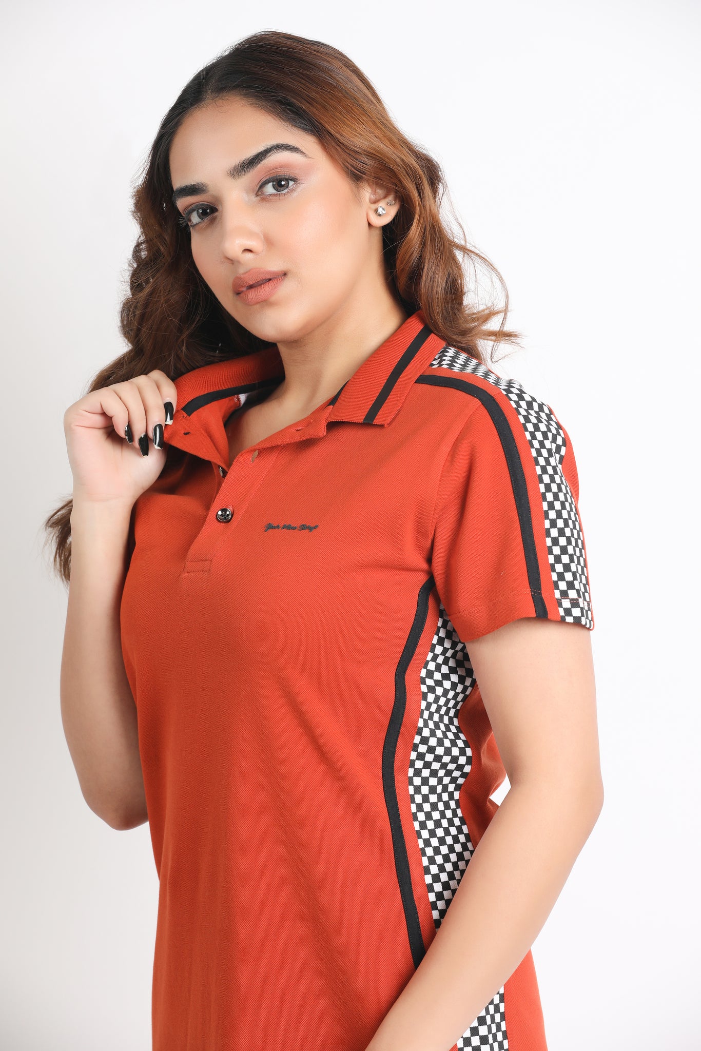 Look fabulous in this Orange Polo T-shirt Dress with Check detailing on the sides. A Fun yet cool outfit for your girls Day out. Fabric: MONO PIQUE LYCRA MODEL SIZE & FIT The model height 5.2 ft is...Read more