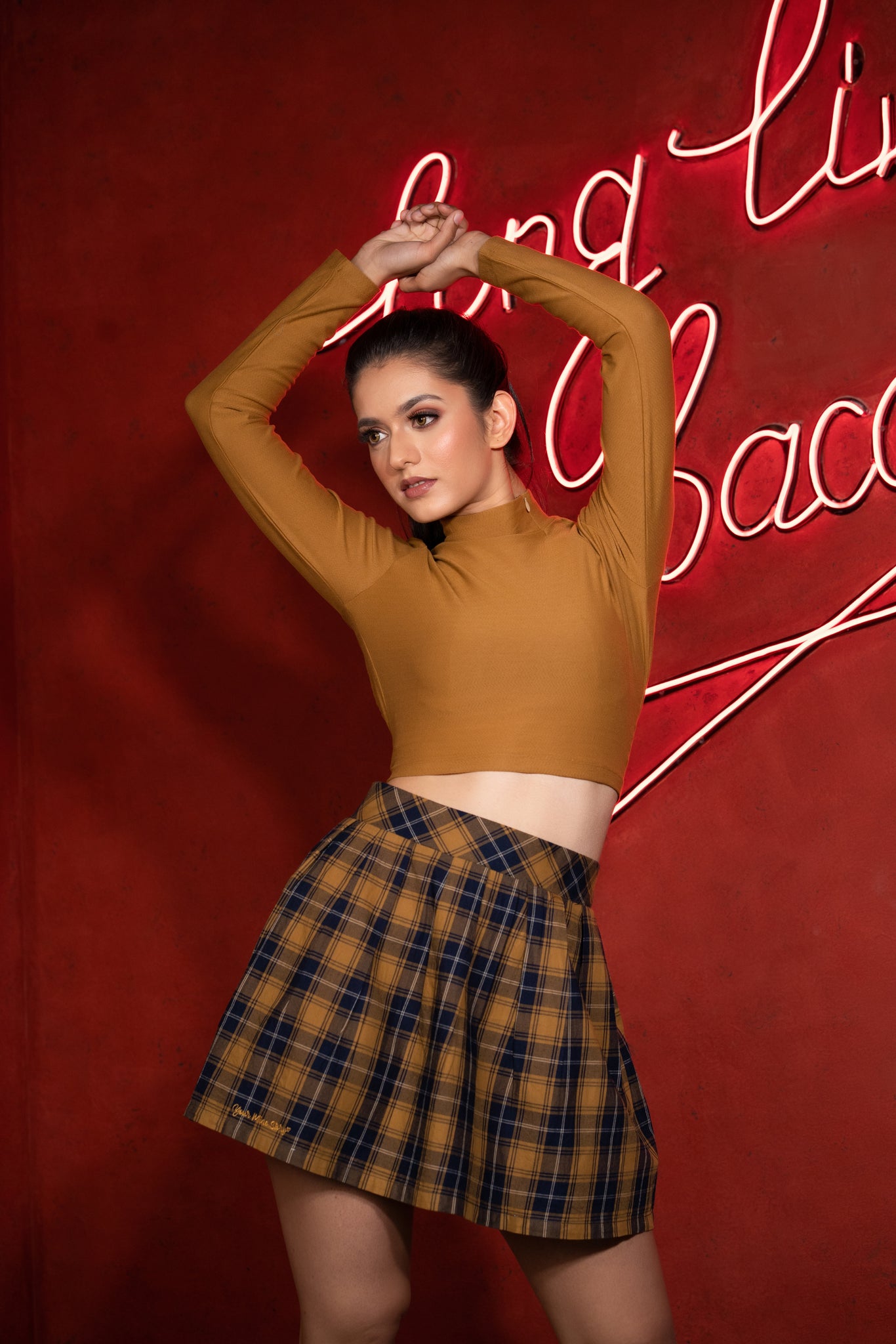 Lift up your style sense with this plaid mini skater skirt in check. It is crafted in premium quality cotton textile fabric which ensures a comfortable yet stylish fit. Pair it with basic tees and tops to complete your look.