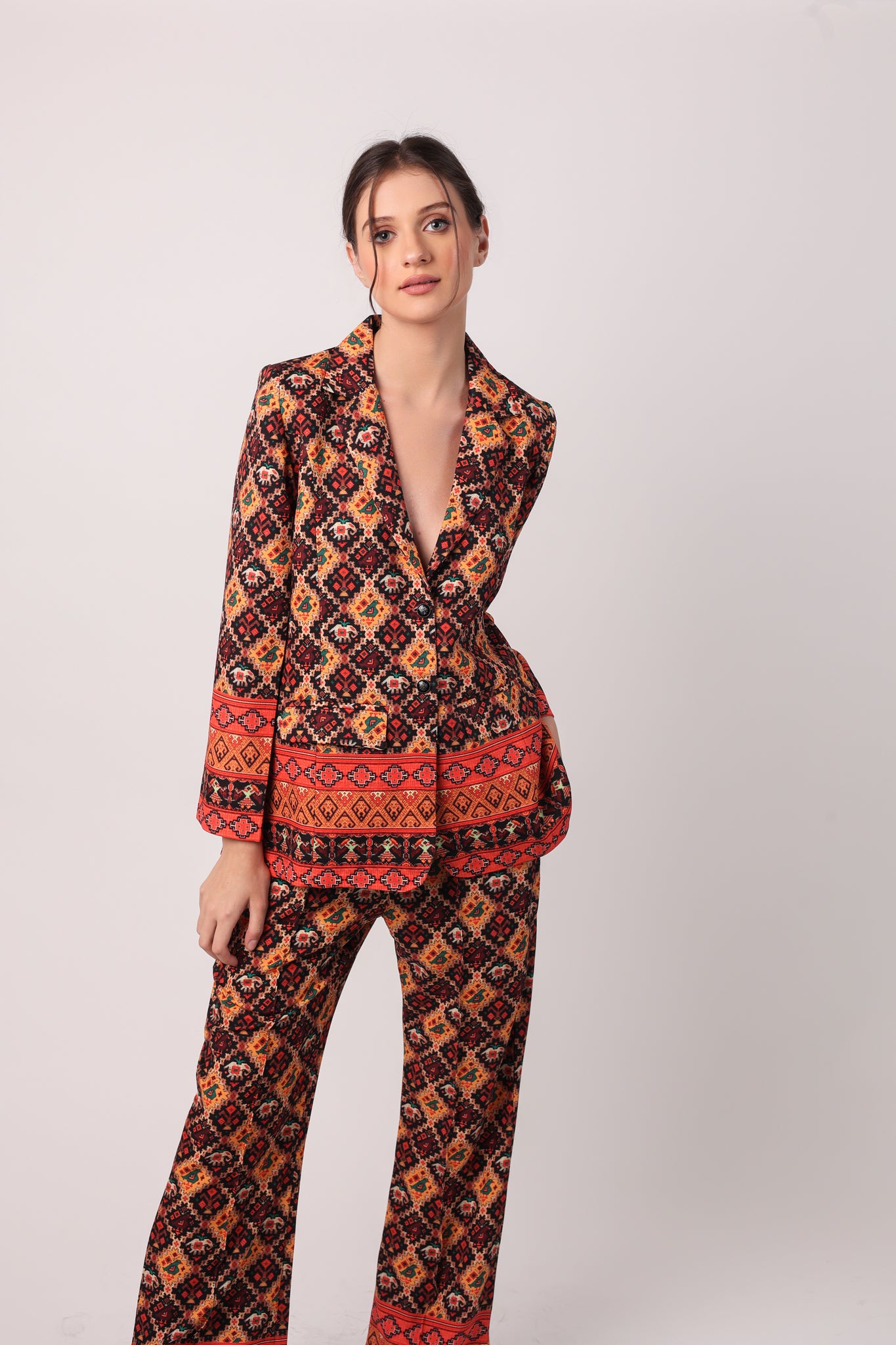 WITH THIS SHARP, SOPHISTICATED, AND EDGY OUTFIT, YOU'LL FEEL INVINCIBLE. THIS SUMMER BLAZER IS UNIQUELY DESIGNED AND EXQUISITELY TAILORED WITH PRINT DETAILING. IDEAL FOR SLAYING YOUR FORMAL EVENINGS! Fabric: CREPE, PURE VISCOSE MODEL SIZE & FITThe model (height 5.9ft)...Read more