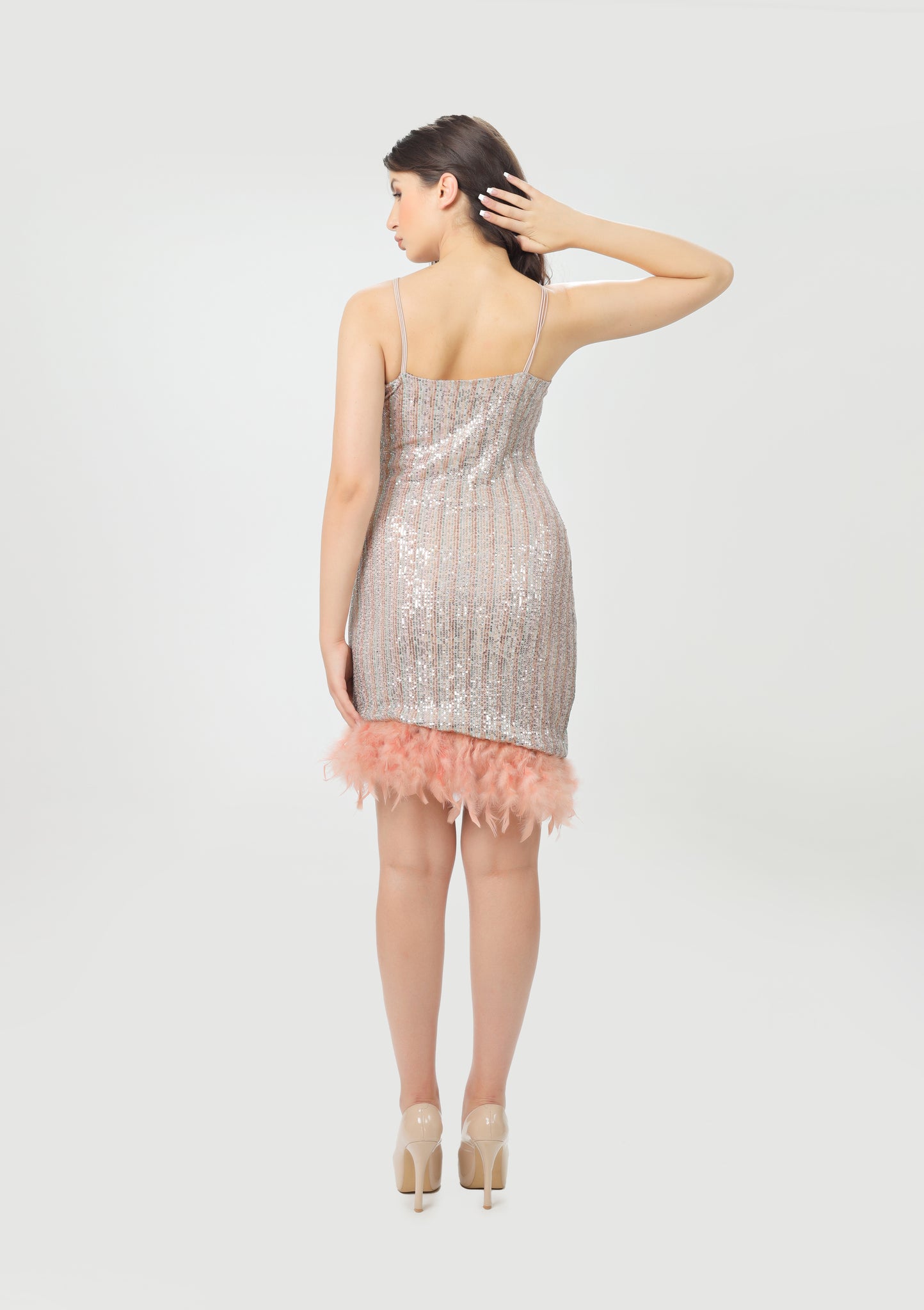 Look Gorgeous at your Bridal Shower in this Sequin dress featuring feathers Details and stunning neck design.