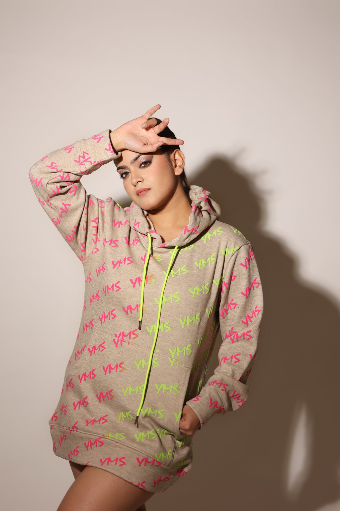 You'll stand out in this neon-printed hoodie! To rock your casual look, pair it with your favorite pair of jeans and sneakers. Fabric: FLEECE MODEL SIZE & FITOur Founder, Neha Sood (Height 5.3 ft) is wearing size M....Read more