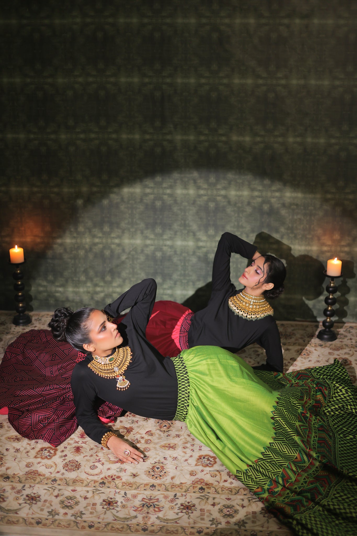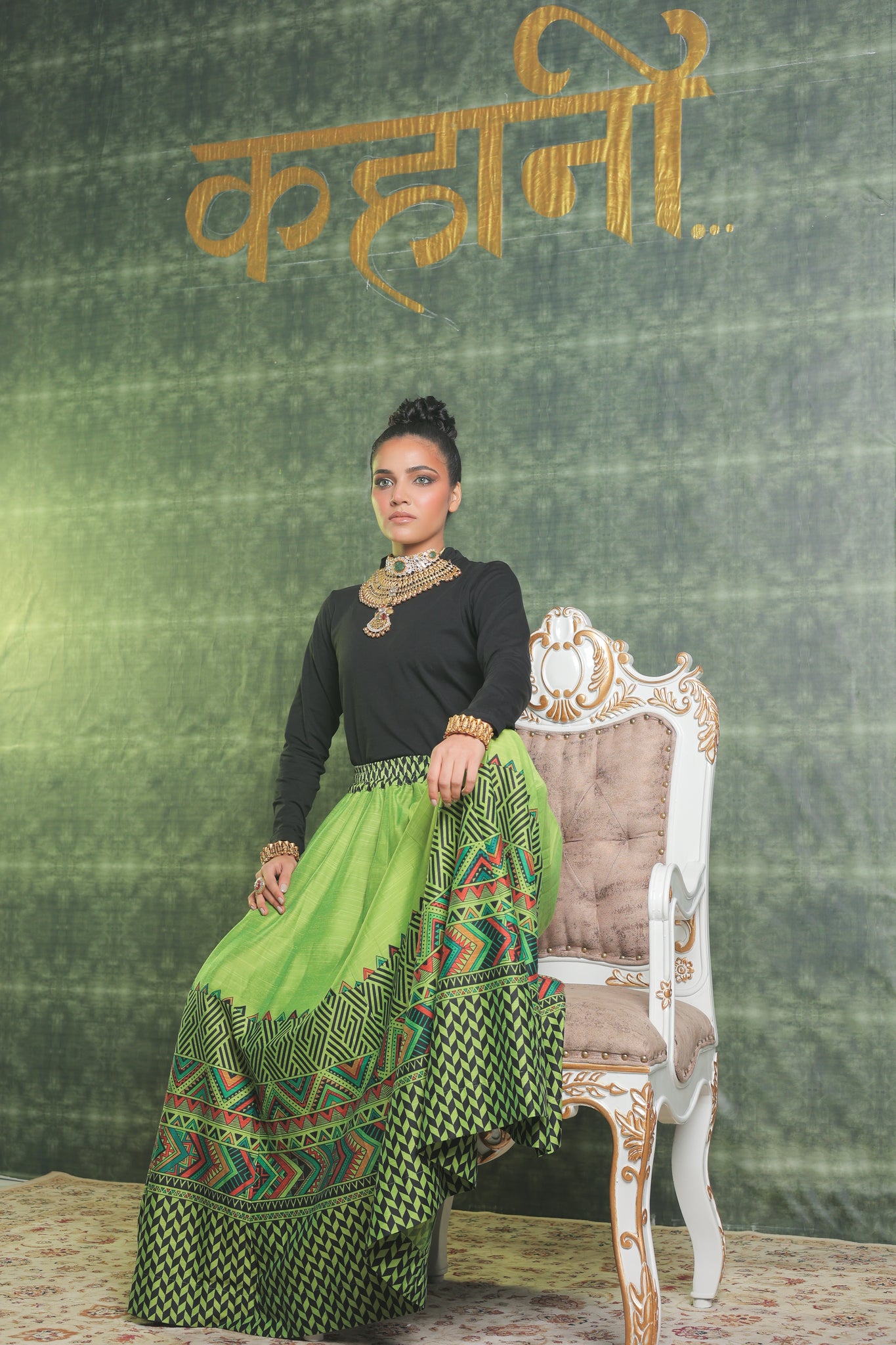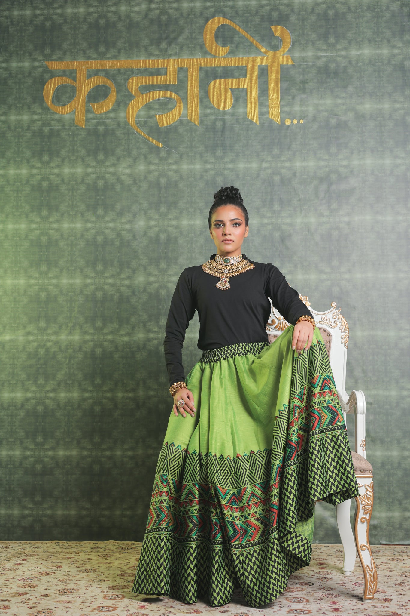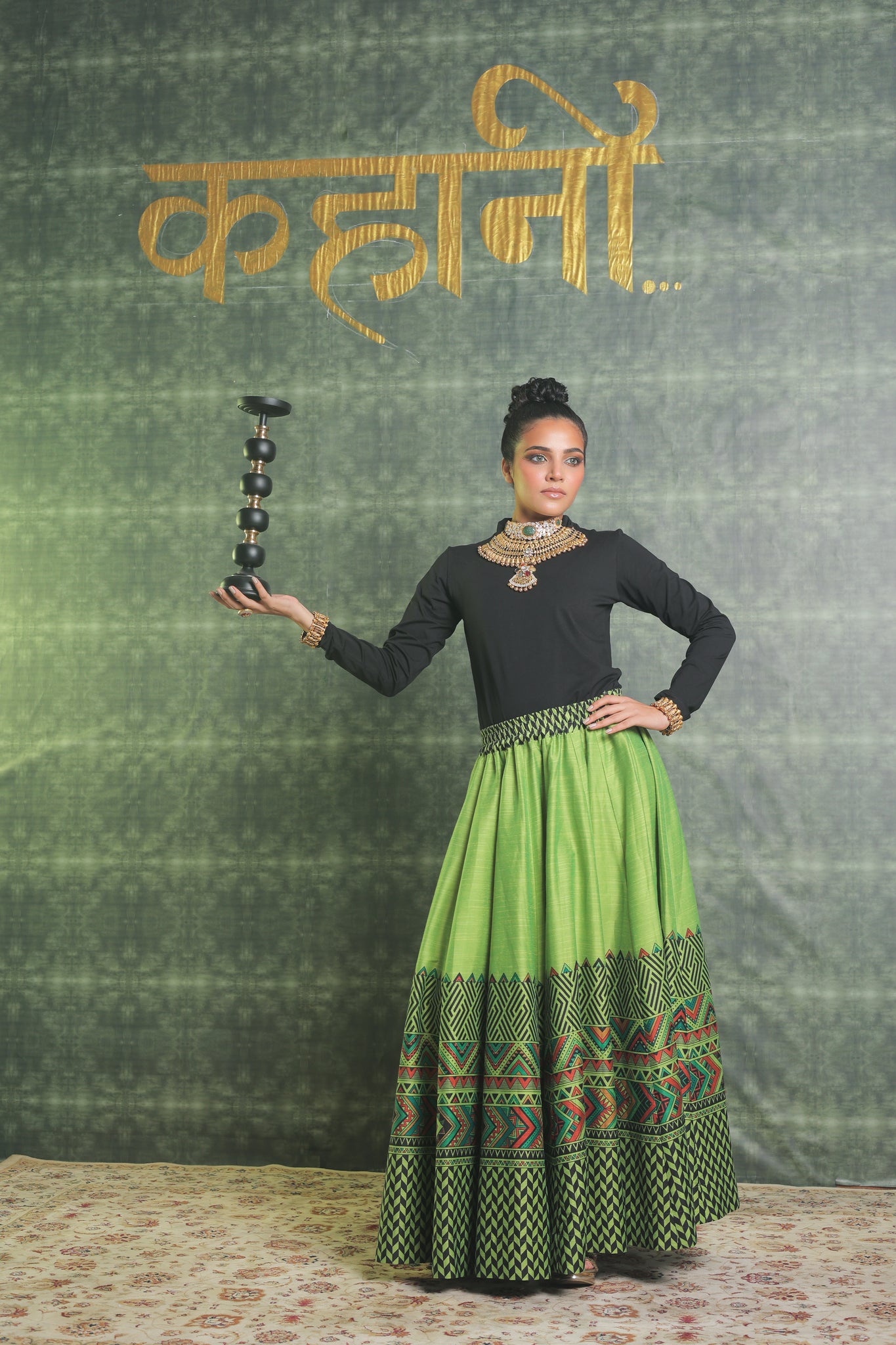 This exquisitely designed ethnic long skirt with pockets and an elastic waist belt exudes a festive feeling. Wear it with traditional jewellery to achieve an Indo-Western look. In terms of fashion, traditional long skirts are making its comeback! We can even Customise the Skirt length for you .
