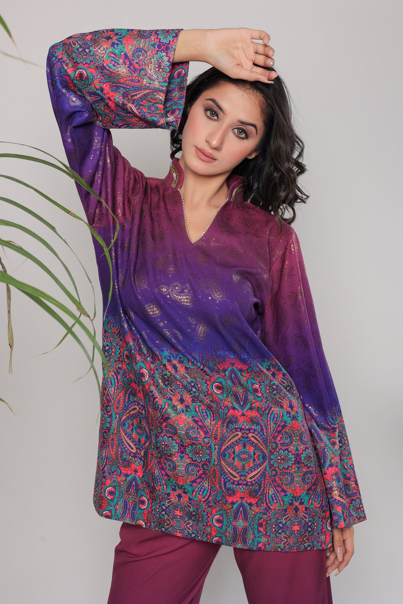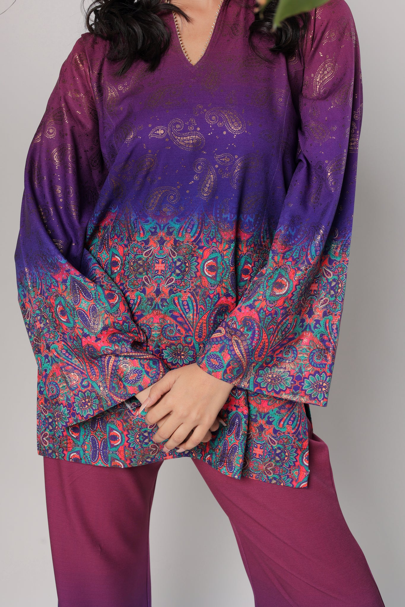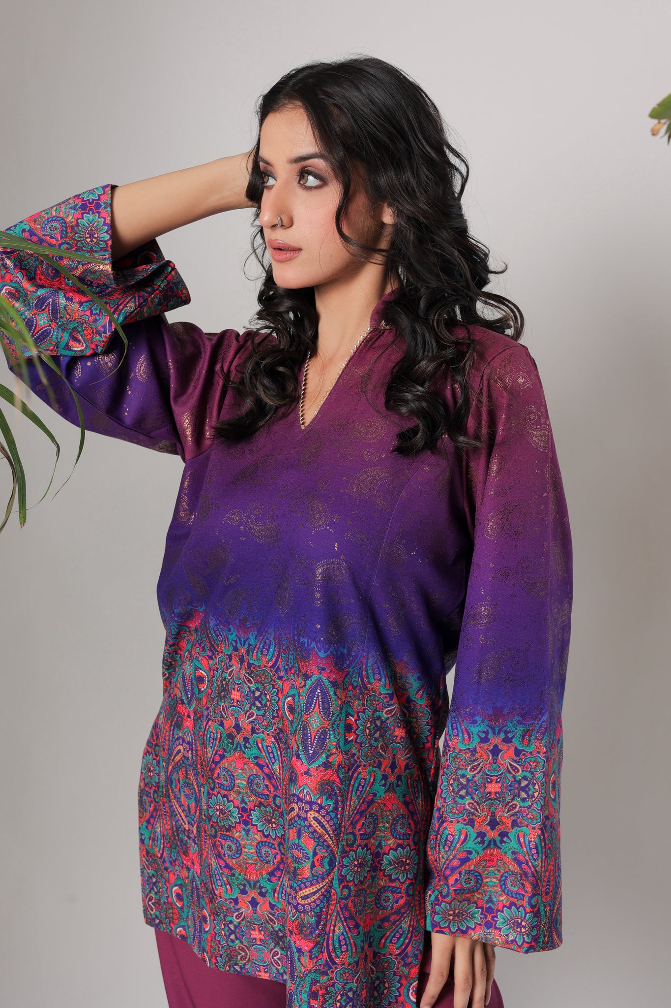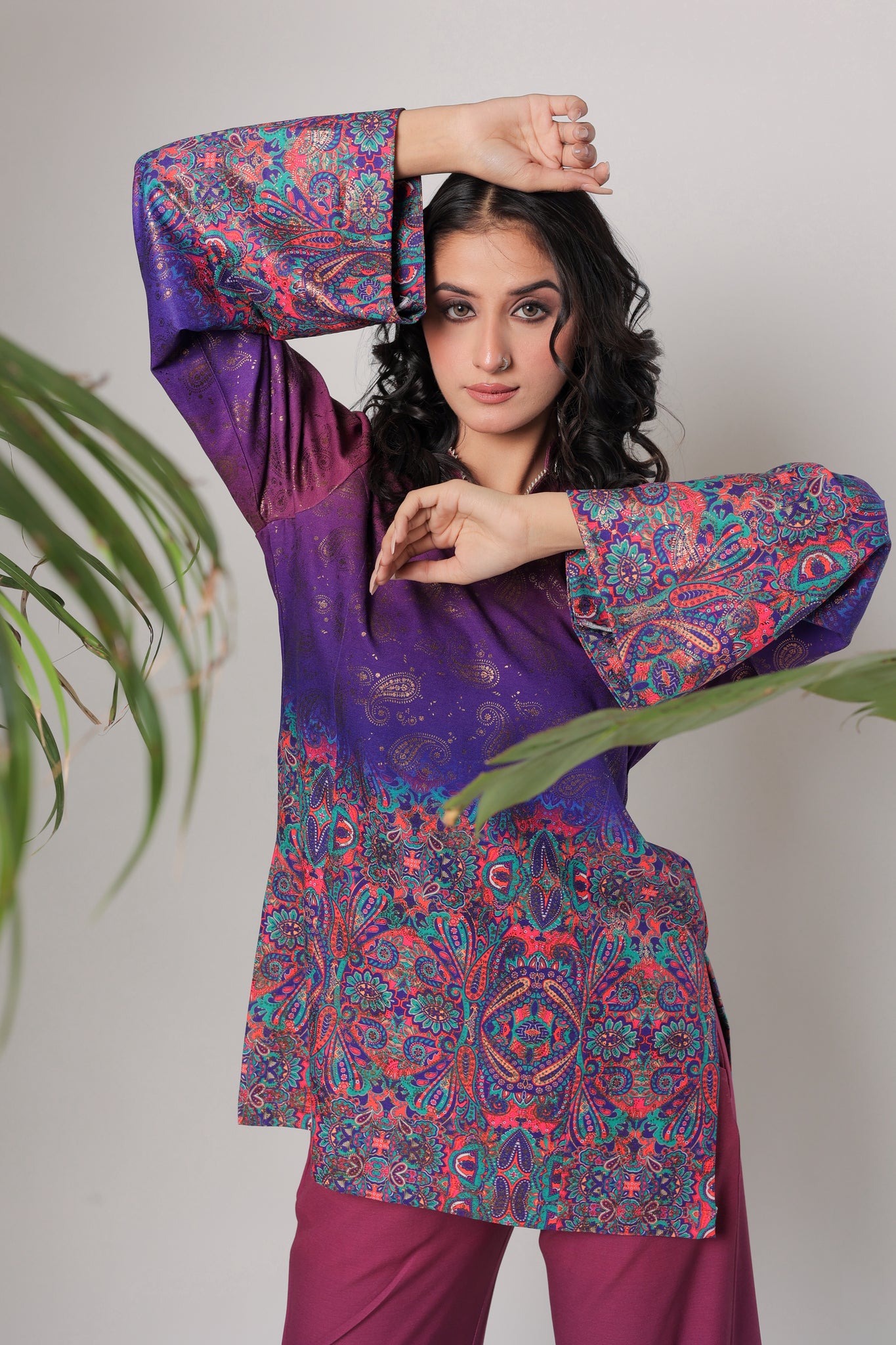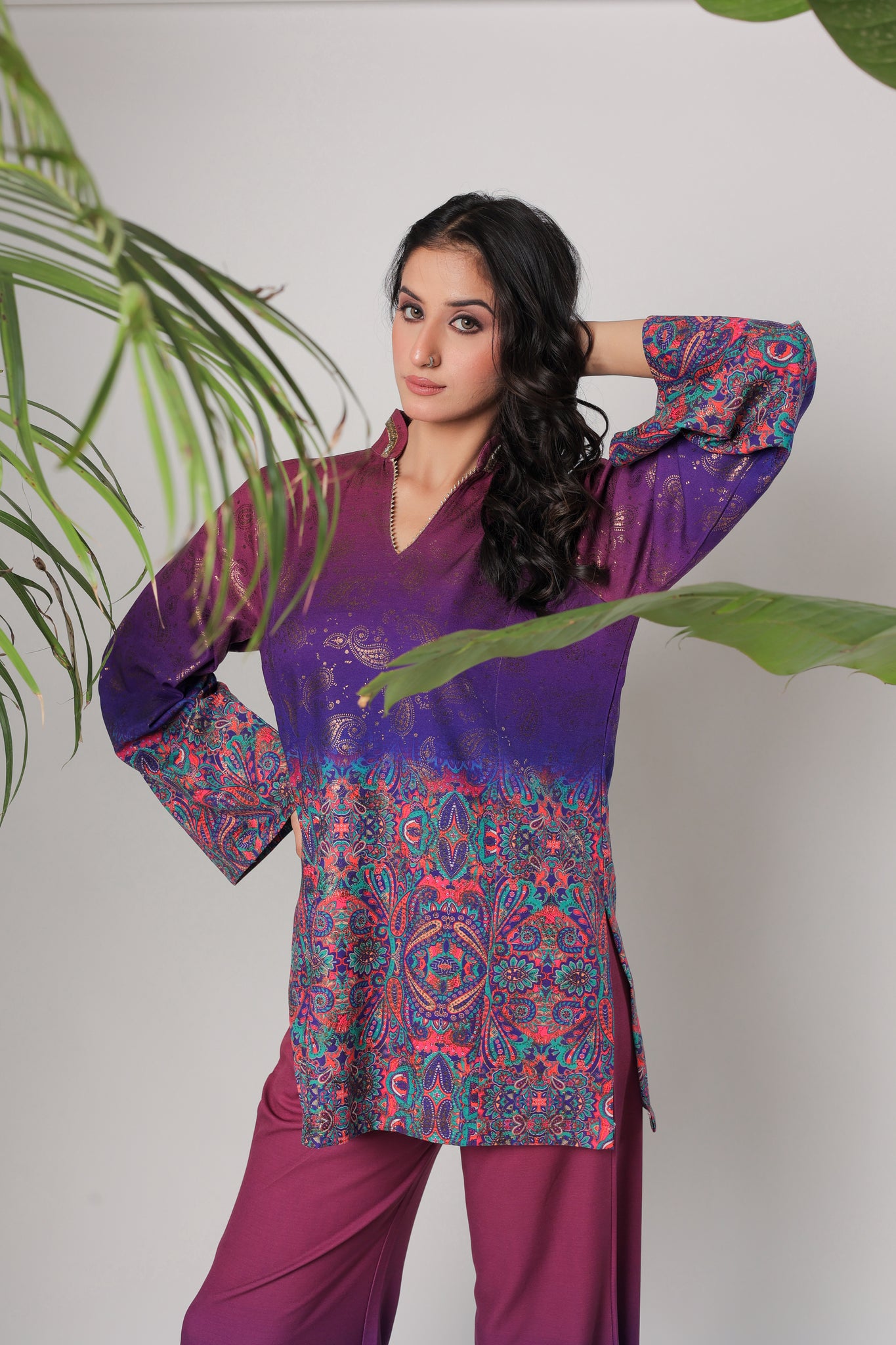 This Stunning Coord set featuring Unique Print and foil detailing will surely turn those heads. Embrace the occasion in this formal coord set from Your Mine Story. The overall aesthetic of this set is extremely beautiful. Featuring Foil Printed Kurta and Bell Bottom Pants , this formal coord set is a must have !