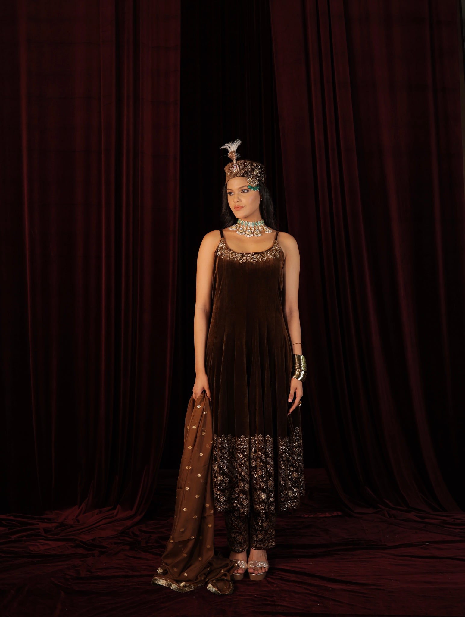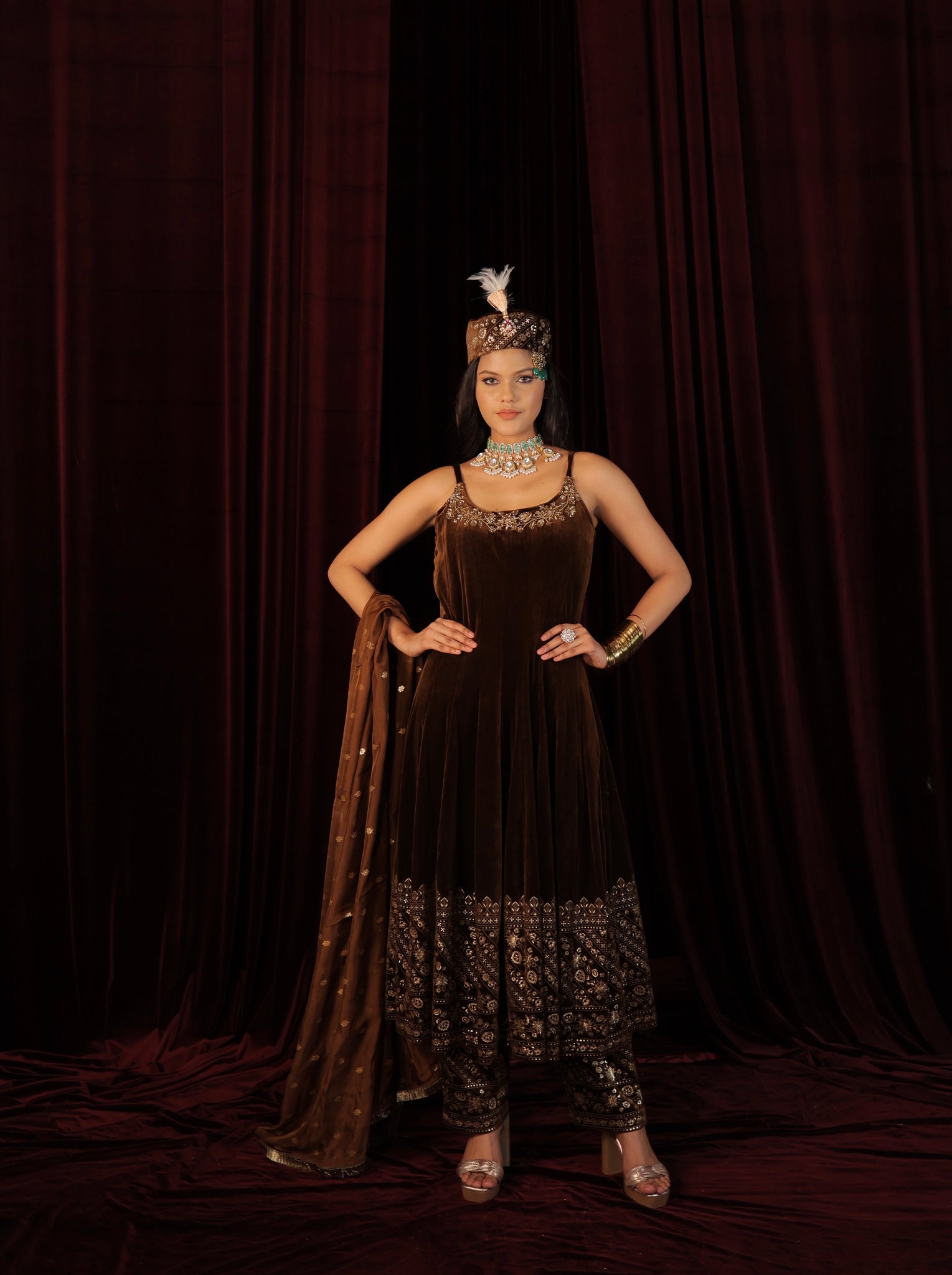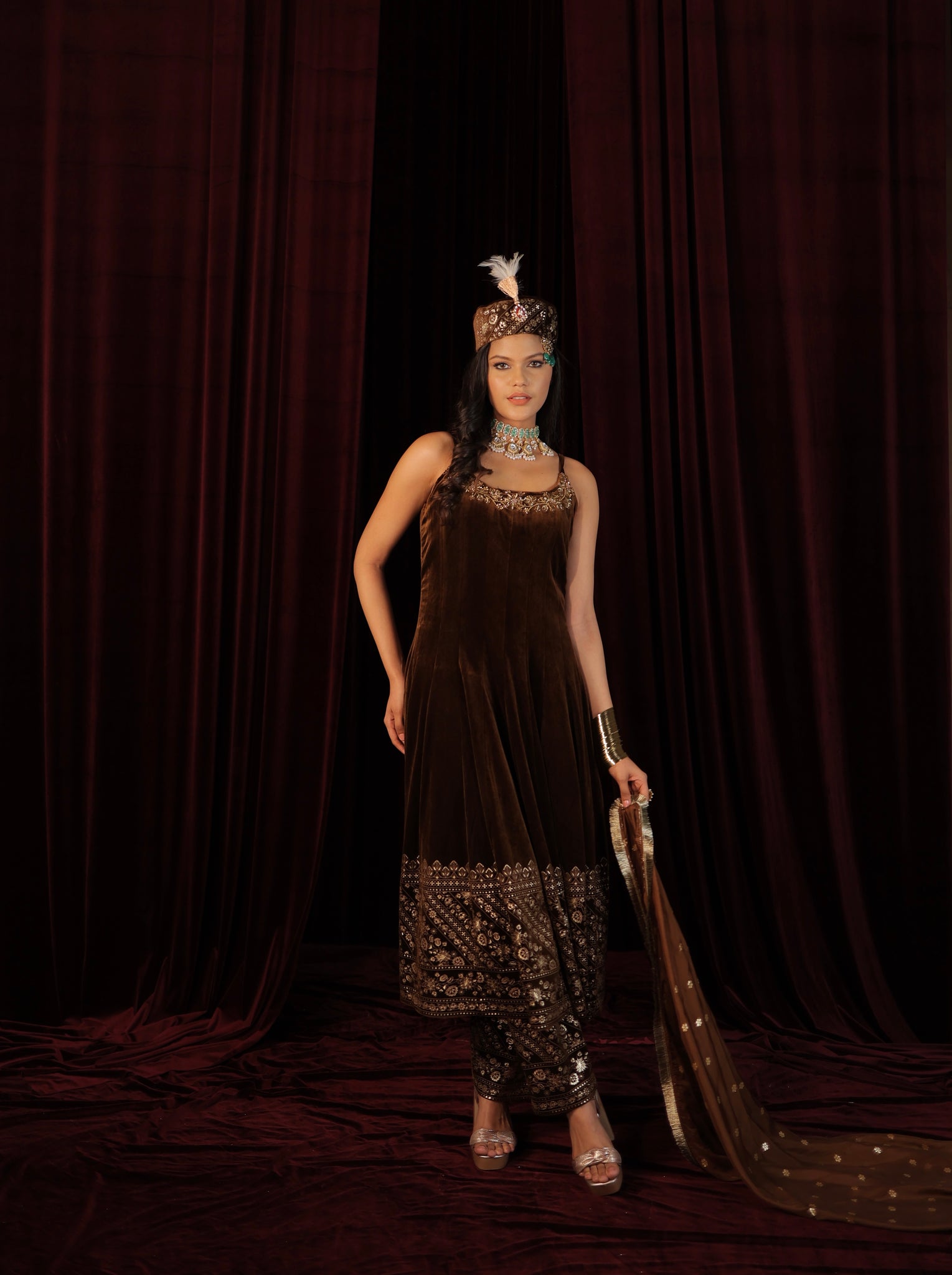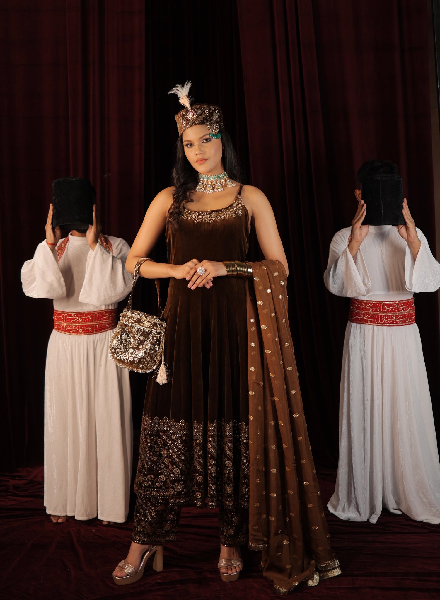 This Coffee Suit Set is an absolute showstopper — crafted to captivate at first glance. Adorned with exquisite hand-embroidered detailing and elegant prints, it radiates sophistication and charm. Perfect for weddings and grand celebrations, this timeless piece ensures you stand out effortlessly.