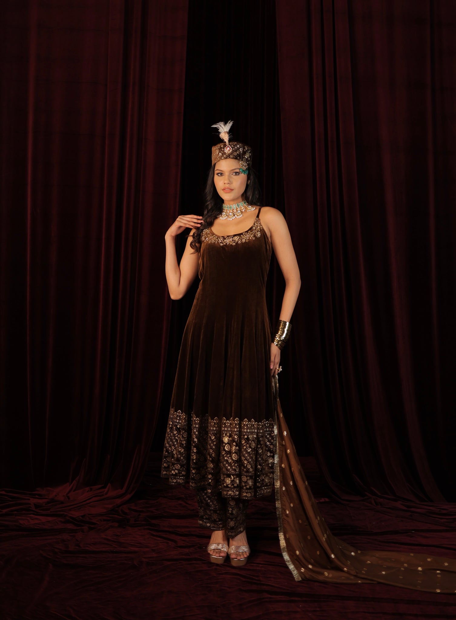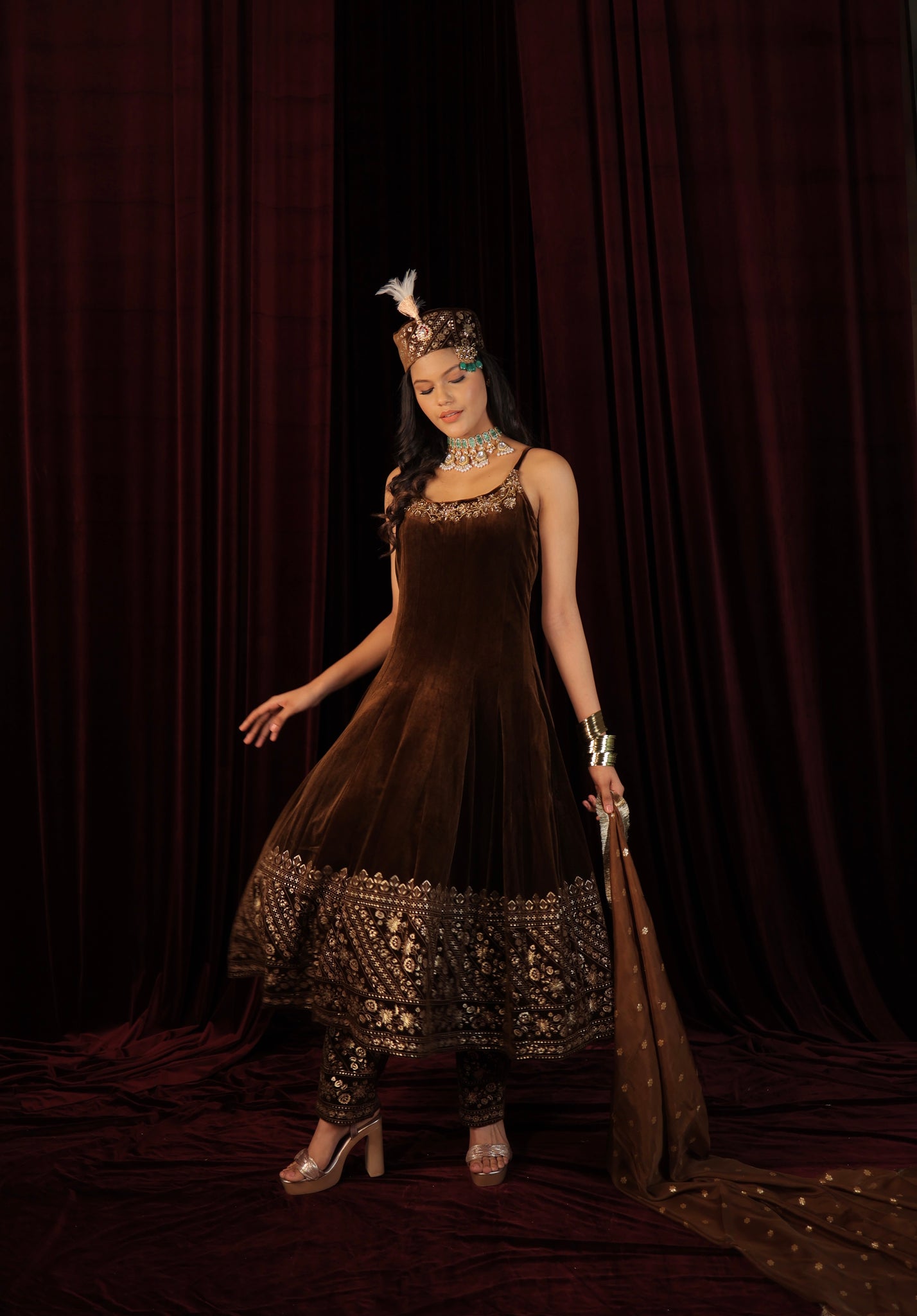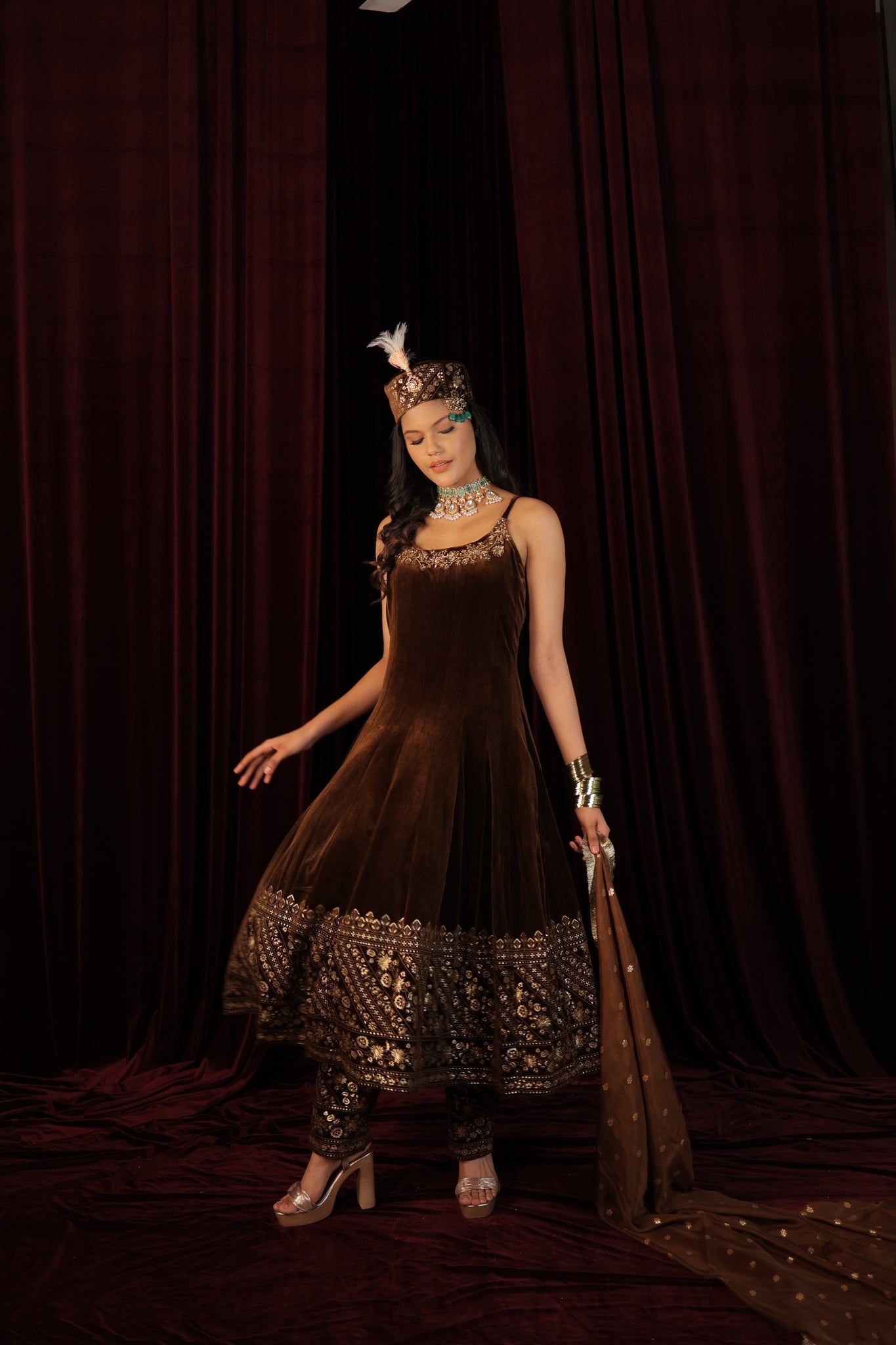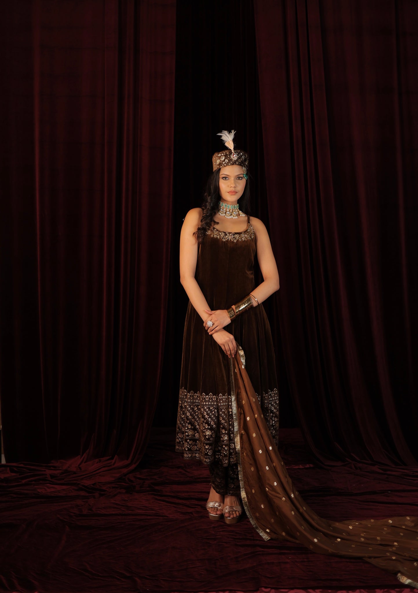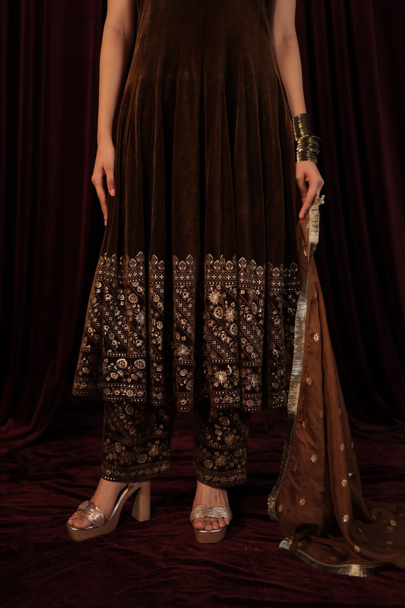 This Coffee Suit Set is an absolute showstopper — crafted to captivate at first glance. Adorned with exquisite hand-embroidered detailing and elegant prints, it radiates sophistication and charm. Perfect for weddings and grand celebrations, this timeless piece ensures you stand out effortlessly.