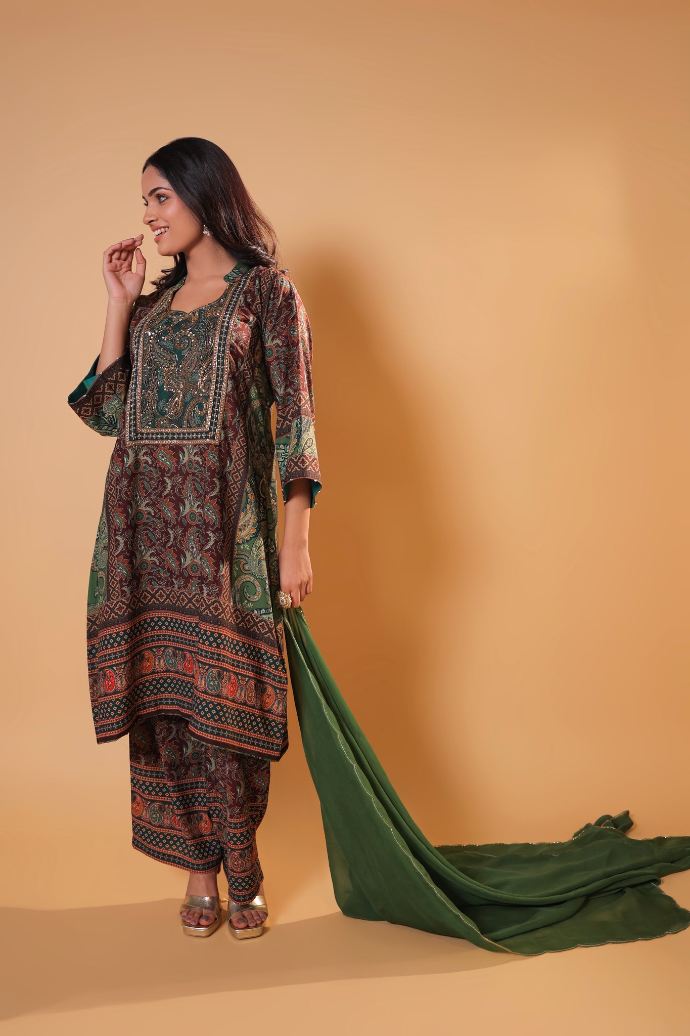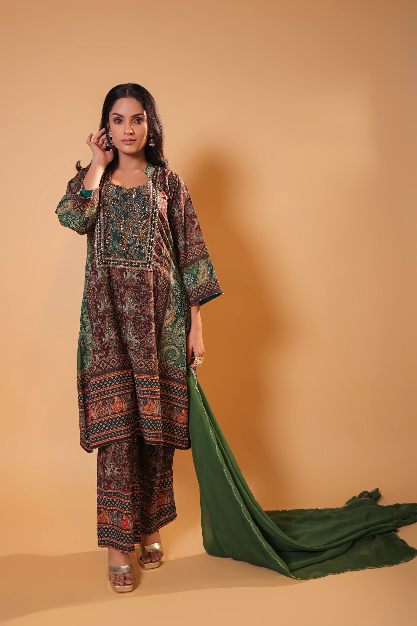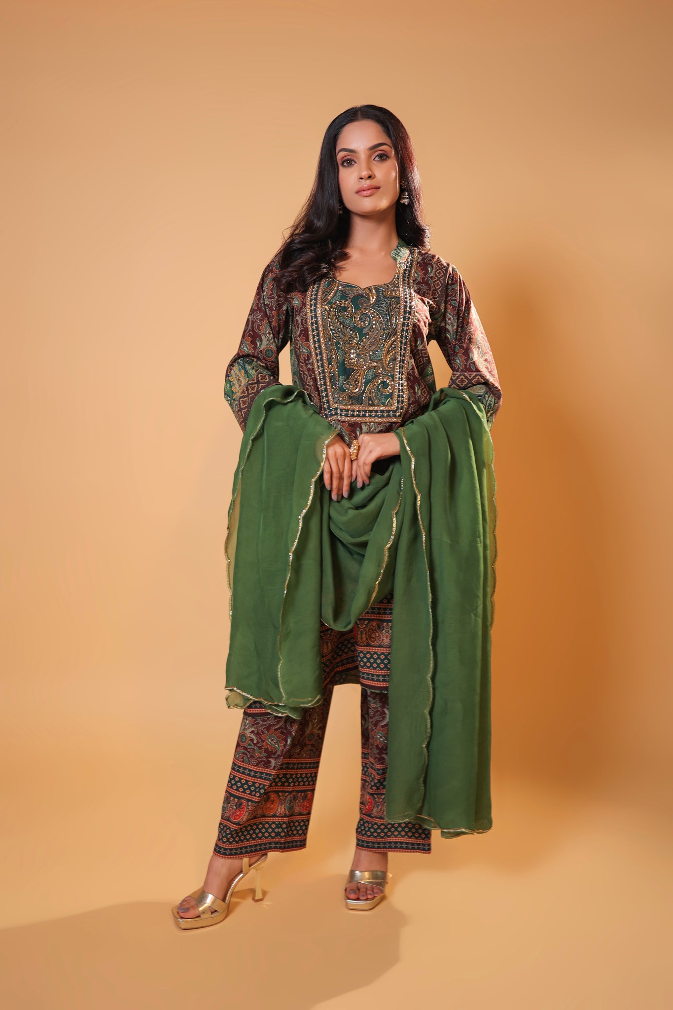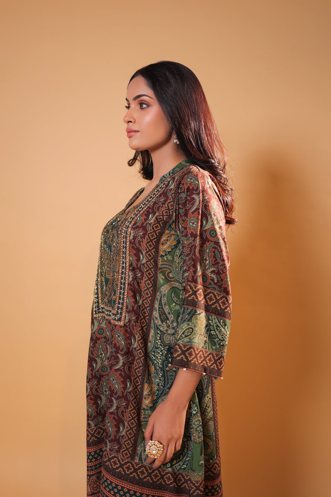 Introducing our latest collection featuring stunning USP prints and intricate embroidery details that make each piece a true work of art. Our A-Line Kurtas are designed for versatility and comfort, perfect for any occasion.