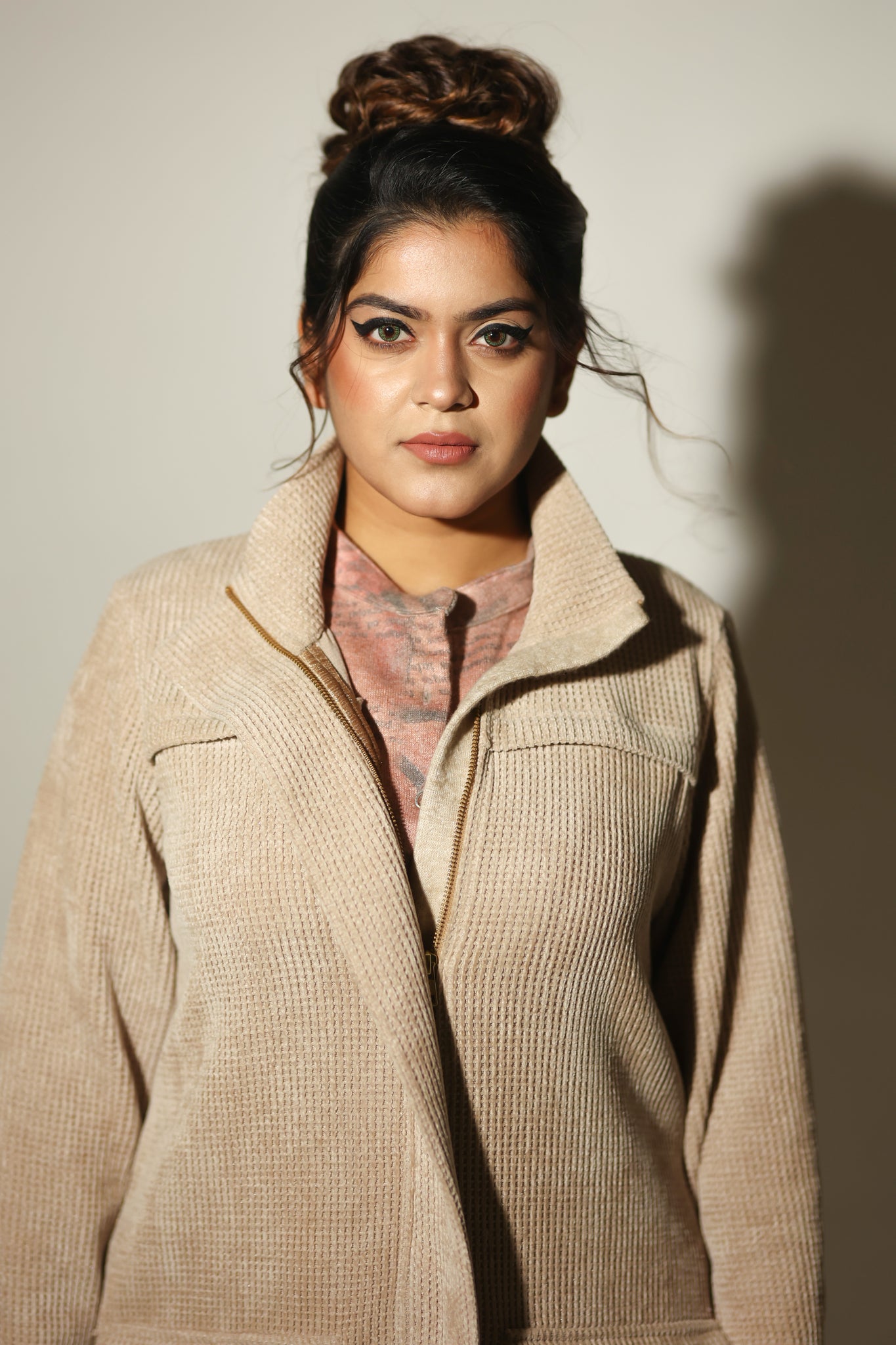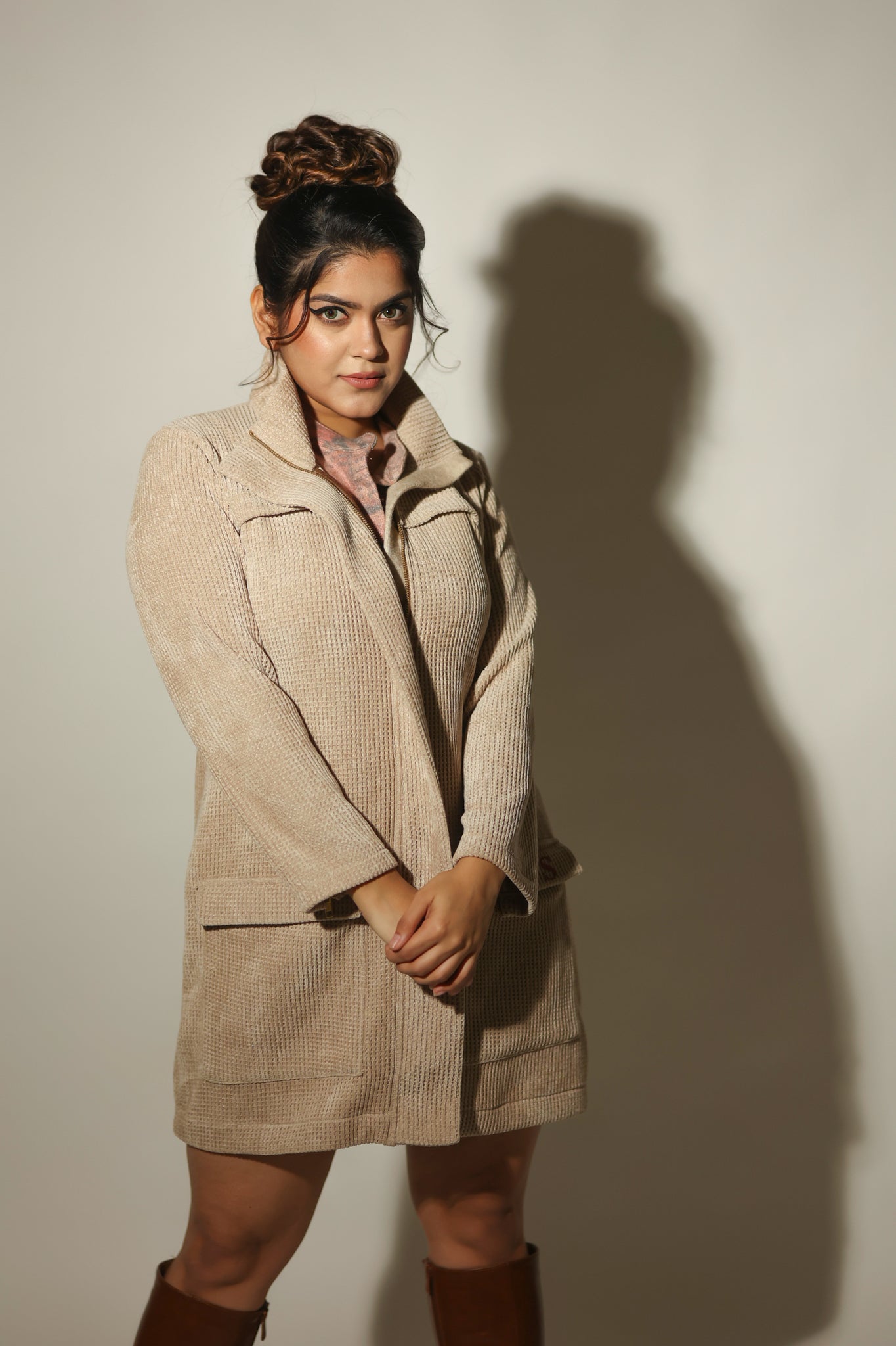Our Founder, Neha Sood (Height 5.3 ft) is wearing size M.