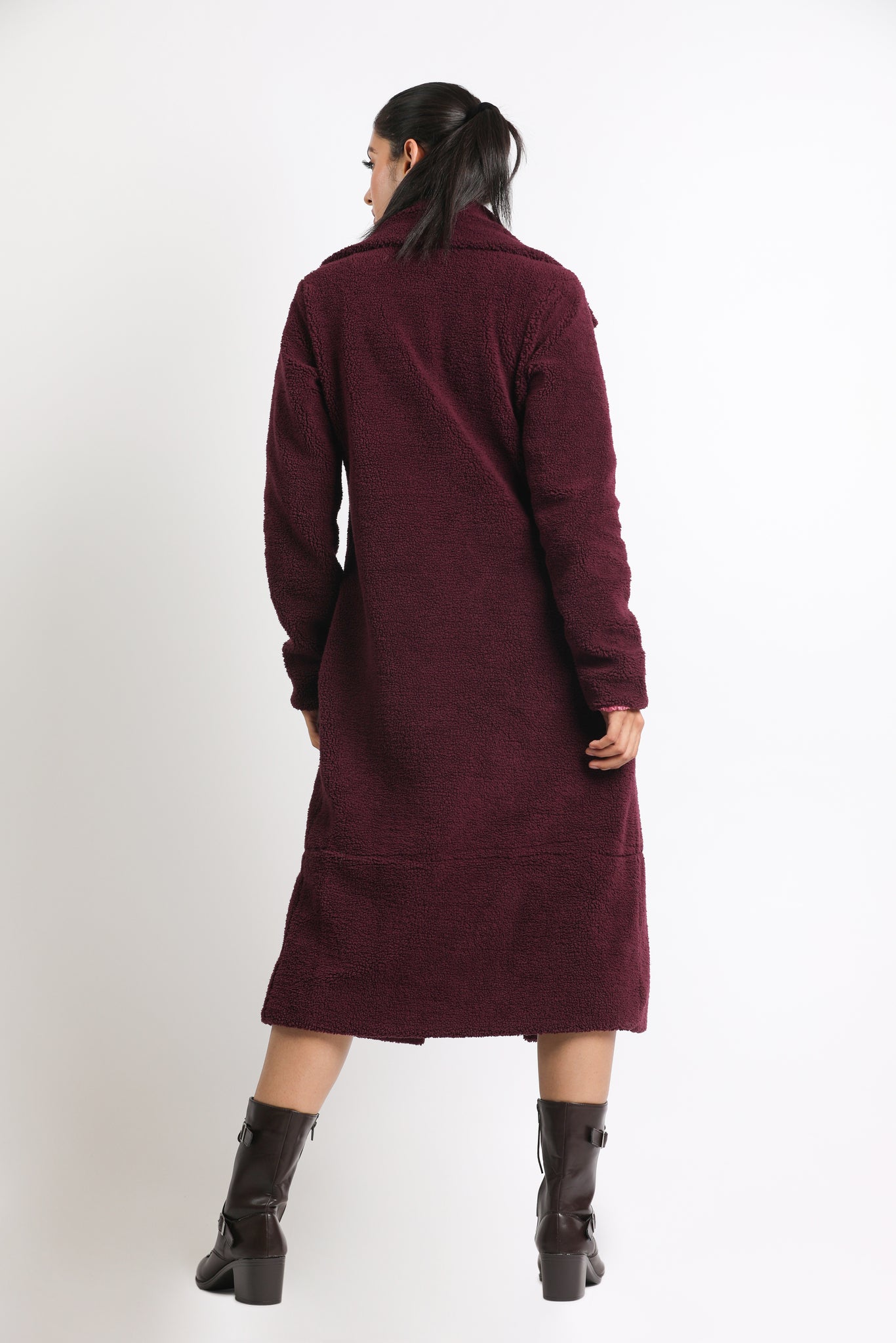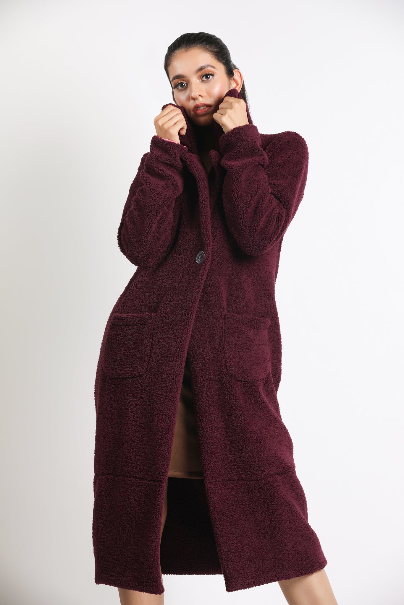 Wrap up in style in this wine Fur Coat This winters ! Fabric: SHERPA FUR MODEL SIZE & FIT The model height 5.9 ft is wearing size S DISCLAIMER : There might be a slight variation in the actual...Read more