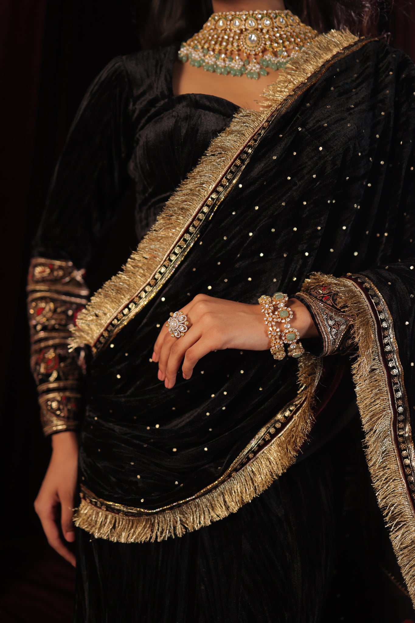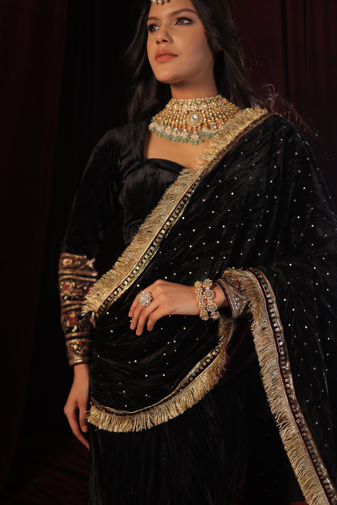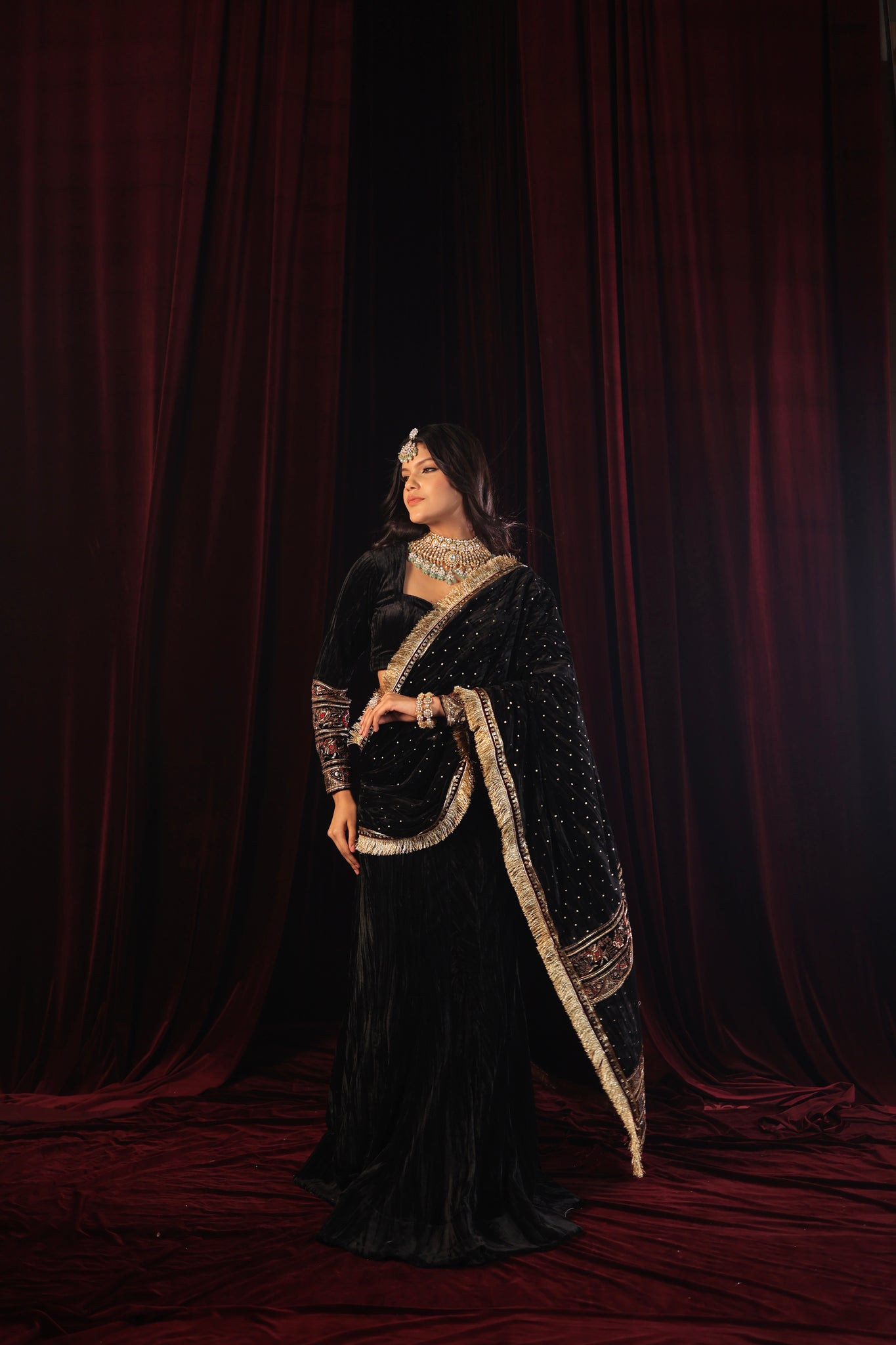 Designed for the modern woman, this ready-to-wear drape saree is effortless and elegant — giving you the perfect look without the hassle of traditional draping. Each piece is thoughtfully designed and meticulously handcrafted, making it truly one of a kind. Graceful, glamorous, and effortlessly sophisticated — a must-have addition to your festive wardrobe.