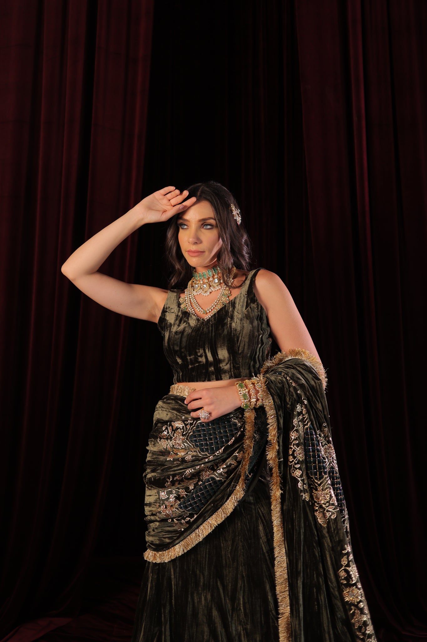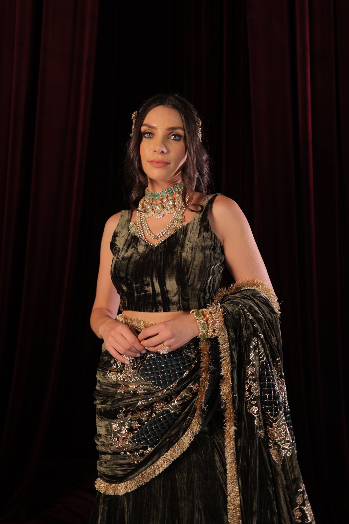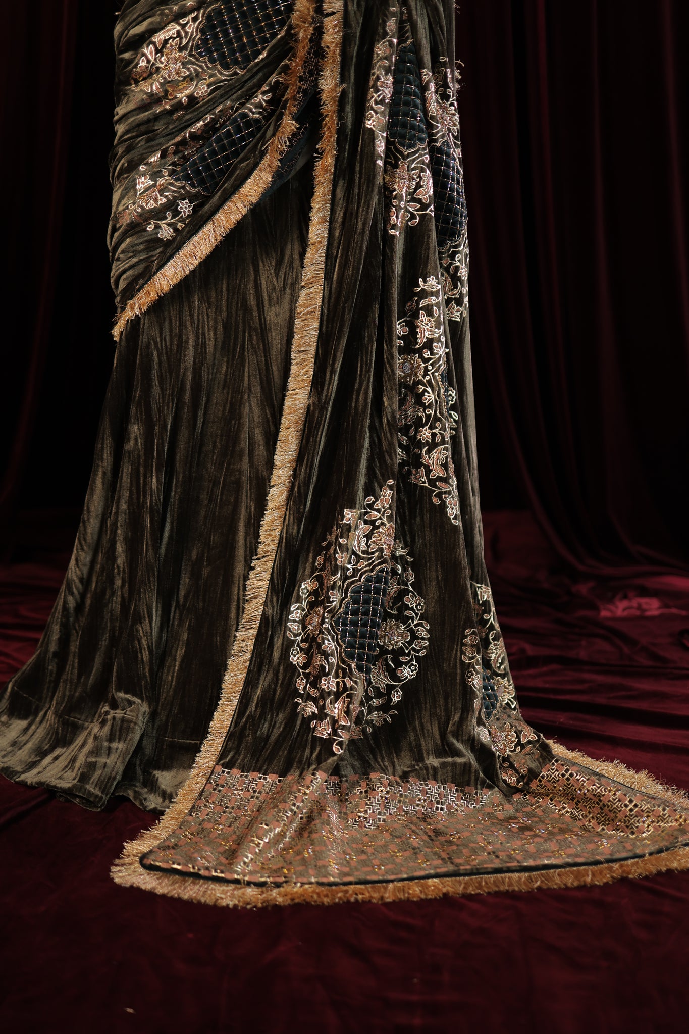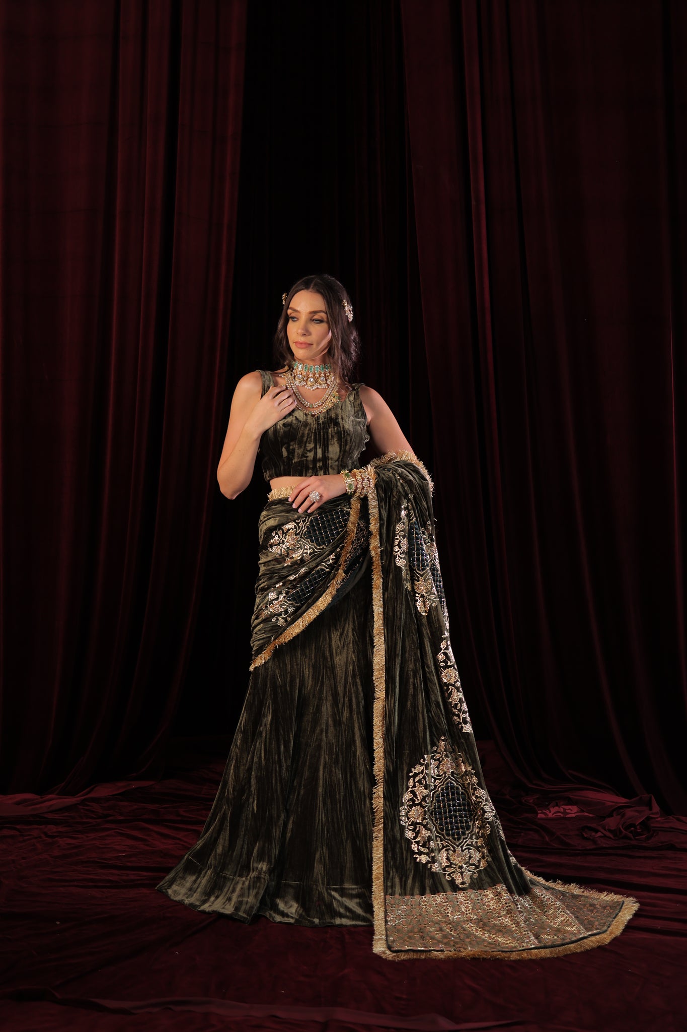 Designed for the modern woman, this ready-to-wear drape saree is effortless and elegant — giving you the perfect look without the hassle of traditional draping. Each piece is thoughtfully designed and meticulously handcrafted, making it truly one of a kind. Graceful, glamorous, and effortlessly sophisticated — a must-have addition to your festive wardrobe.