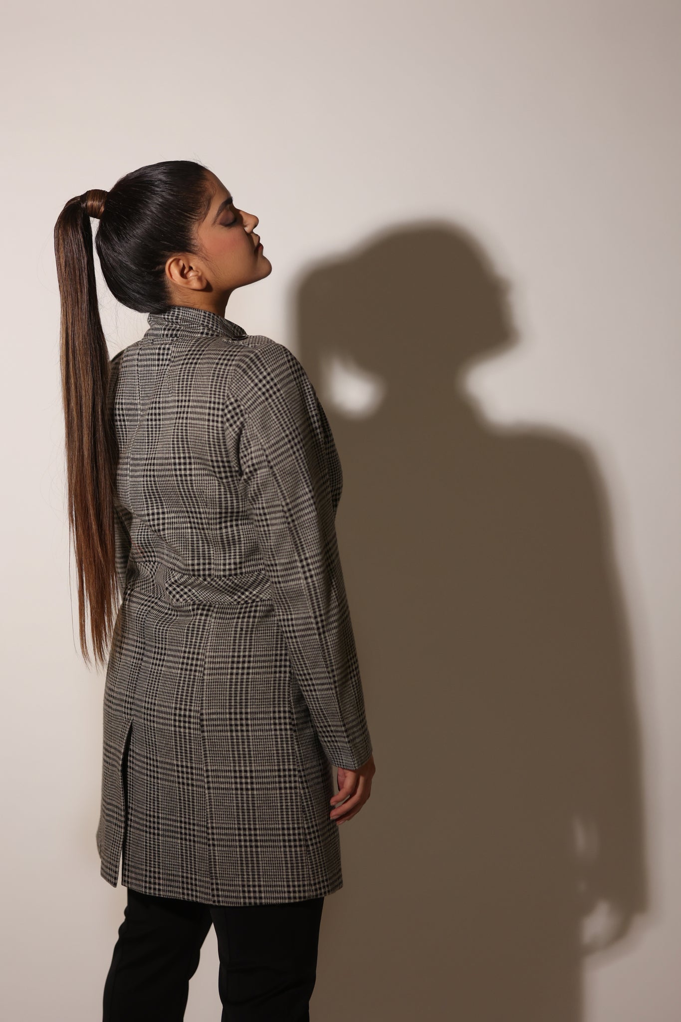 Featuring a full sleeves and checkered pattern, this blazer possesses a fashionable appeal. Style this blazer with a pair of denims/ Trousers and wedges for a classy Look!