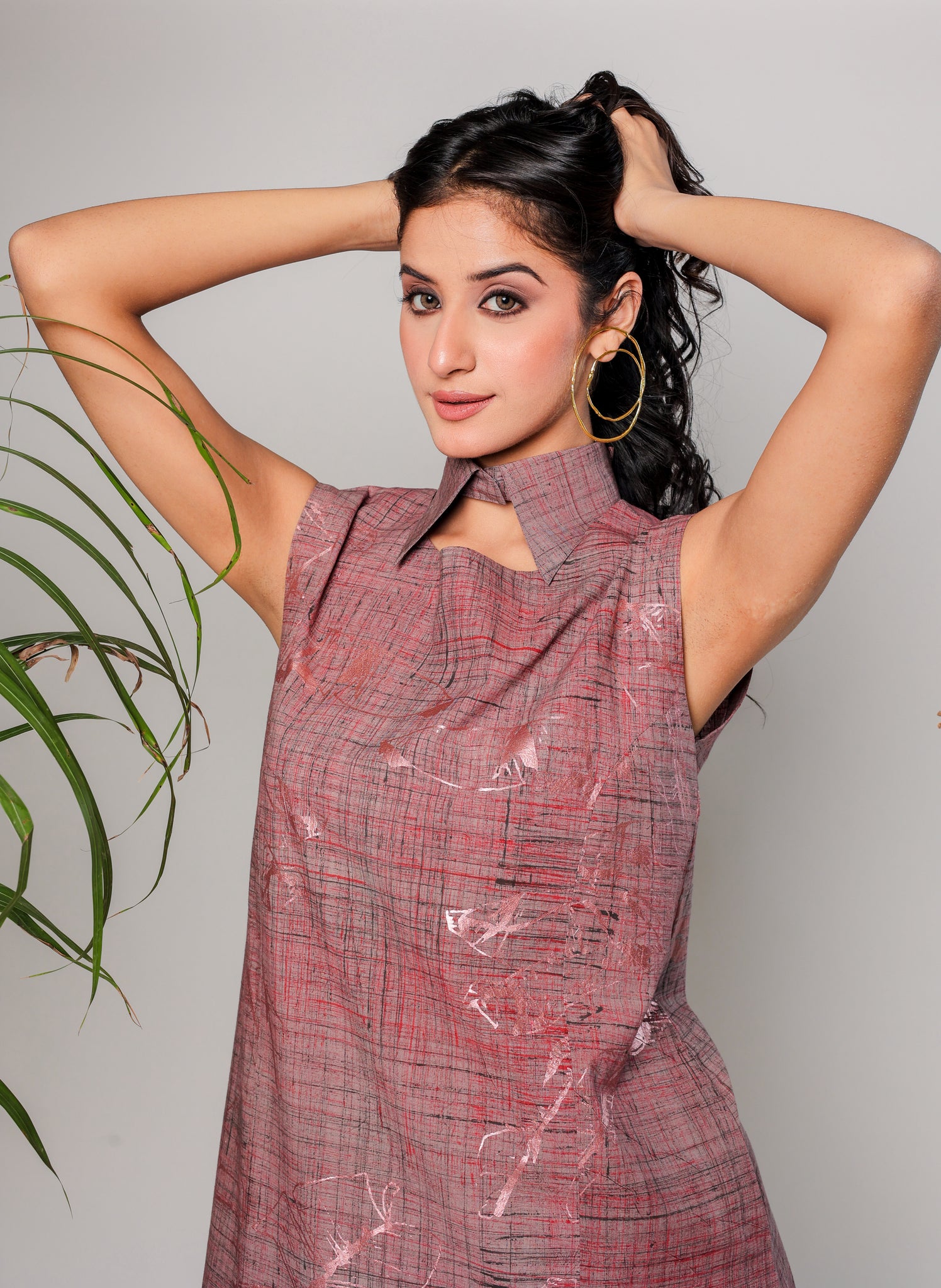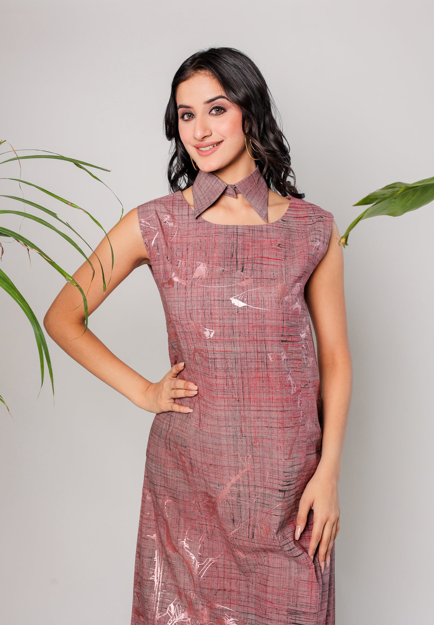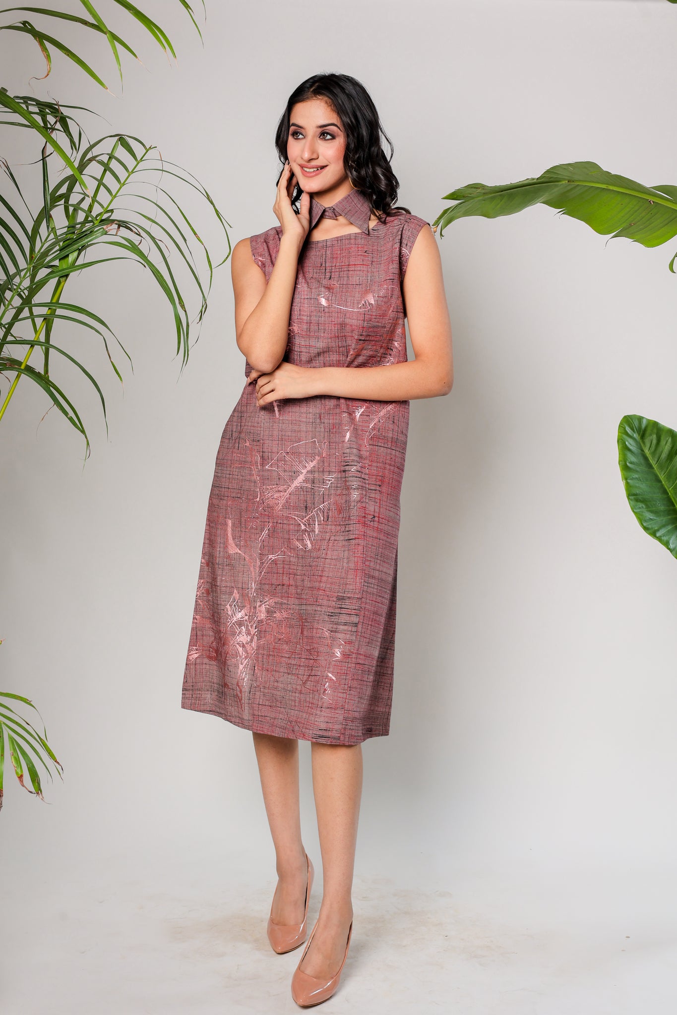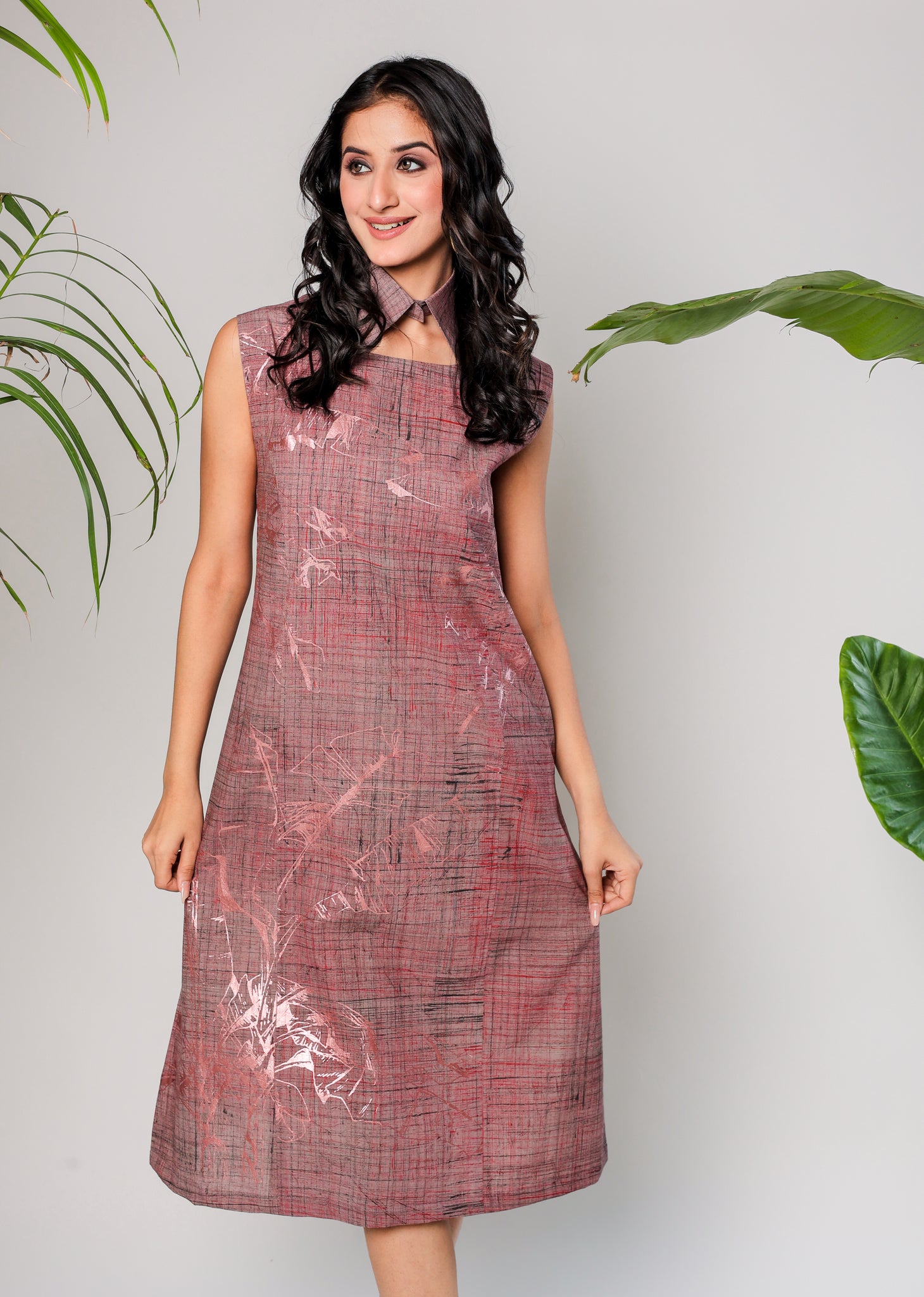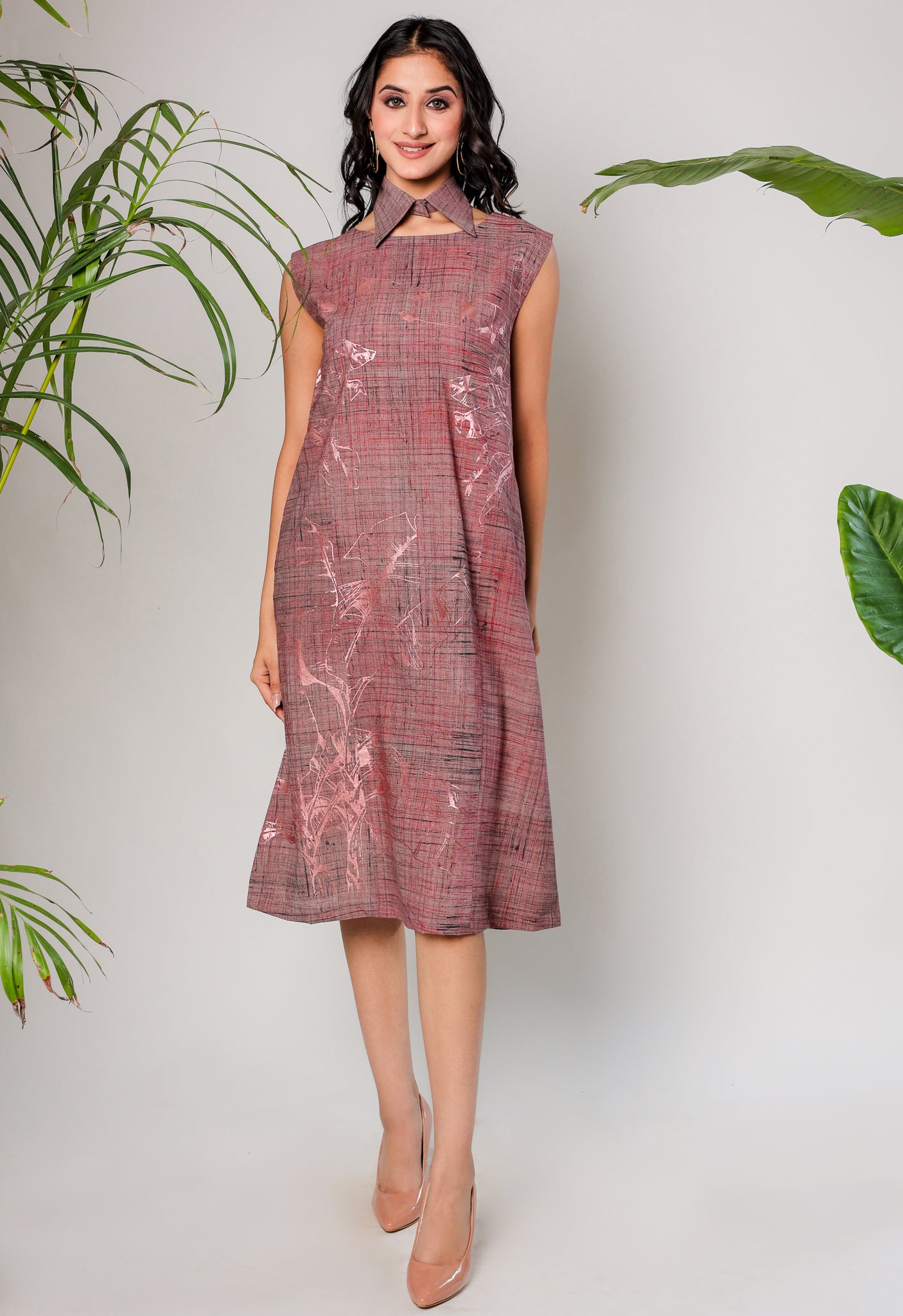 A detachable collar unlike anything you've ever seen. To beat the summer heat, this gorgeous Foil Print Dress is both elegant and incredibly comfortable. A handy side pocket adds convenience, and print detailing adorns the long, flared silhouette.
